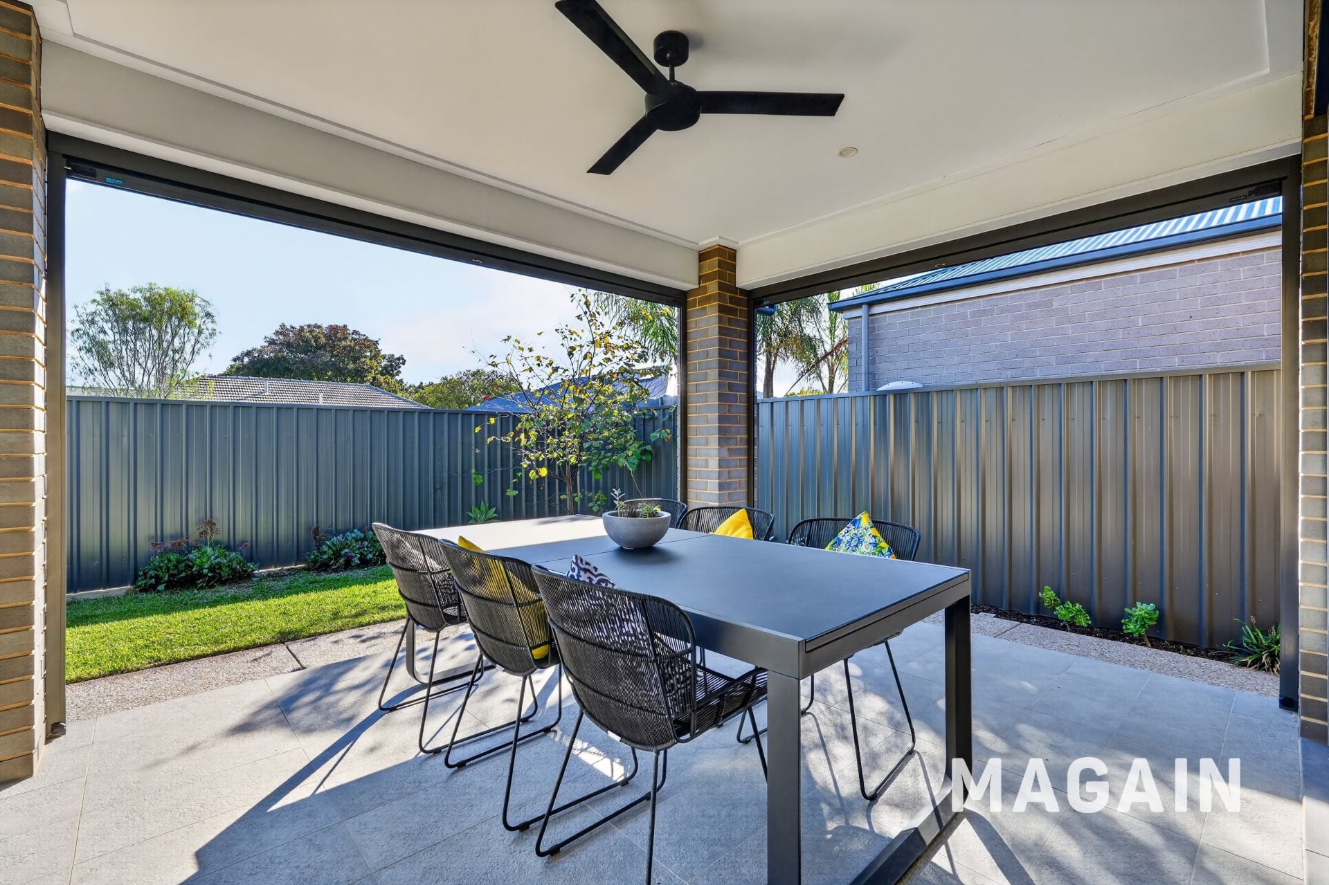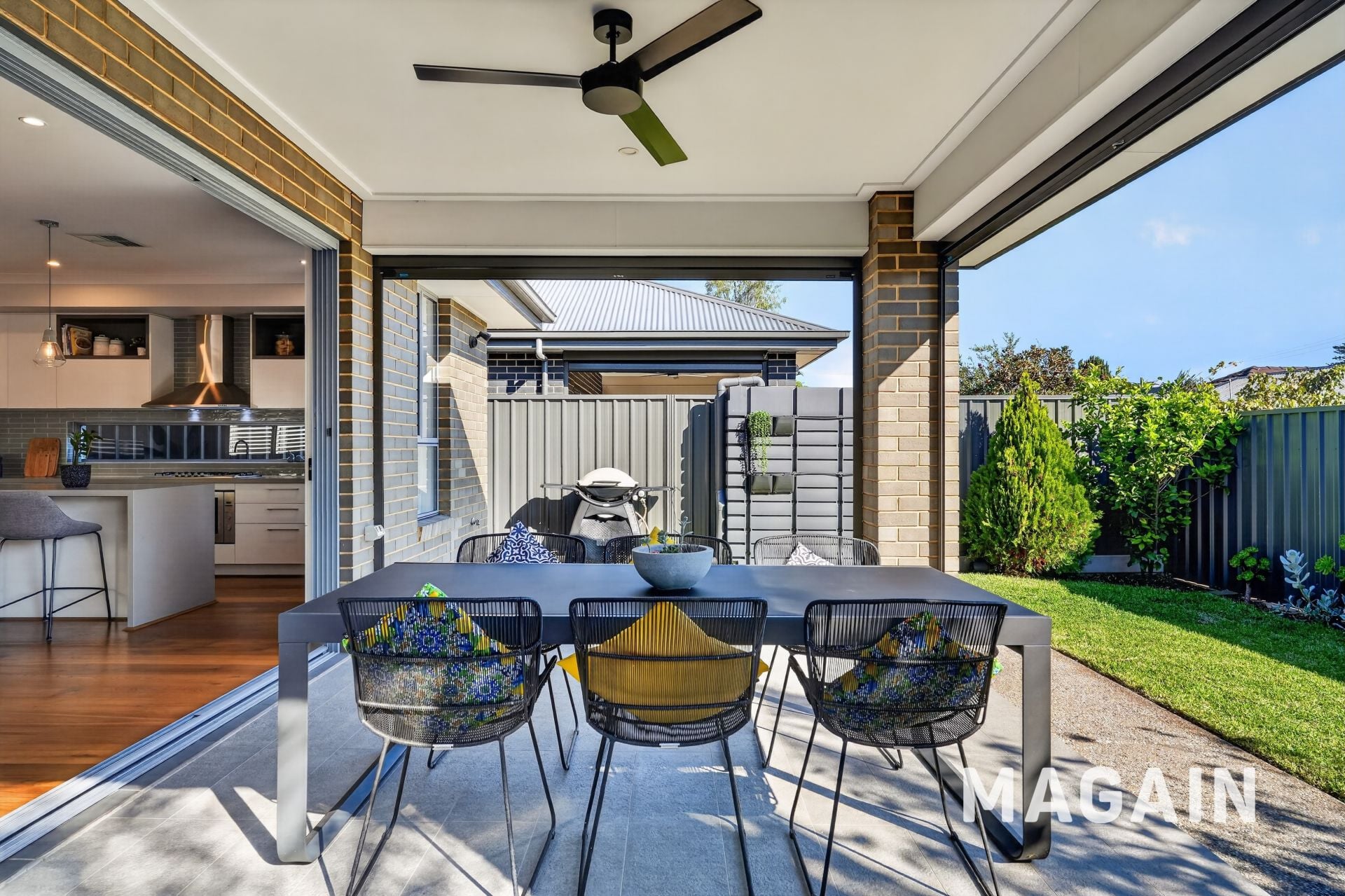 Sliding doors extend the living outdoors to a covered alfresco, creating a seamless indoor-outdoor connection. The backyard is low-maintenance yet usable-perfect for kids, pets or relaxed weekends without the upkeep.