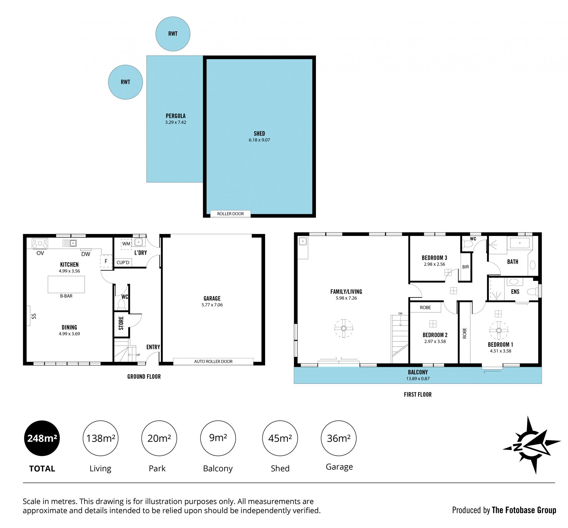 Additional features include a double garage with an auto roller door and drive-through access to a large shed, accommodating up to four cars. The home is equipped with ducted evaporative cooling, gas heating upstairs, split system heating and cooling on the lower level, and a rainwater tank plumbed to the upstairs toilet, along with gas instantaneous hot water for efficiency.