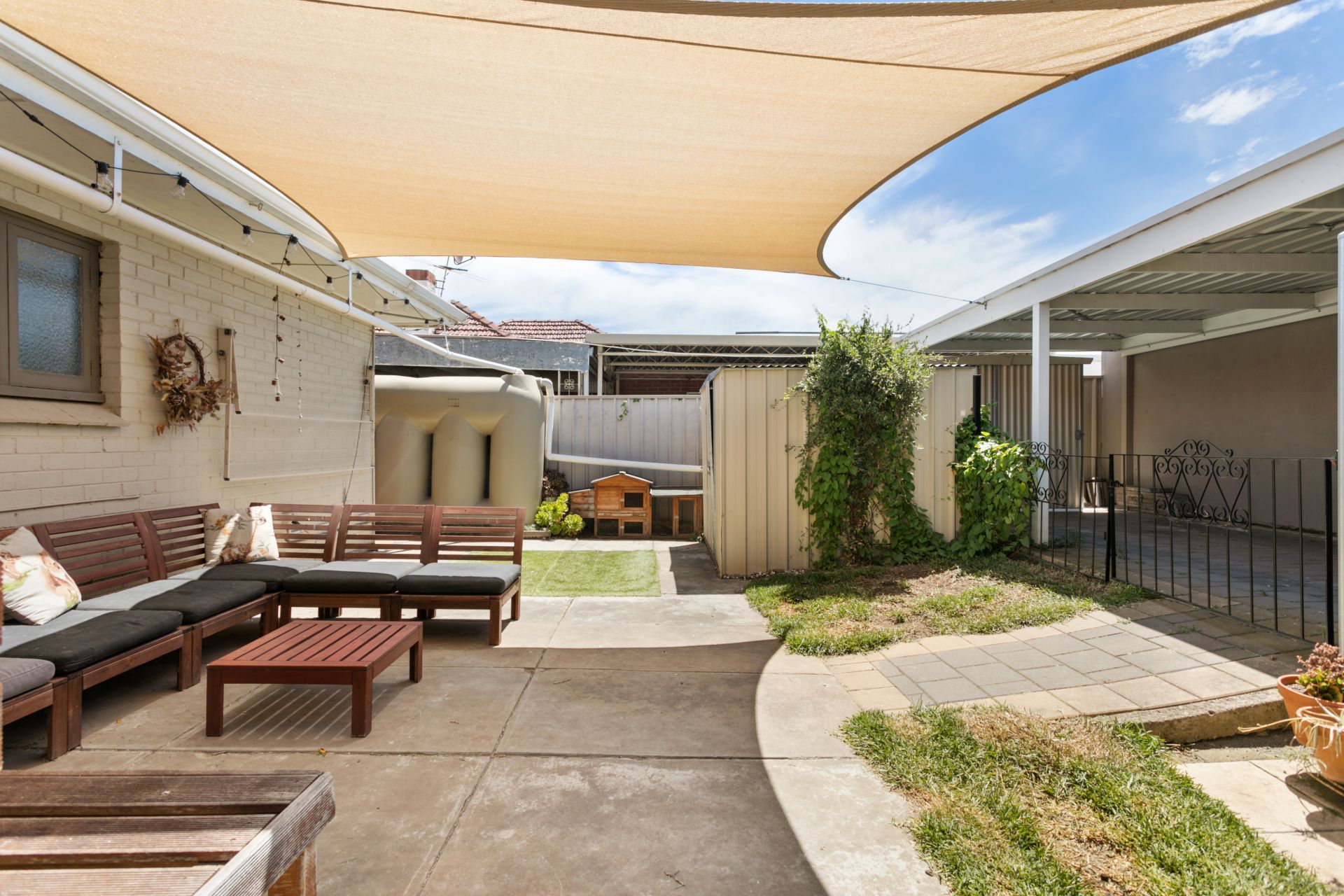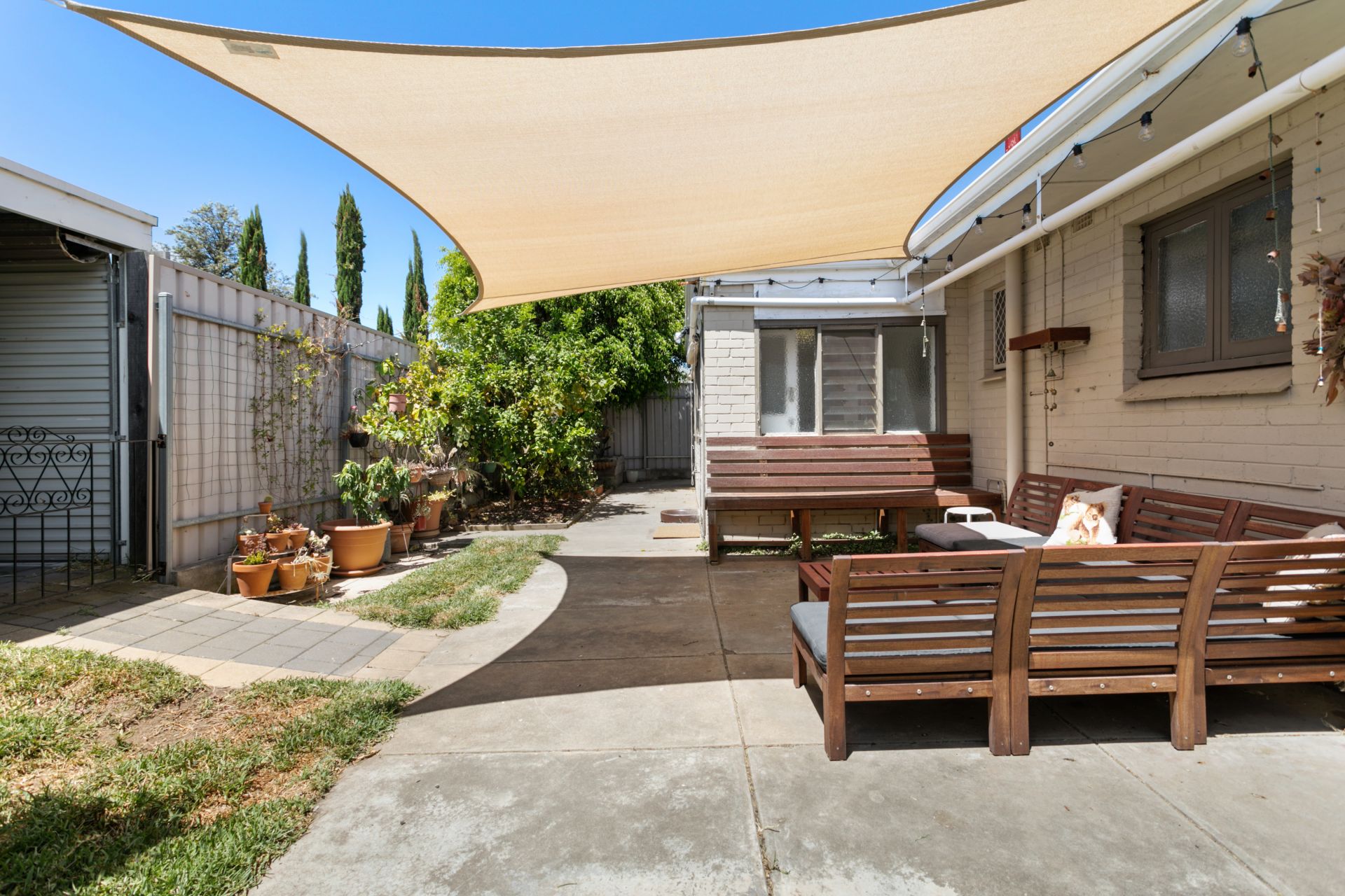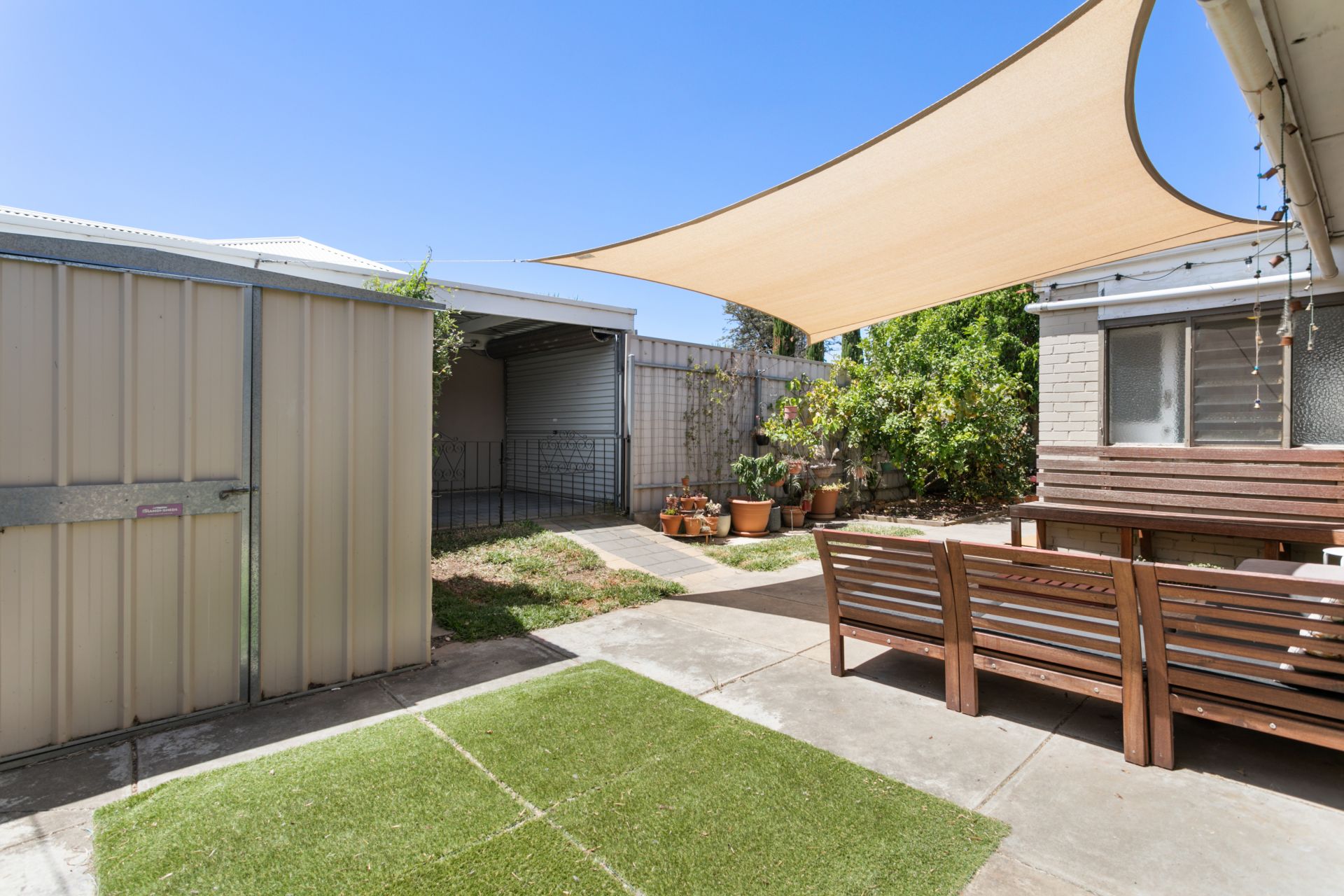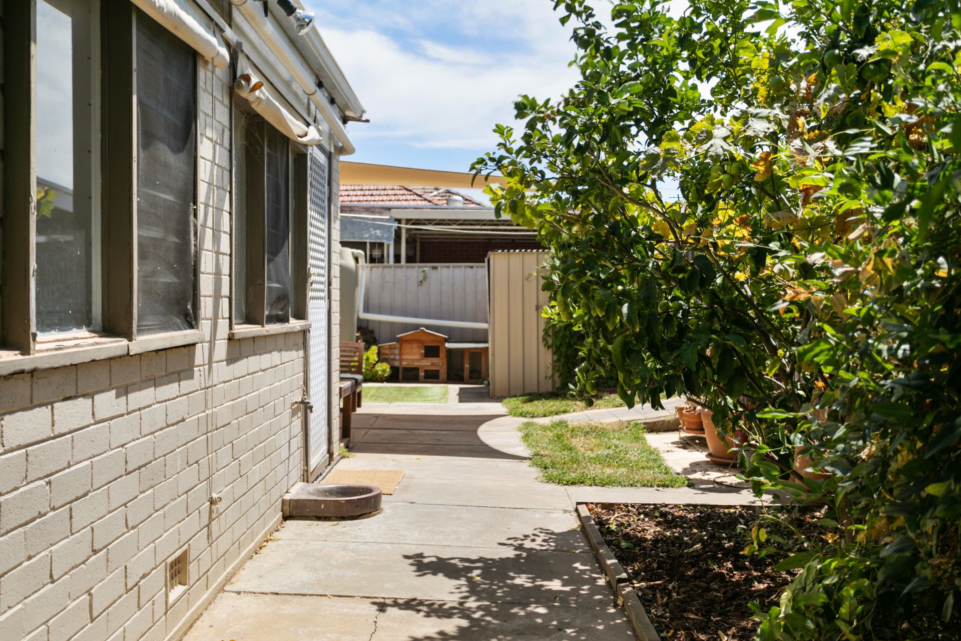 Heading outside you are greeted with a great size yard with plenty of room to move around. A shaded area is the perfect place to entertain your family and friends, while heading around the corner you will find plenty of veggie gardens for the green thumb. A small grassed area is here for the animals, a garden shed to store the tools and there is a lock up garage at the rear of the home.