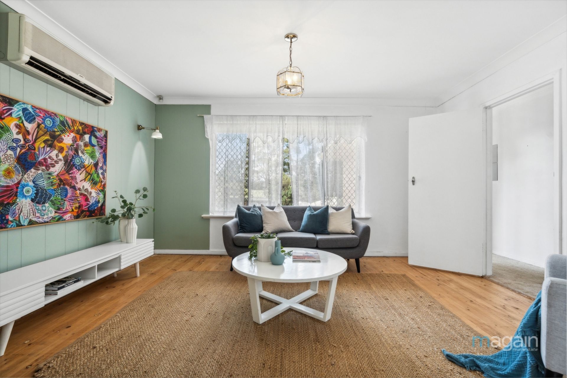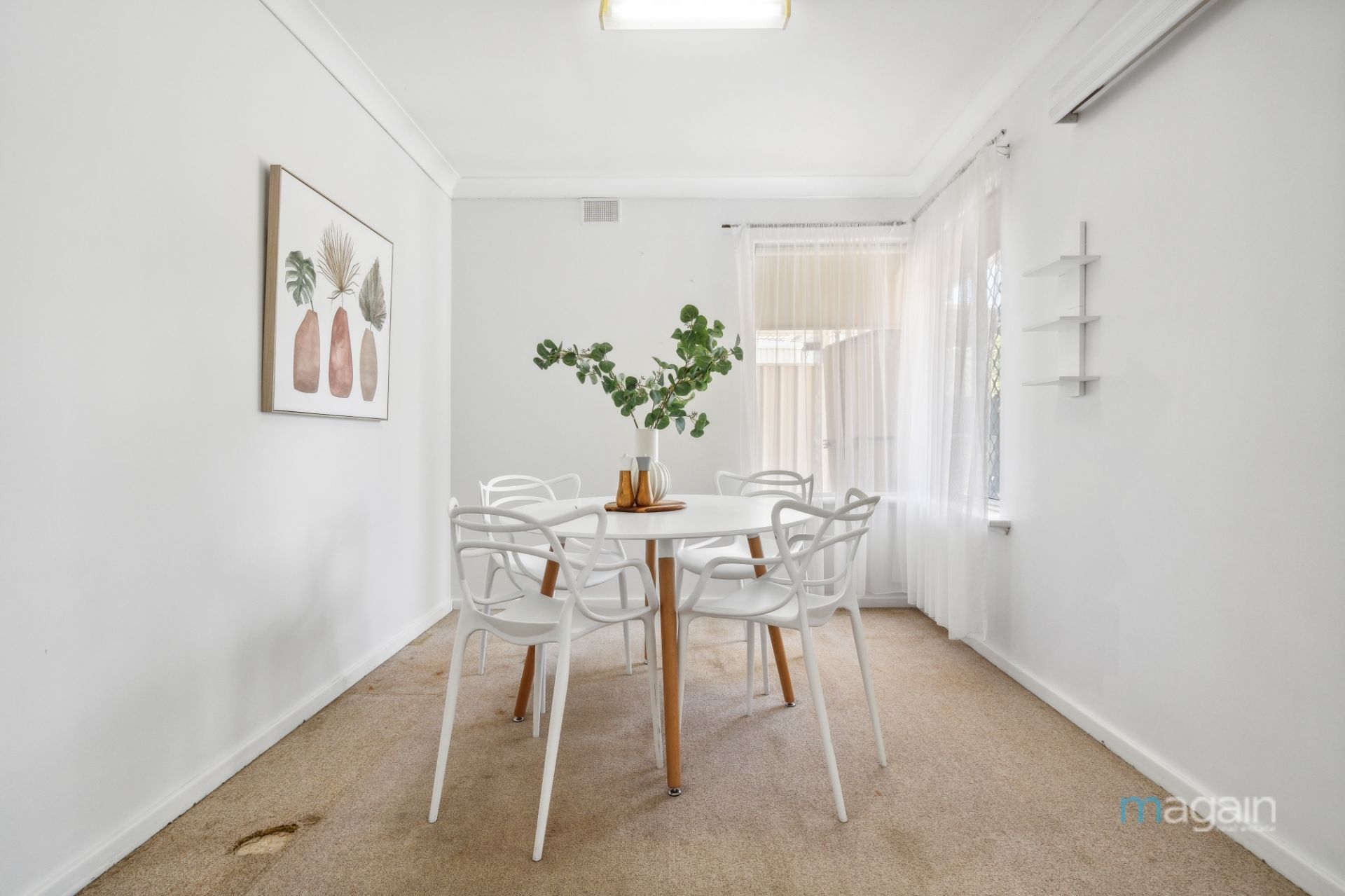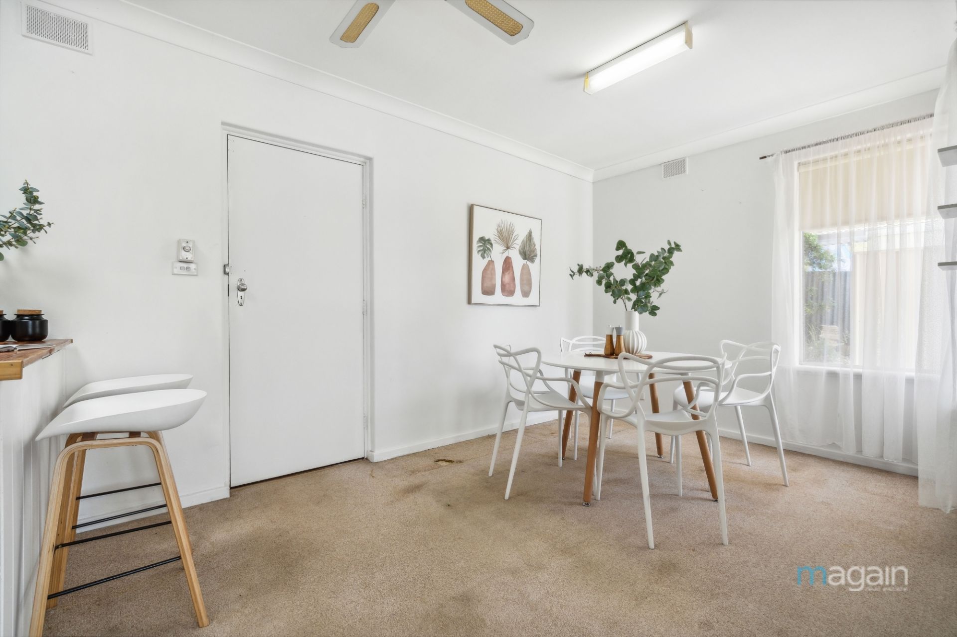 Inside, you'll find three well-sized bedrooms, with a ceiling fan in the main bedroom for added comfort, while bedrooms two and three include robes, providing ample storage. A separate front living area greets you upon entry, flowing seamlessly into the open-plan kitchen and dining area, a cozy family hub complete with a ceiling fan and breakfast bar – perfect for casual meals or morning coffee.