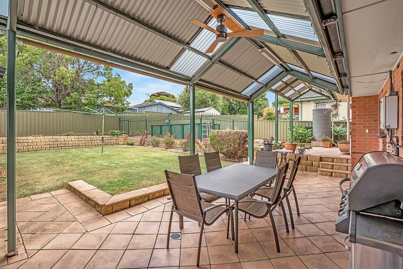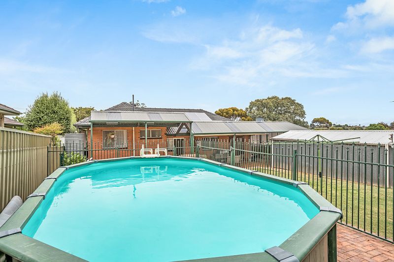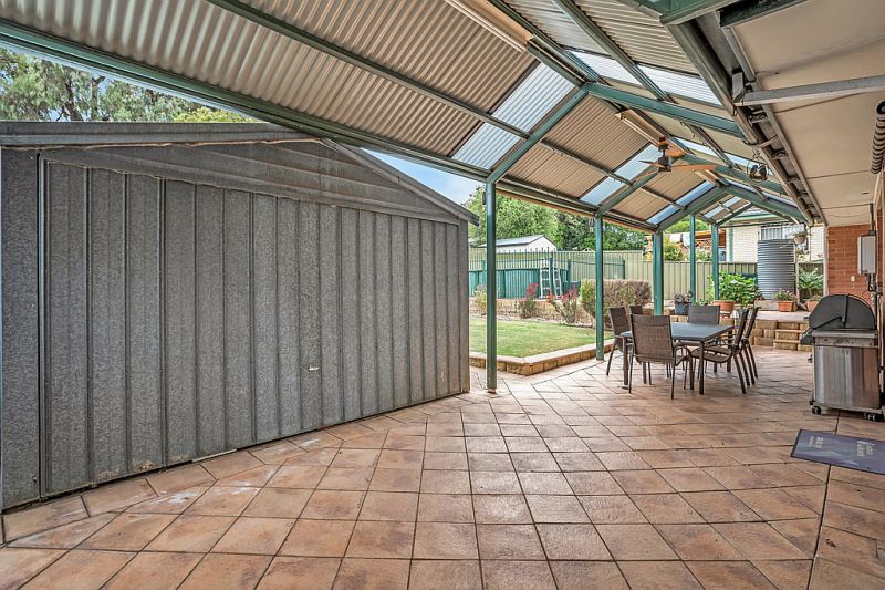 The french glass doors in the dining room lead you out to the fully paved outdoor entertainment area. The long verandah runs the length of the house which gives you plenty of room for when family & friends visit. There is an overhead fan and canvas blinds as well as a fully fenced above ground pool for everyone to enjoy. The kids will love the good-sized lawn to play on.
