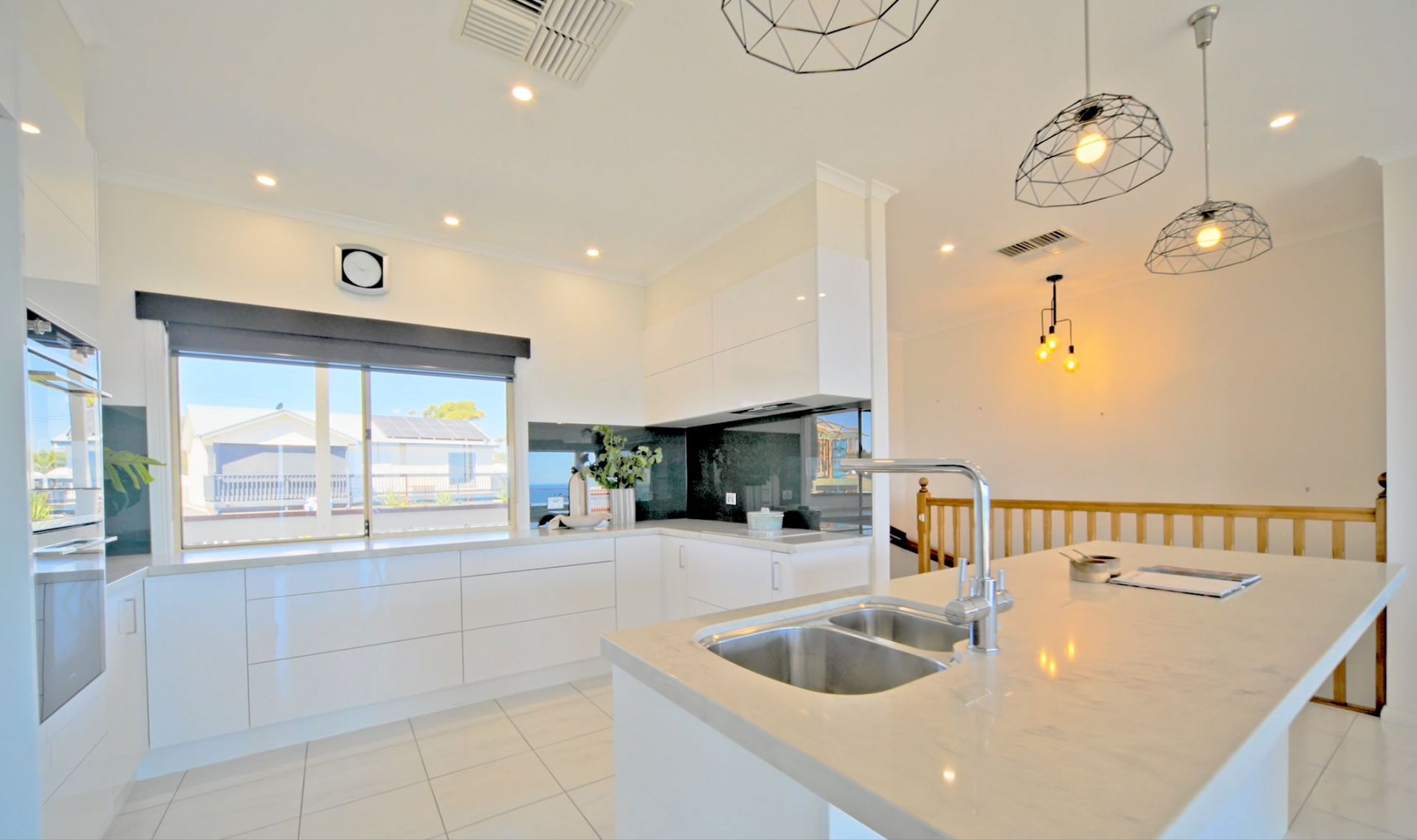 From the moment you walk through the upstairs front door, you are welcomed by thrilling panoramic ocean views. Immediately you hear the ocean calling you out to your expansive balcony, inviting you to catch a breath of fresh, crisp sea air. Natural light pours through the large glass doors and windows, filling the open-plan living, kitchen, and dining area with warmth and brightness. The spacious, modern kitchen is a true showstopper, featuring sleek Caesarstone benchtops, electric touch-to-open cabinetry, premium Smeg appliances, and island bench with feature lighting and convenient breakfast bar.