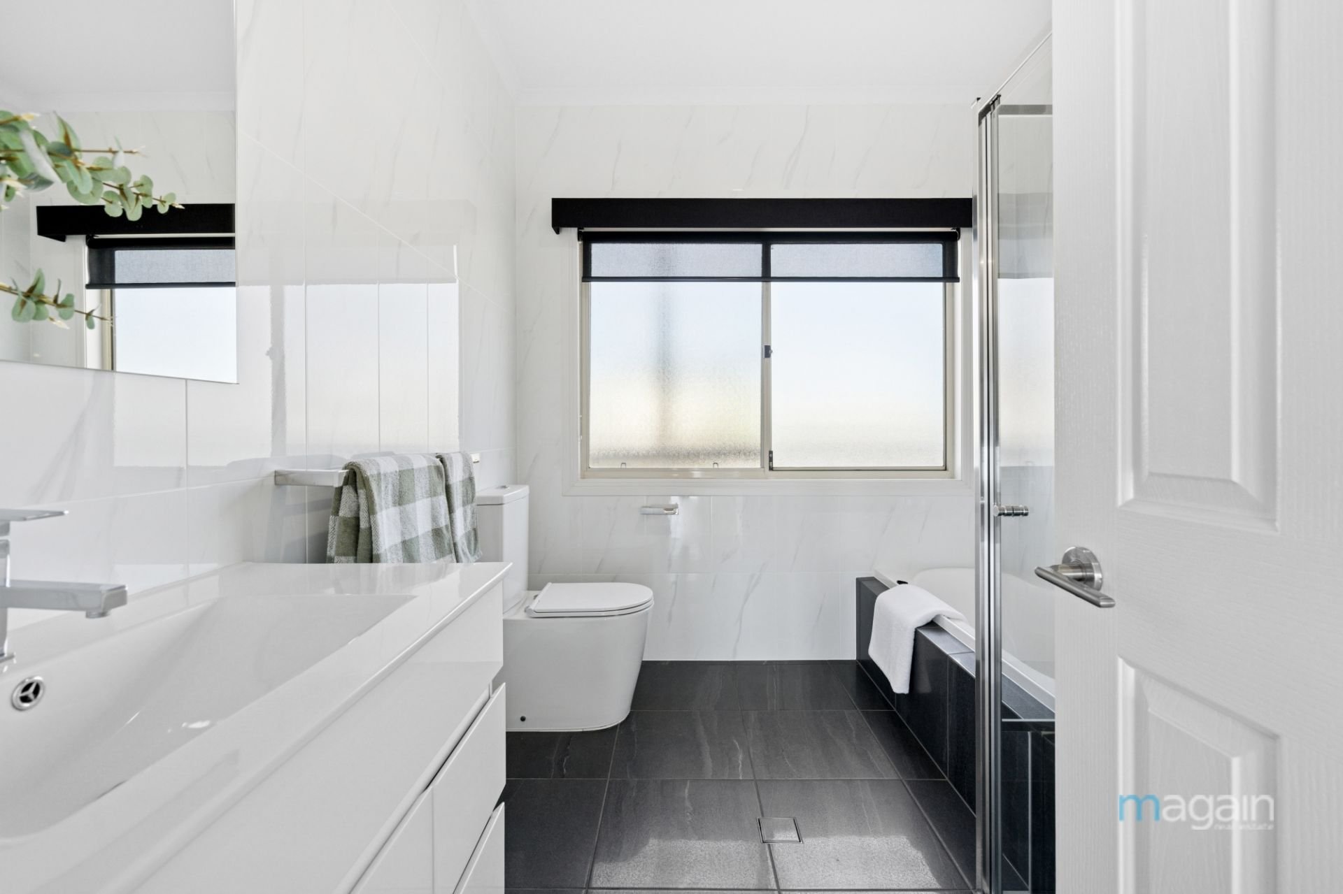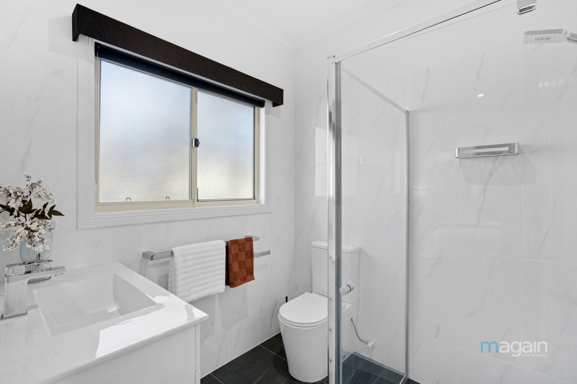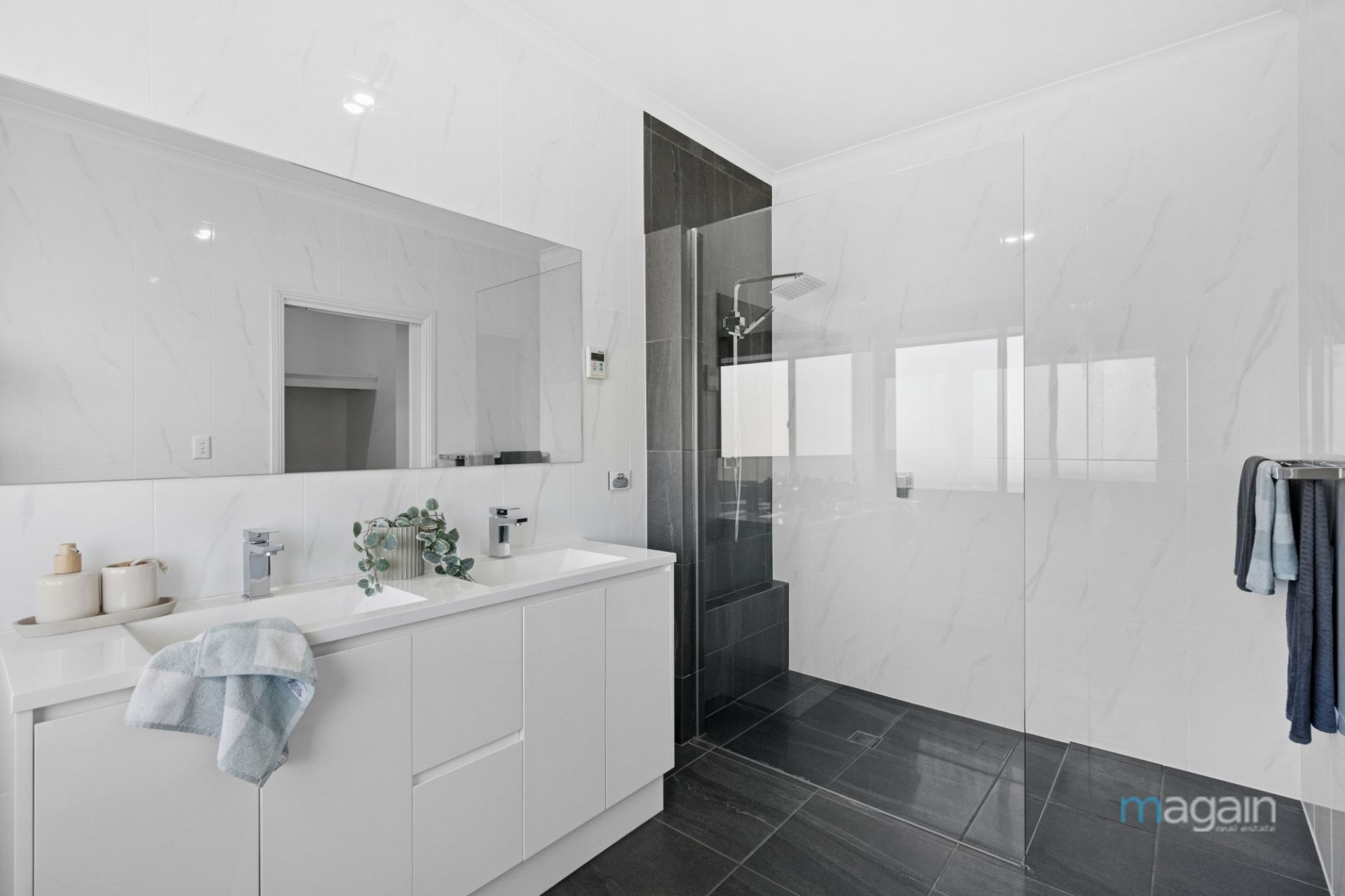 Continue through to the stunning main suite, where you'll enjoy private access to the balcony, a spacious walk-in robe, and a beautifully updated ensuite featuring a double basin vanity and an oversized shower. Bedrooms three and four are generously sized, each with built-in robes, while the sleek, updated family bathroom boasts a chic black-and-white colour scheme that exudes modern elegance. The home ensures year-round comfort with ducted cooling, gas heating, and ceiling fans throughout, maintaining the perfect temperature no matter the season.