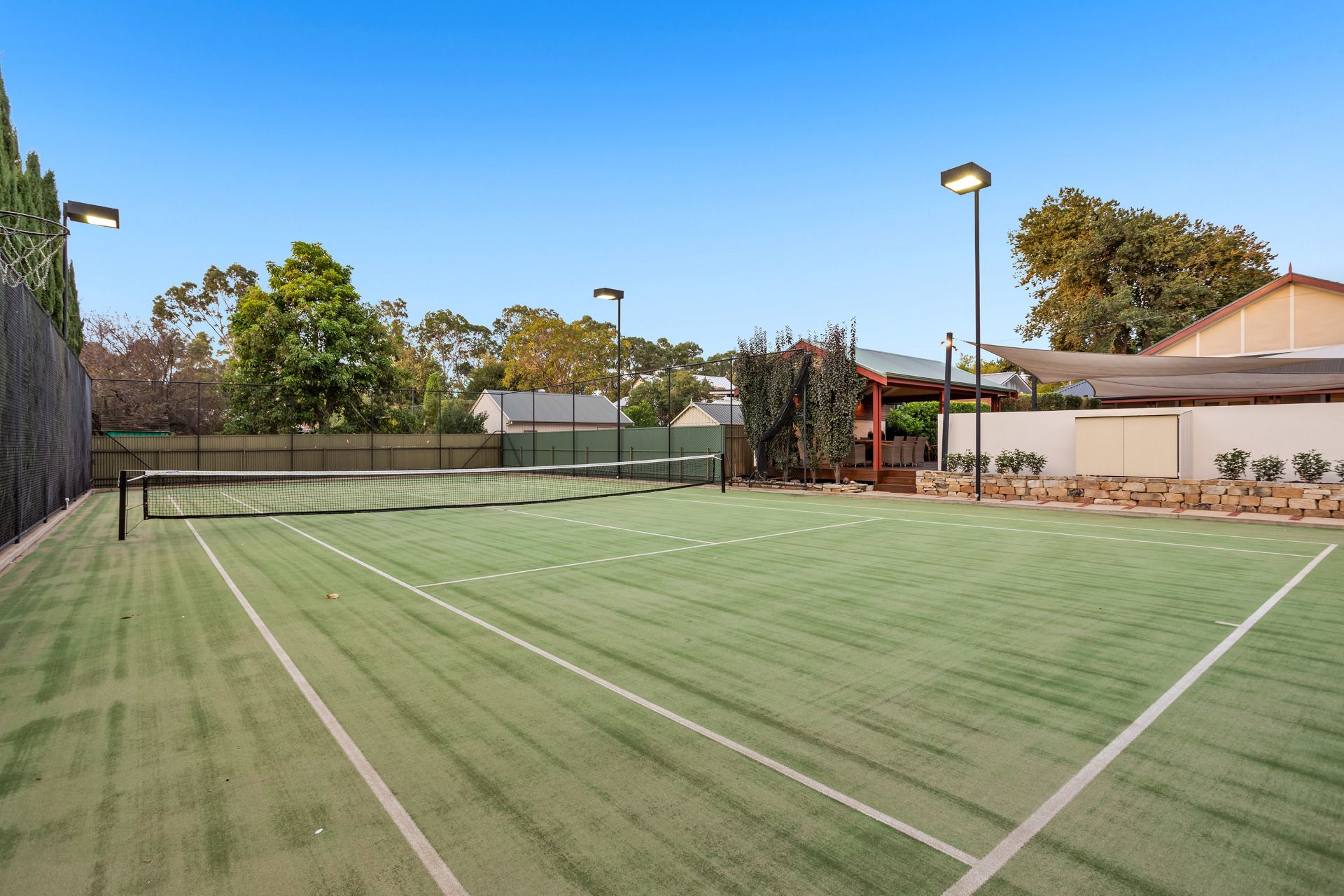 Full size synthetic Tennis court with lights