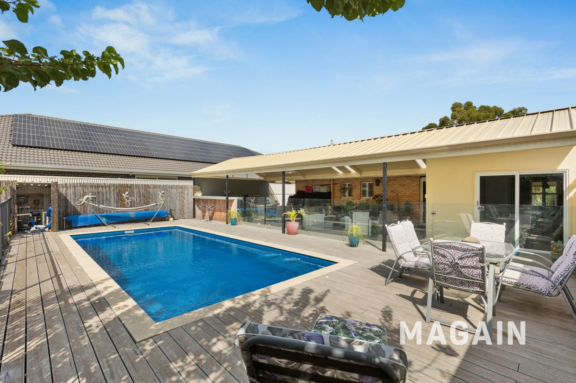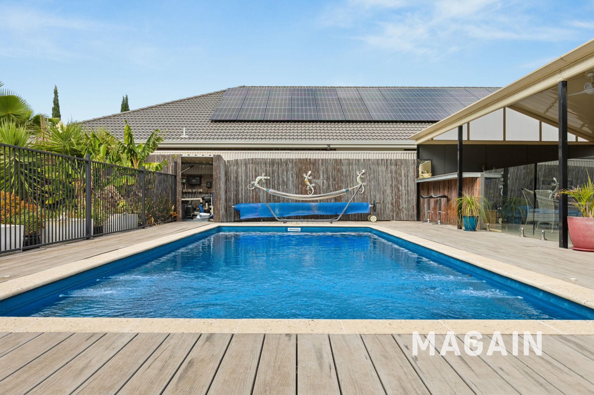Set amongst established gardens, the outdoor space is designed for both relaxation and entertaining. A stunning swimming pool is paired with a massive undercover decked entertaining area, perfect for gatherings with family and friends. There's also a lawn area for kids and pets to enjoy.An extra-long carport provides ample space for multiple vehicles or even a camper trailer, while solar panels with battery storage add valuable energy efficiency.
