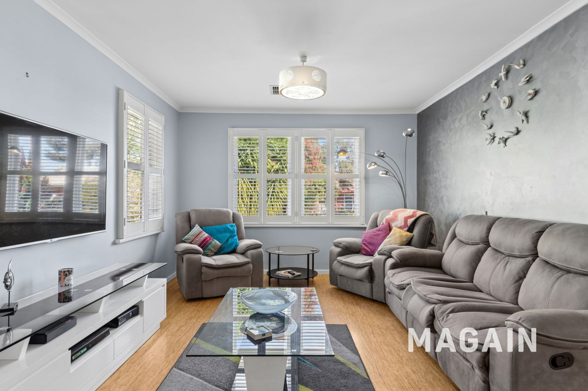 Step inside to discover a light-filled interior enhanced by neutral tones and easy-care bamboo flooring throughout. The well-appointed kitchen offers abundant cabinetry and bench space, complemented by stone benchtops, glass splashbacks, a dishwasher, and a 900mm oven. The adjacent butler's pantry/laundry is bathed in natural light and provides exceptional storage, along with space for a second fridge. All bedrooms are generously sized, with built-in robes in two, while the updated bathroom adds a fresh, contemporary touch. Excellent storage options throughout the home further enhance everyday practicality.