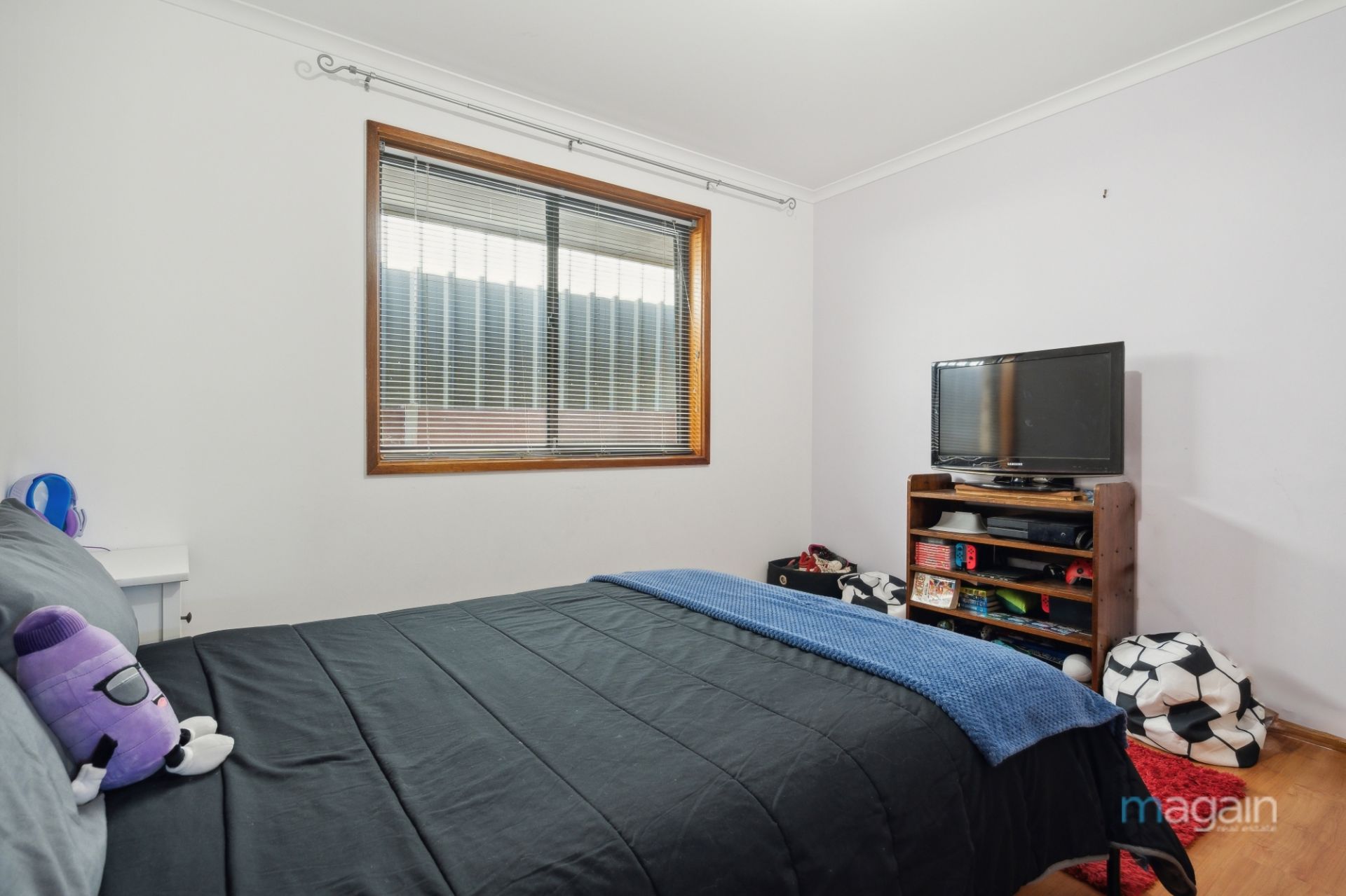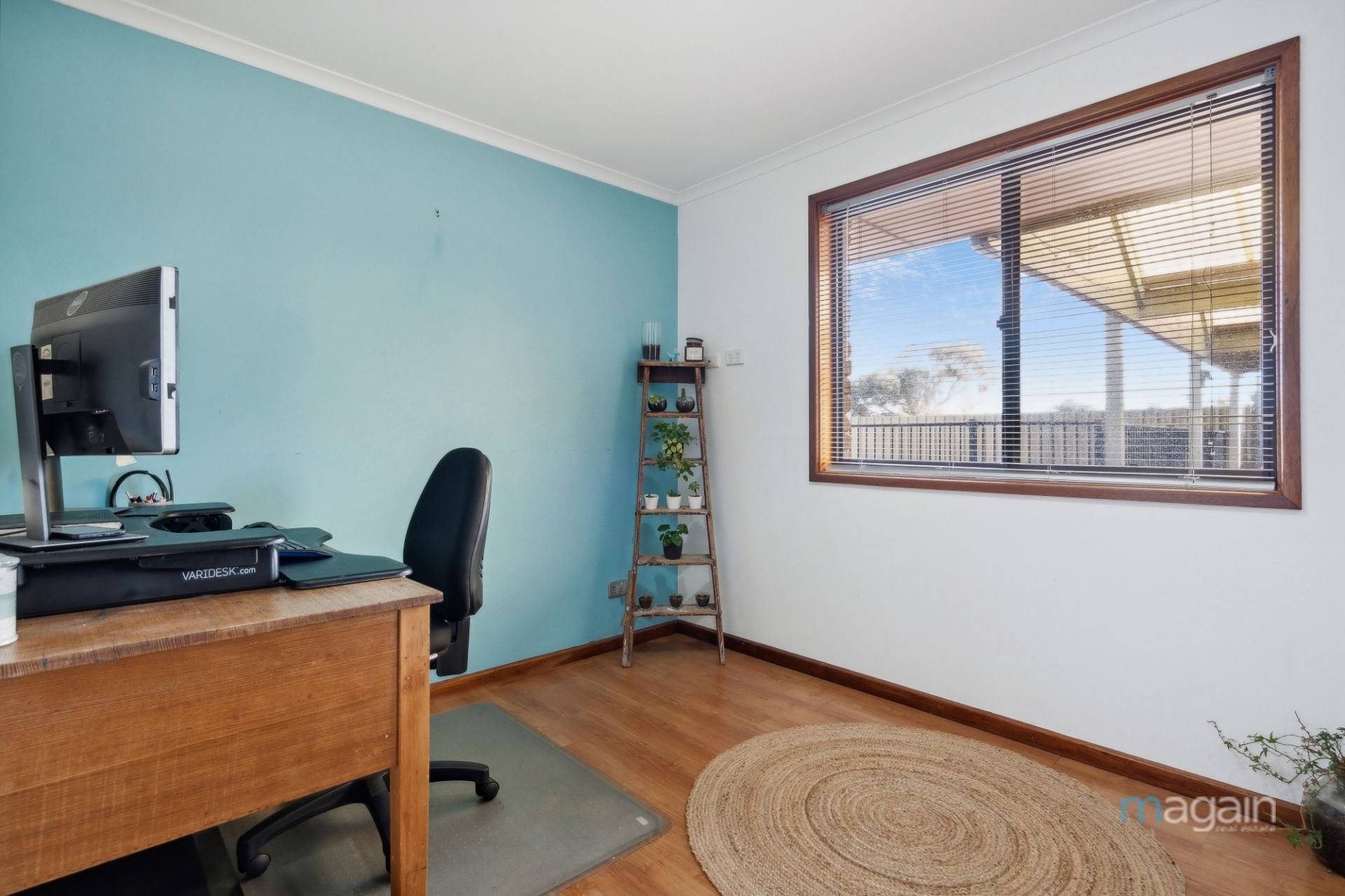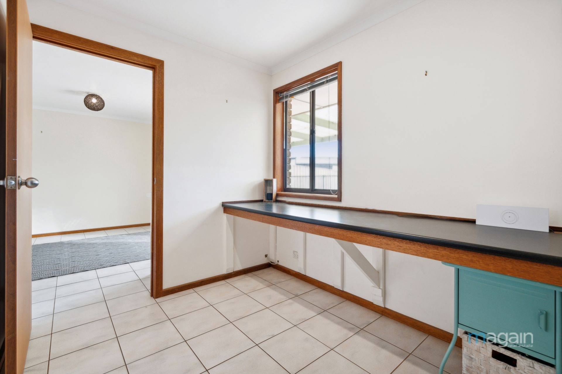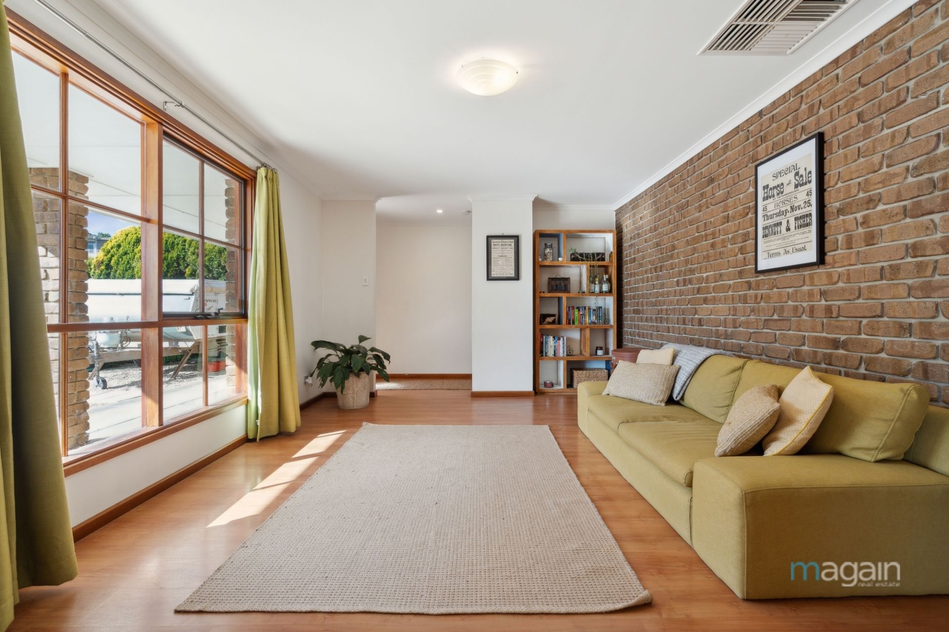 A valuable addition is a third living area or teenage retreat at the rear, complete with an adjacent study nook and direct access to the rear yard, featuring a small paved area under a skillion roof pergola.