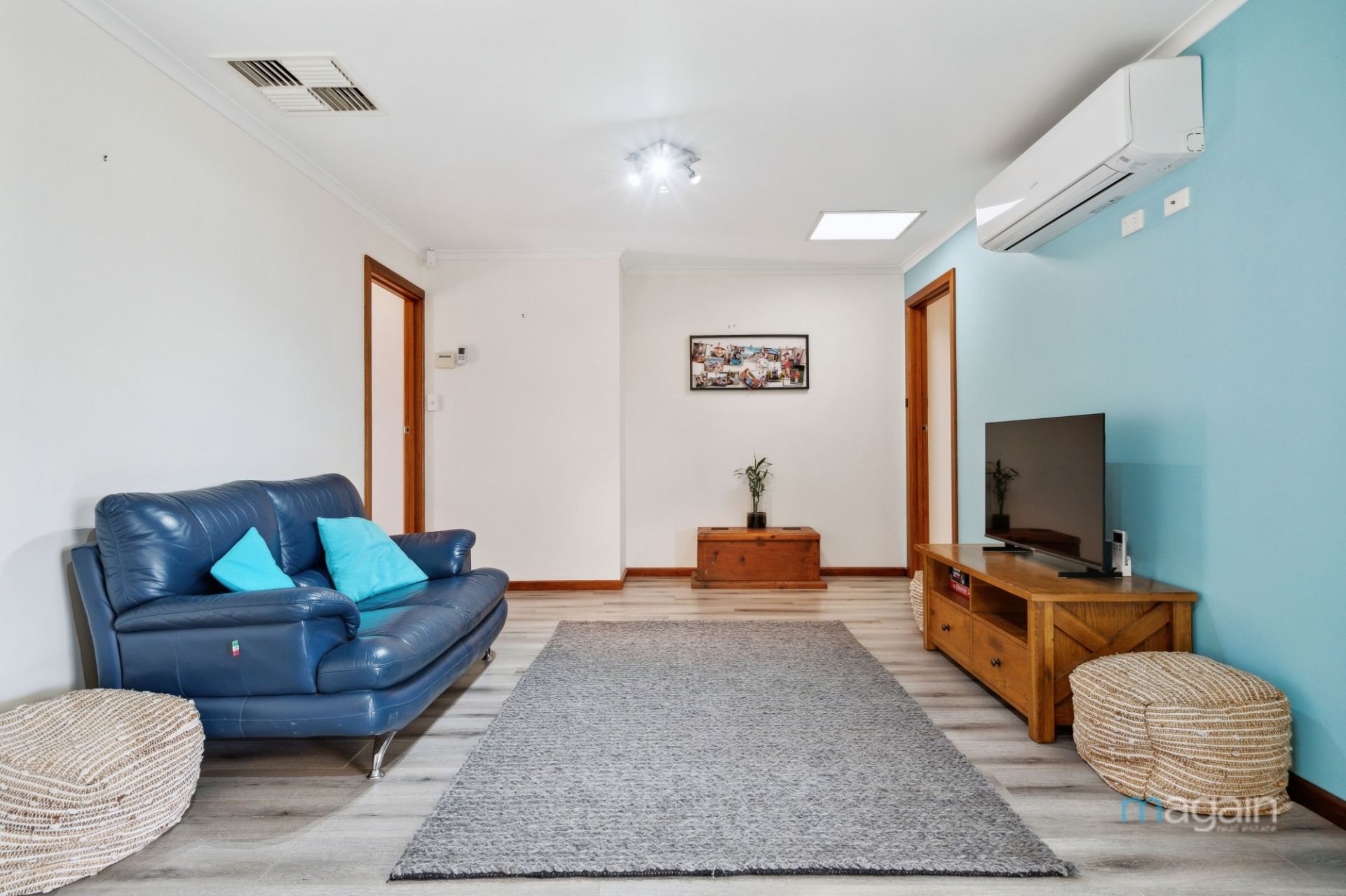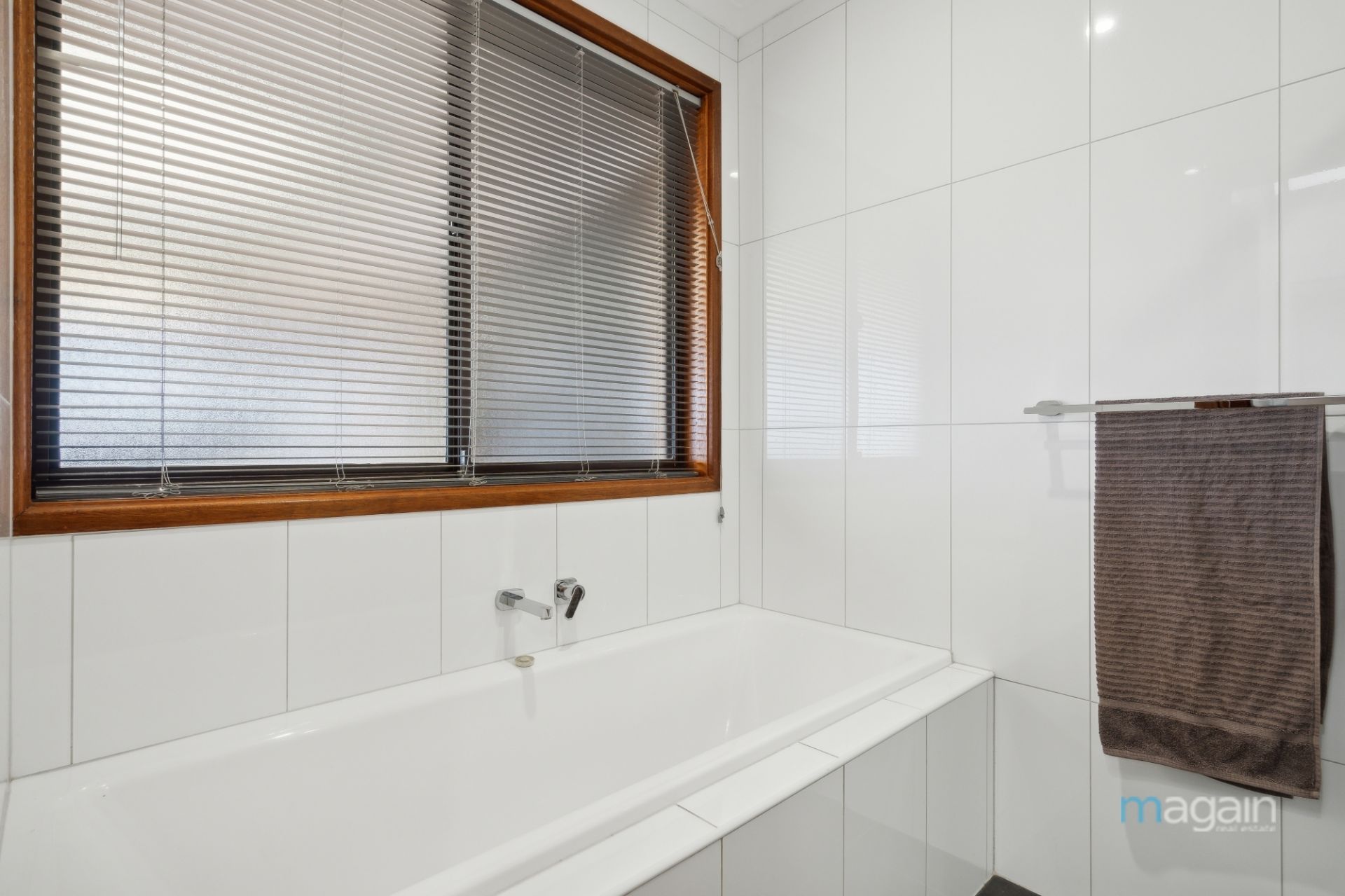 Additional features include a single garage with rear roller door access, extensive off-street parking for up to four cars, ducted evaporative cooling, a split system heating and cooling unit, instantaneous gas hot water, and a security alarm system.