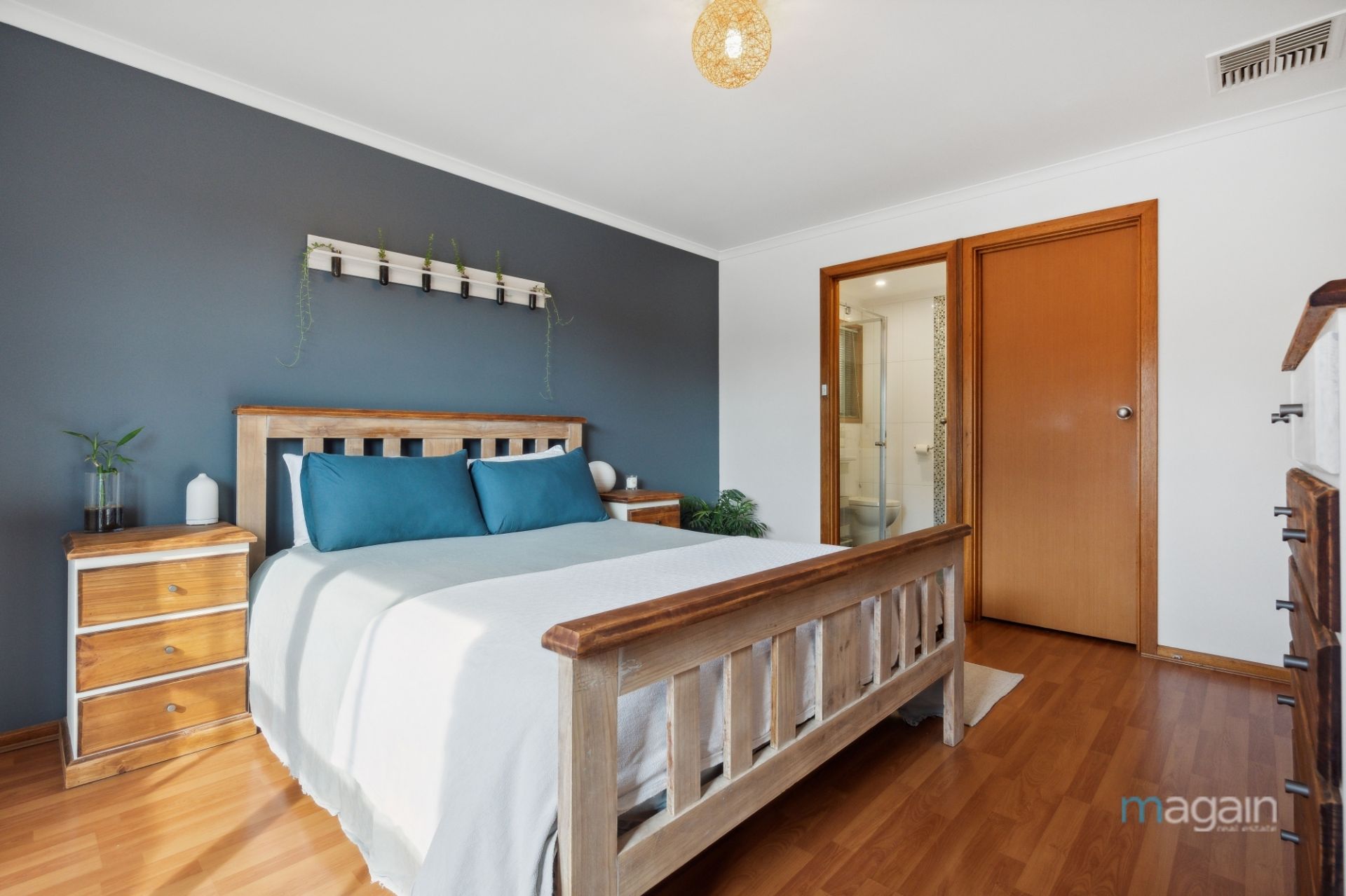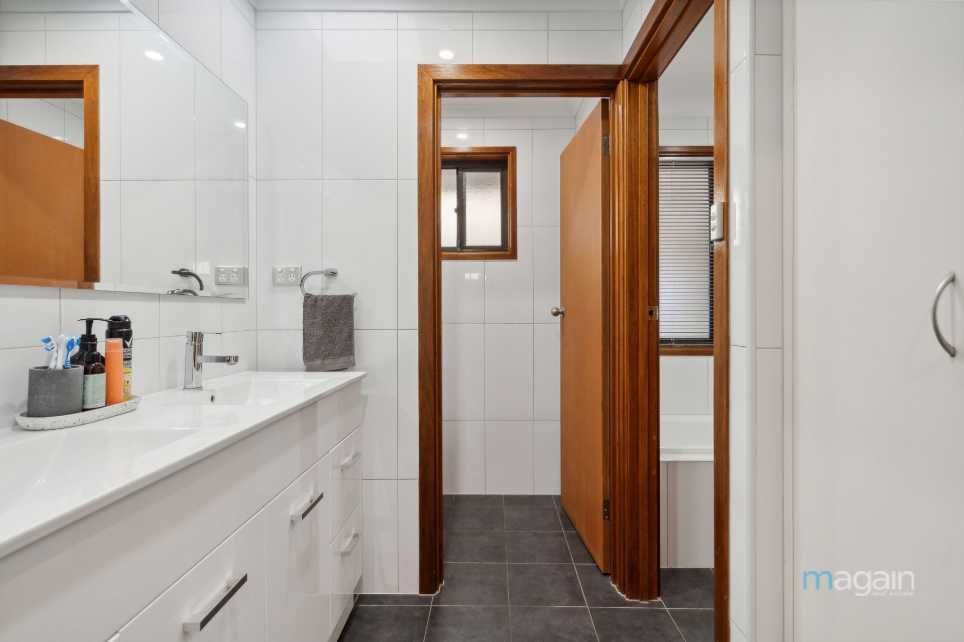 The residence offers five bedrooms, including a master suite with a walk-in robe and private ensuite. Bedrooms two, three, and four boast built-in robes and convenient access to the stylish three-way main bathroom, the separate double vanity and toilet cater perfectly to guests, while two linen cupboards here provide ample storage.