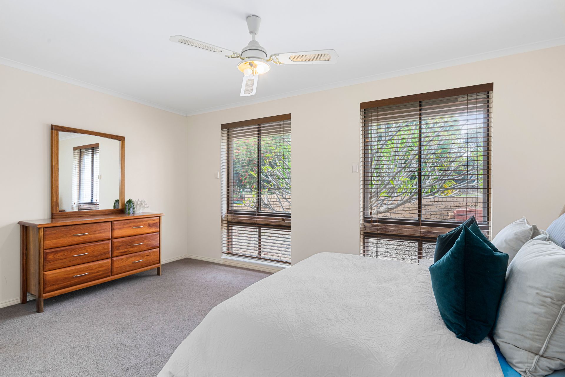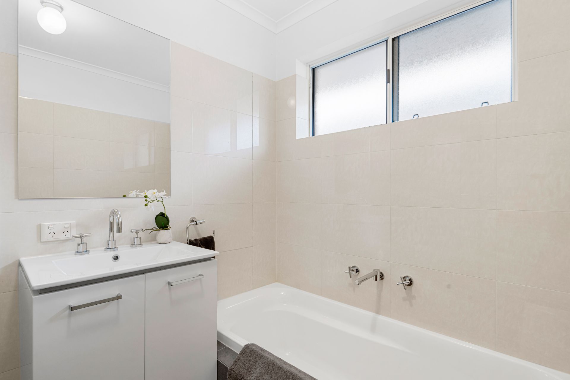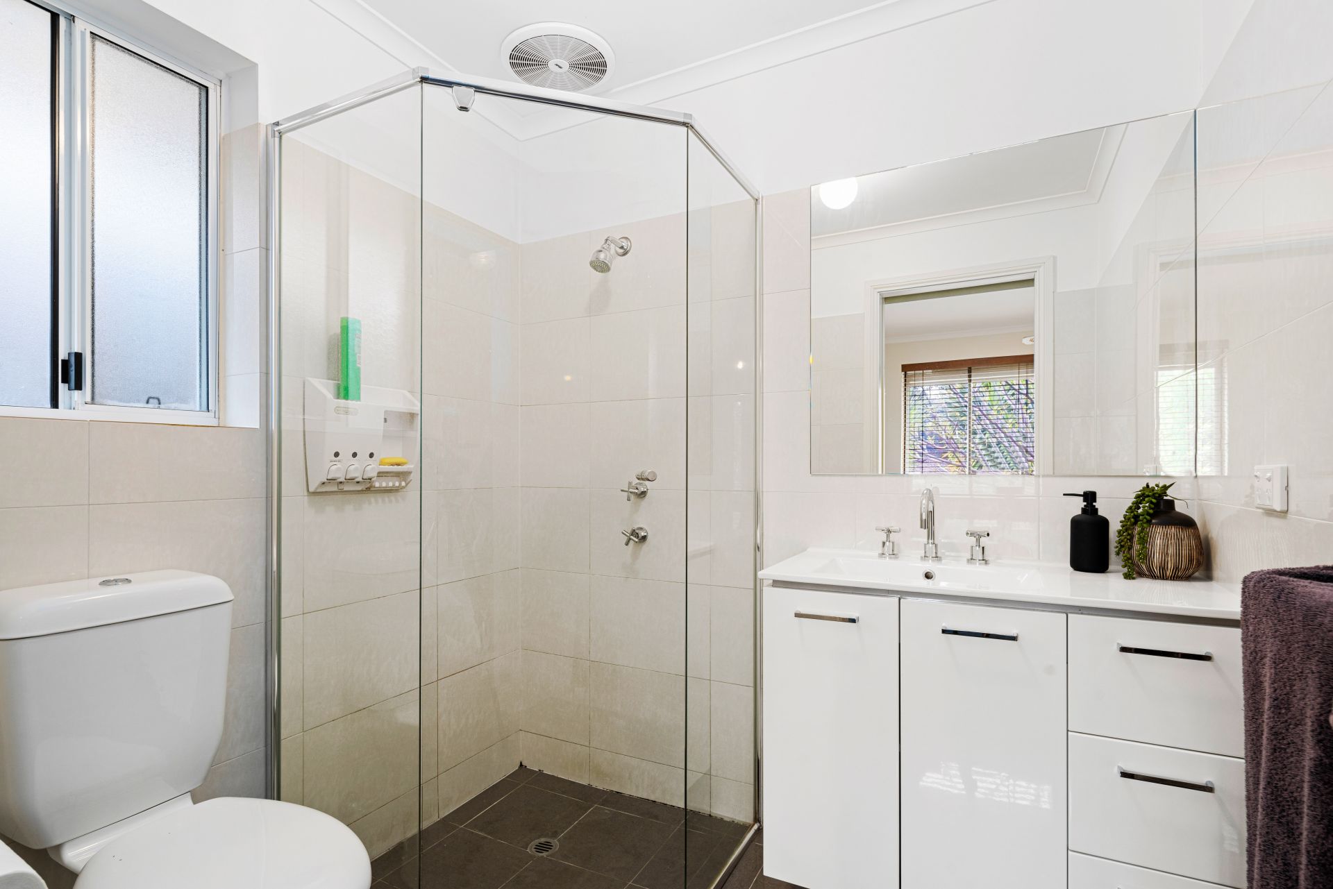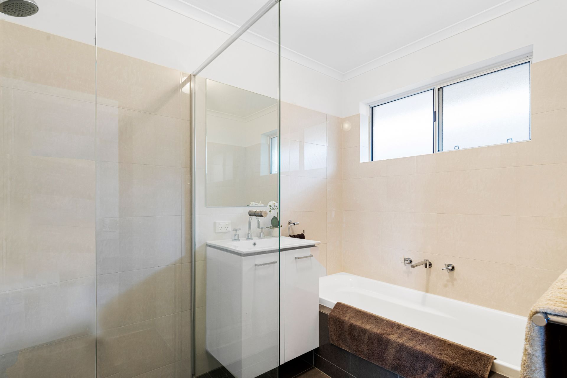 The front-positioned master bedroom features a ceiling fan, a walk-in robe plus a renovated ensuite with a neutral palette and modern fittings. Bedrooms two and three found just off the second living both feature built-in robes and easy access to the home's main bathroom, the spacious design making room for a shower, bath, and vanity plus a separate toilet making it perfect for guests.