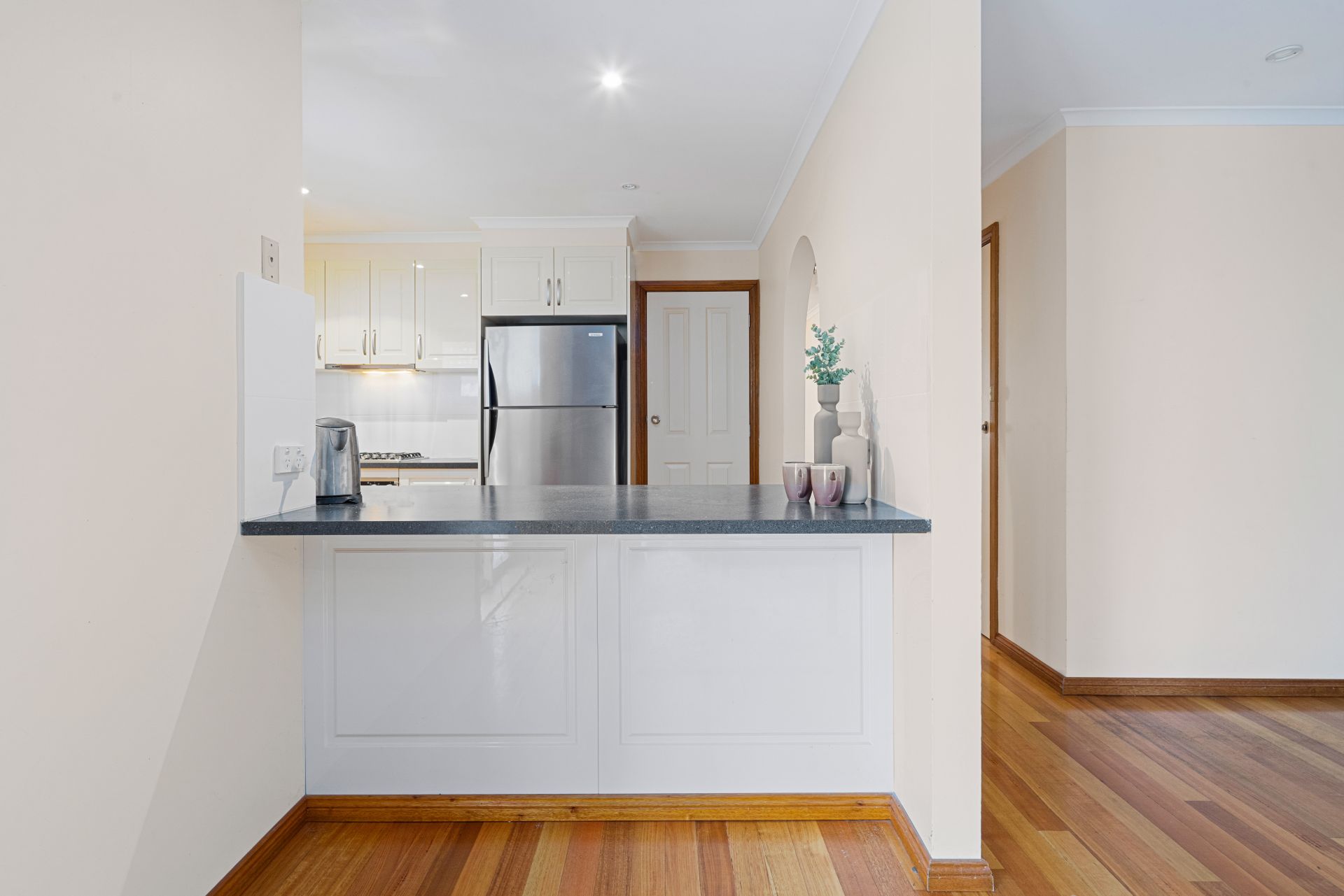 Welcoming you upon entry is a neat foyer leading you through to an L-shape lounge and dining with cozy carpets bathed in natural light through the large picture window, giving an instant feeling of elegance throughout. This formal living blends seamlessly through to the renovated kitchen, overlooking the second living with built-in bar that makes a fantastic spot for entertaining guests.