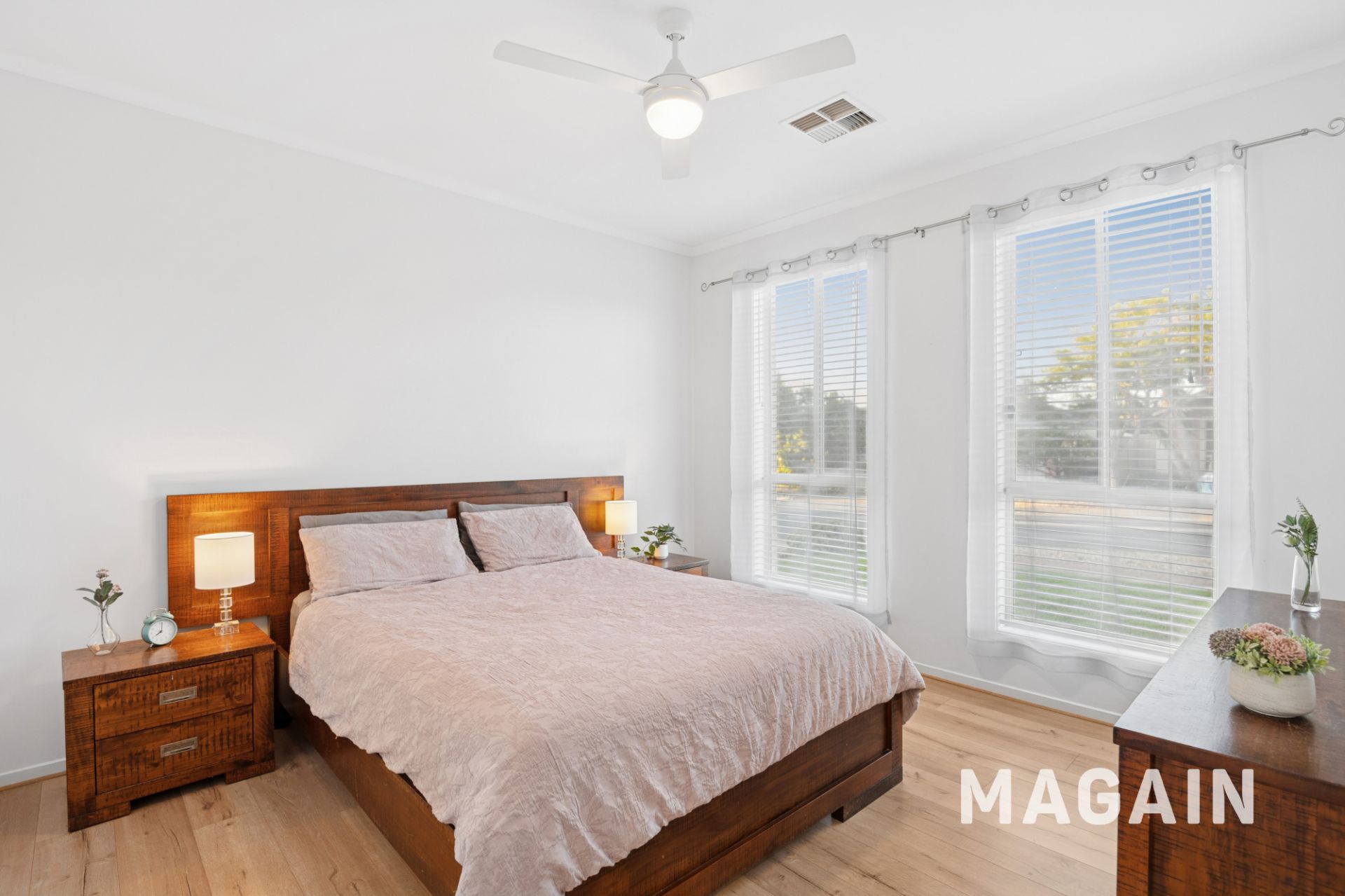 The separate tiled entry provides access into the spacious main bedroom that comes with a ceiling fan, a walk-in robe and a private ensuite. Bedrooms two and three are both generously proportioned and include built-in robes, with a ceiling fan fitted to one. The versatile fourth bedroom is perfectly suited as a home office or study. A neat three-way main bathroom and separate laundry further enhance the home’s practical layout.