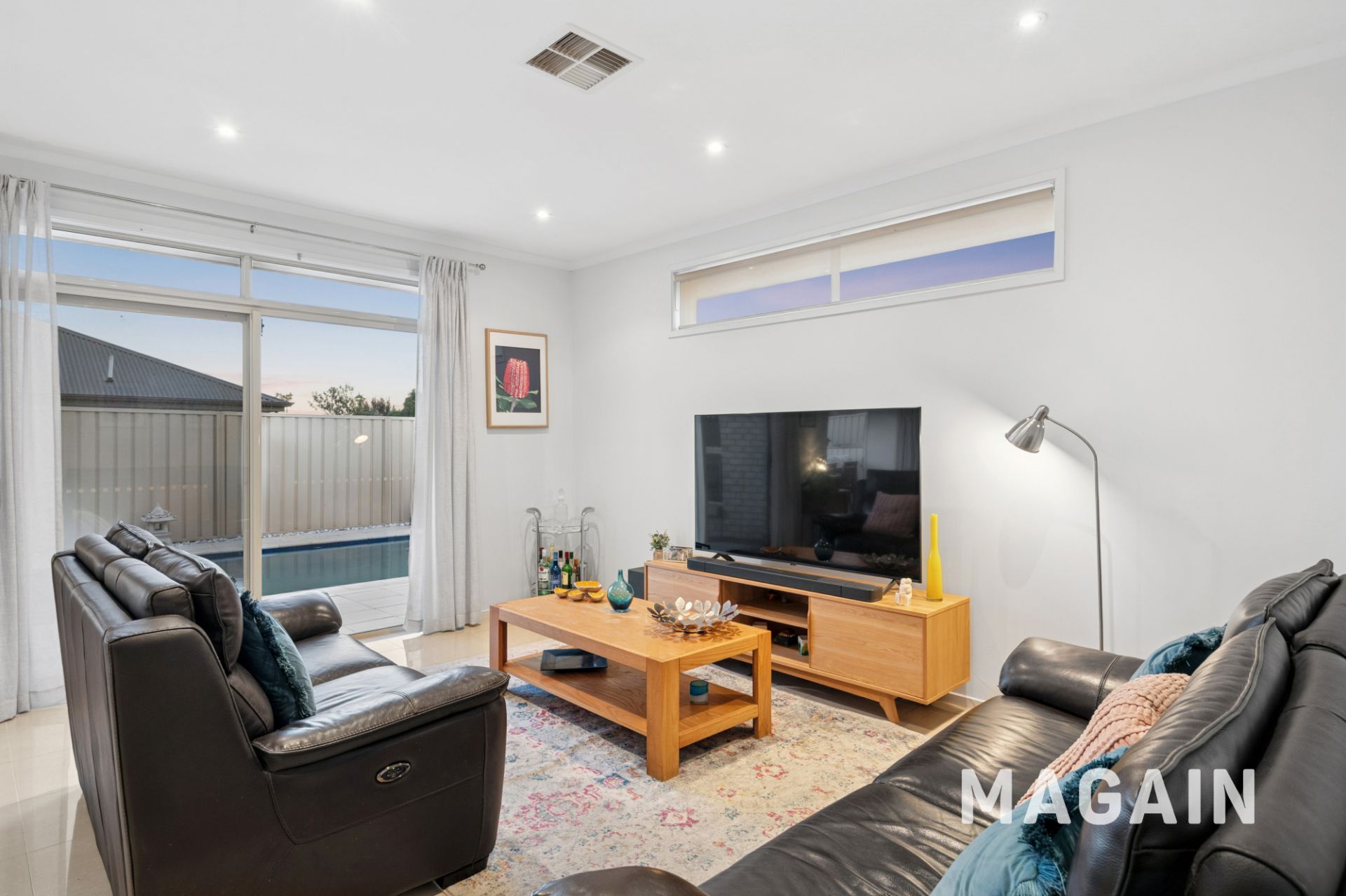 Seamless access from the living area leads to the side cabled pergola, complete with ceiling fan, built-in bar and pull-down blinds, creating the ultimate space for relaxing or entertaining. The rear yard is highlighted by a sparkling in-ground solar heated swimming pool with separate gas-heated spa adding further appeal to this standout home. Both front and rear gardens are well established and designed for easy care living.