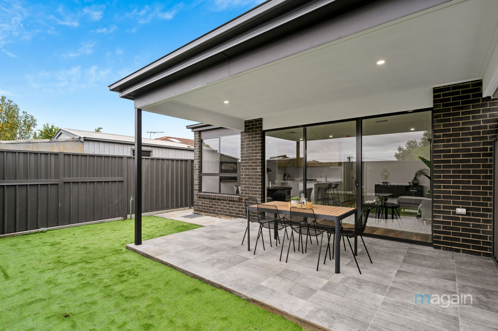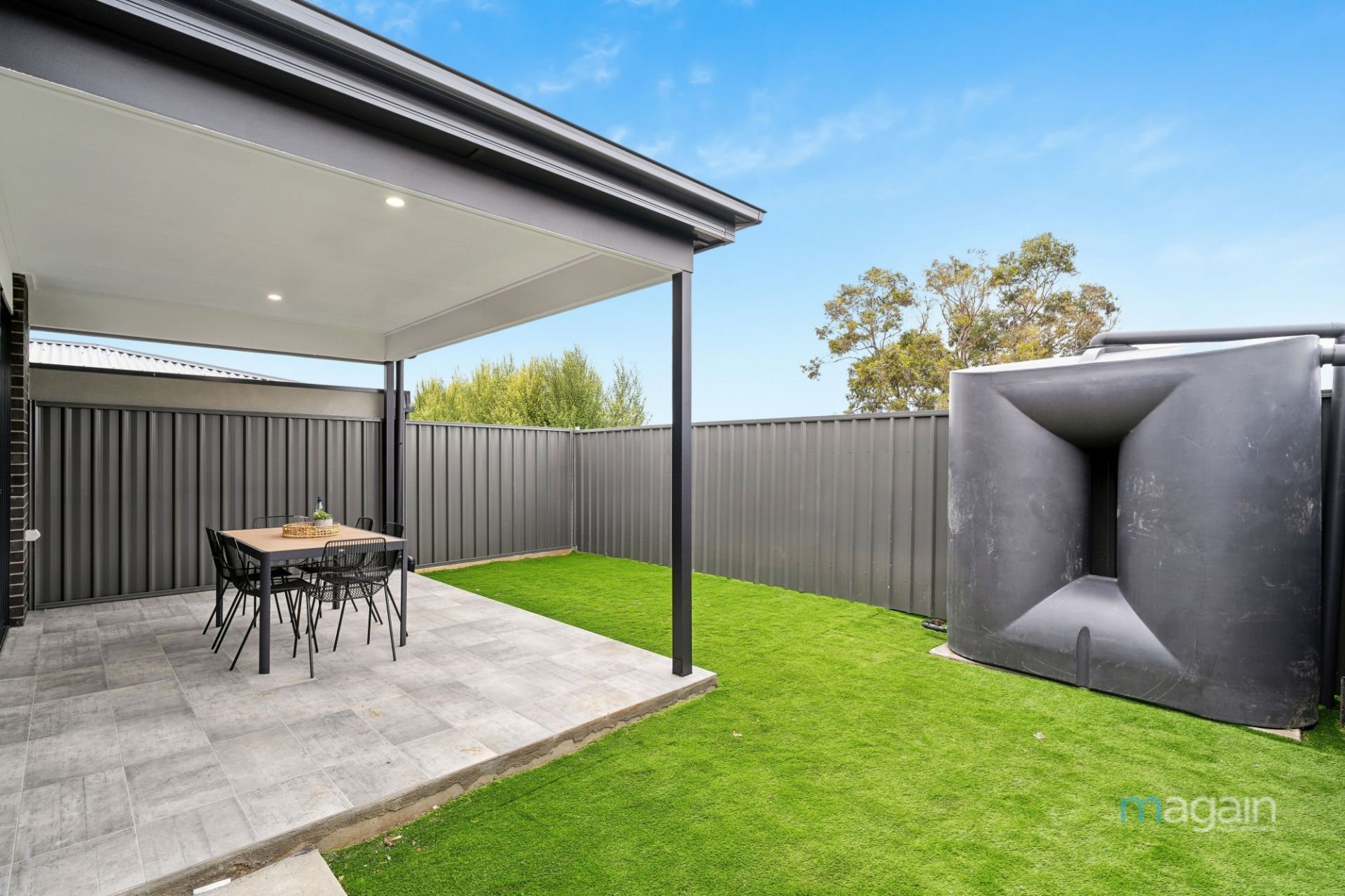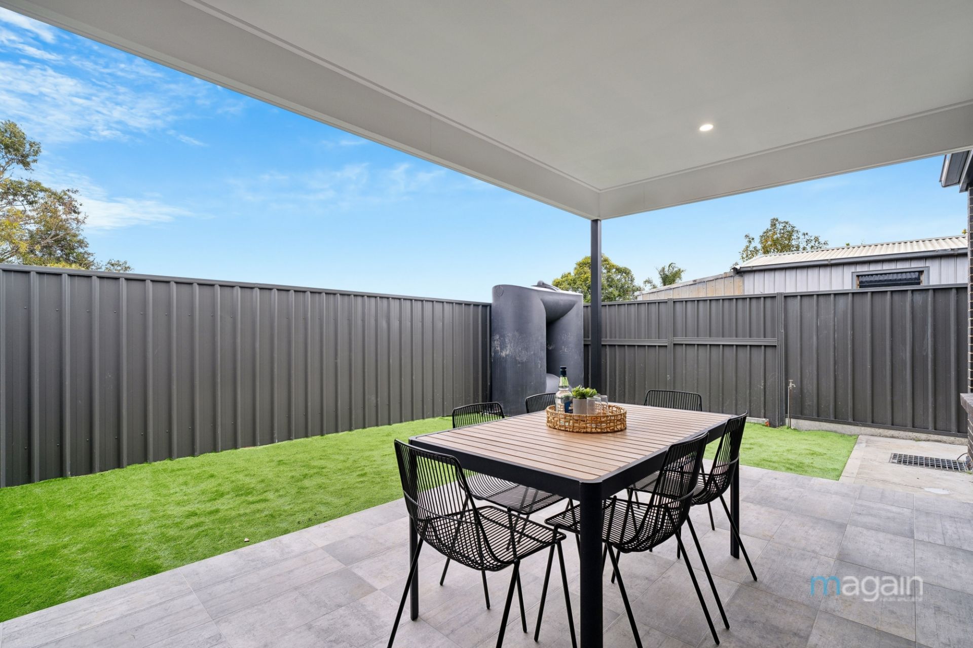 The property continues to impress with a generously sized yard featuring a lovely low-maintenance artificial lawn area, perfect for children and pets. The tiled alfresco entertaining area, built under the main roof, includes LED downlights, providing an ideal space to entertain year-round.