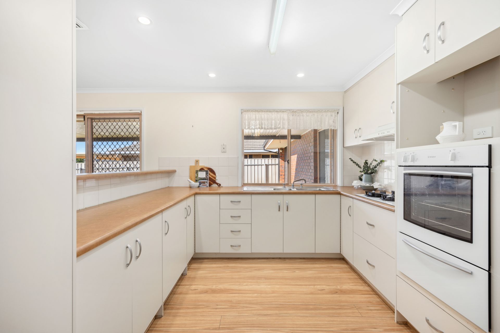 The spacious & functional floor plan offers three bedrooms, including the master with updated ensuite, walk in robe, ceiling fan & bay window, while the other two bedrooms also have built in robes. To the front of the home is a formal lounge room with updated carpet. Down the hallway is the centralised kitchen, finished with a large pantry cupboard, high breakfast bar, gas cooking, integrated dishwasher, plenty of cupboards and a light filled window over the sink. The kitchen overlooks the open plan living area, with enough space for a good sized table and a family room. With stylish laminate flooring throughout it is perfect for day to day living. There is also a ceiling fan and gas space heater with dual vents for added efficiency. In between the two bedrooms is the main three way bathroom, with separate vanity & toilet for convenience. To the very rear of the home is a large laundry with cupboard storage plus a separate walk in store room. The home is also serviced by fully ducted evaporative cooling.