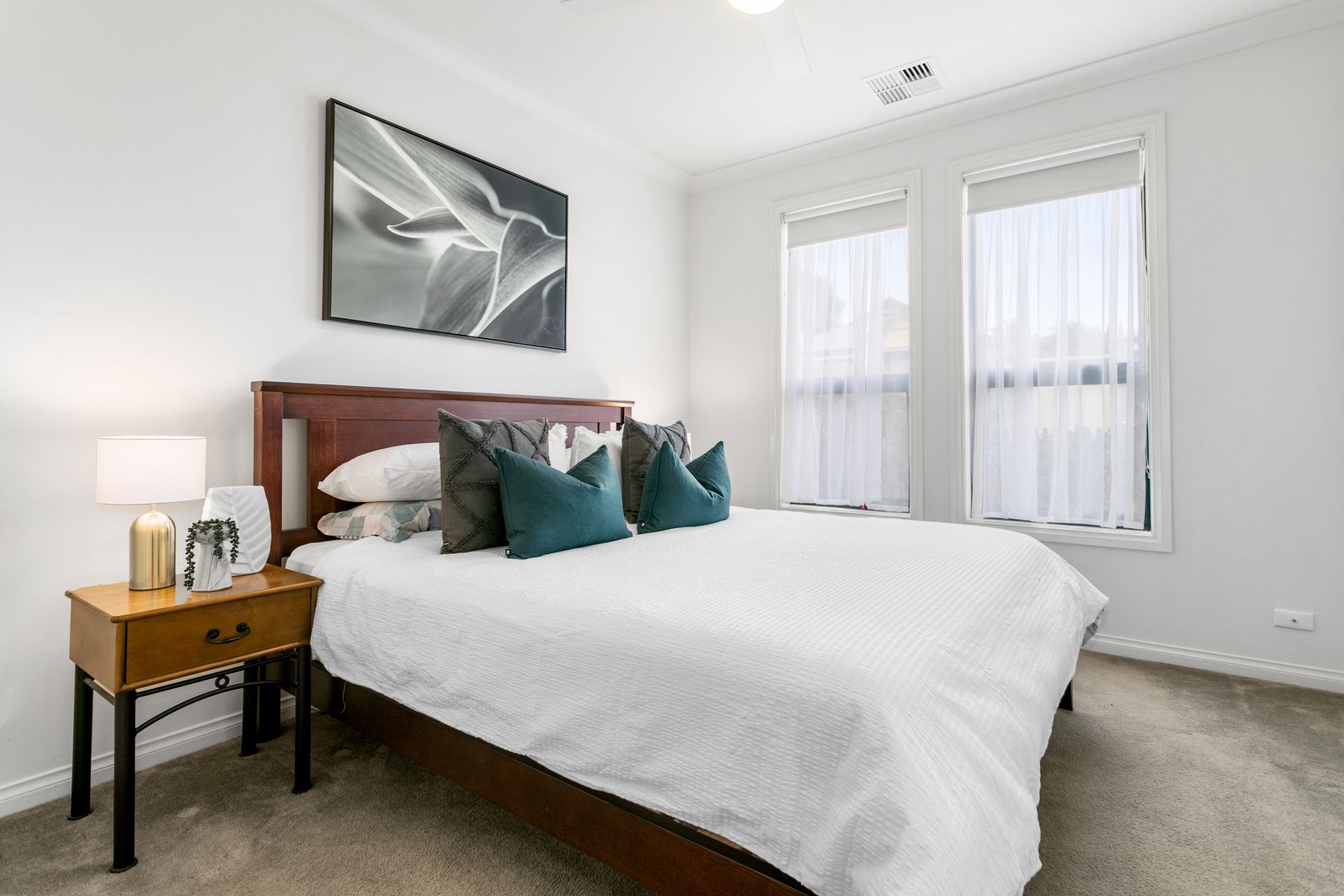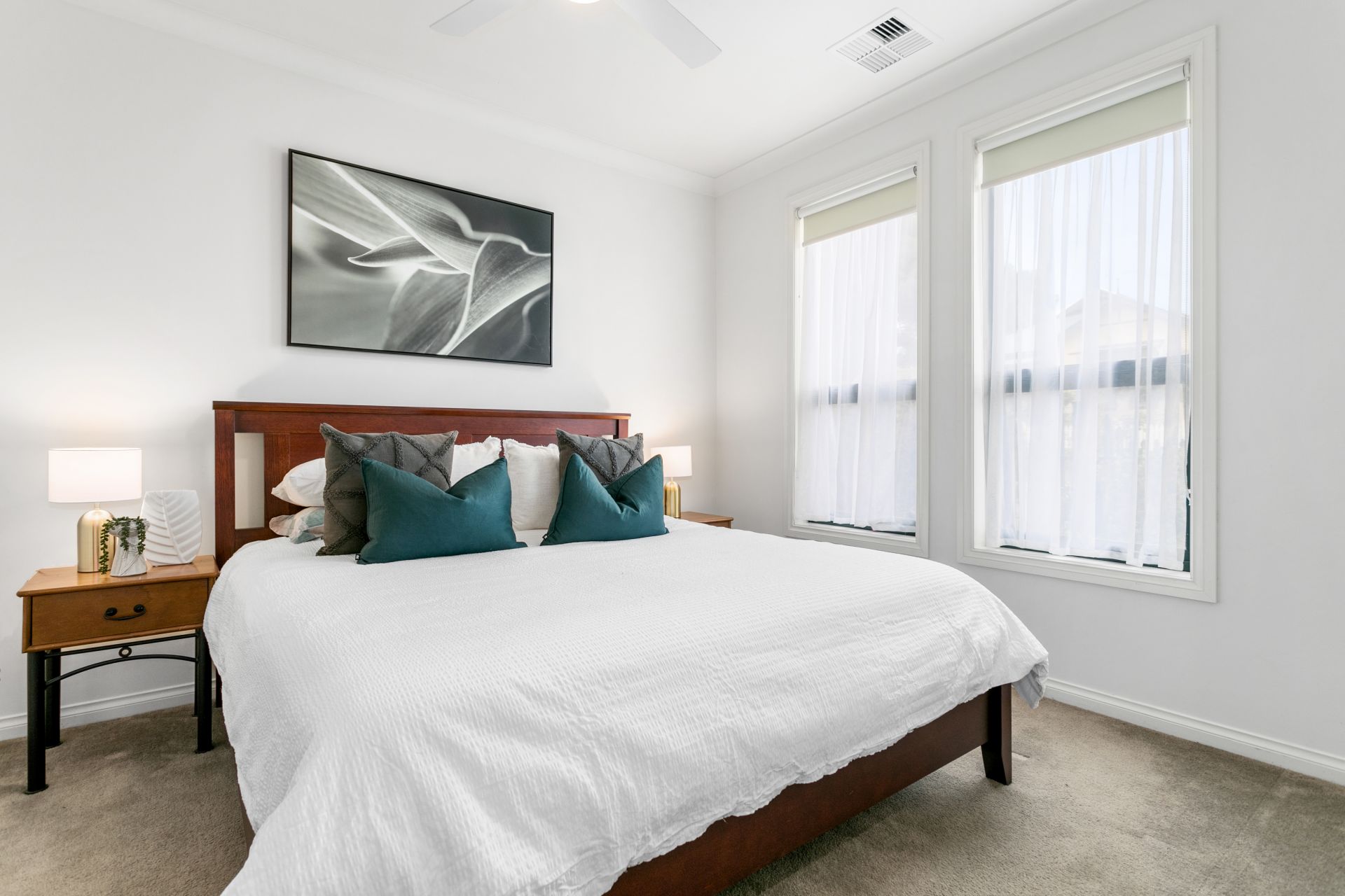 > master bedroom is ideally positioned at the front of the home and features a ceiling fan, walk in robe and ensuite