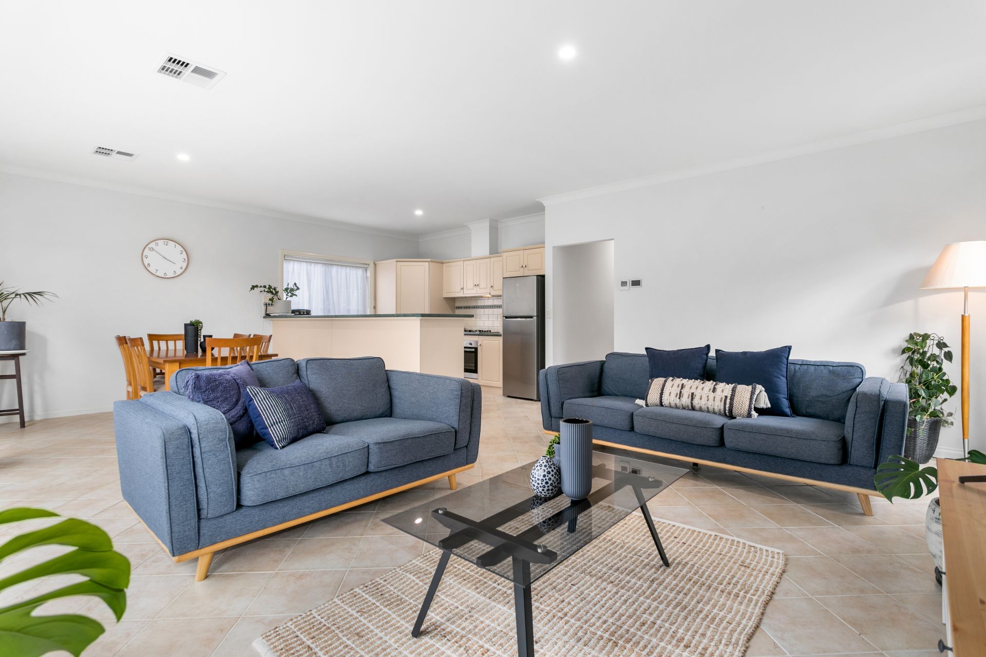 > three bedroom family home with wonderful kerbside appeal is located on a quiet cul-de-sac only a two minute walk from the fantastic and newly opened Happy Valley Reserve - featuring walking/bike trails, kayaking and fishing. It offers contemporary living at its very best, while its floorplan is well designed to make great use of the space provided