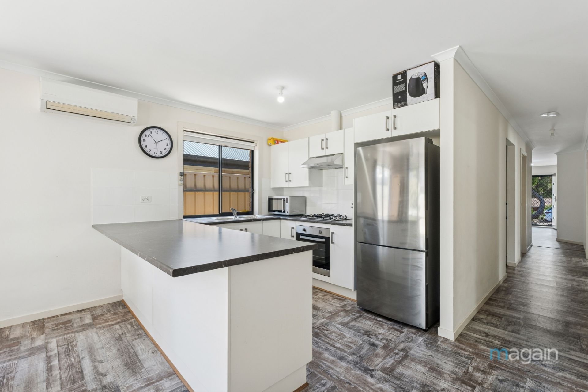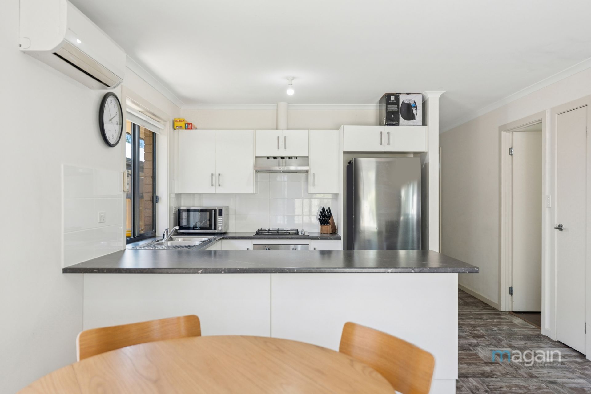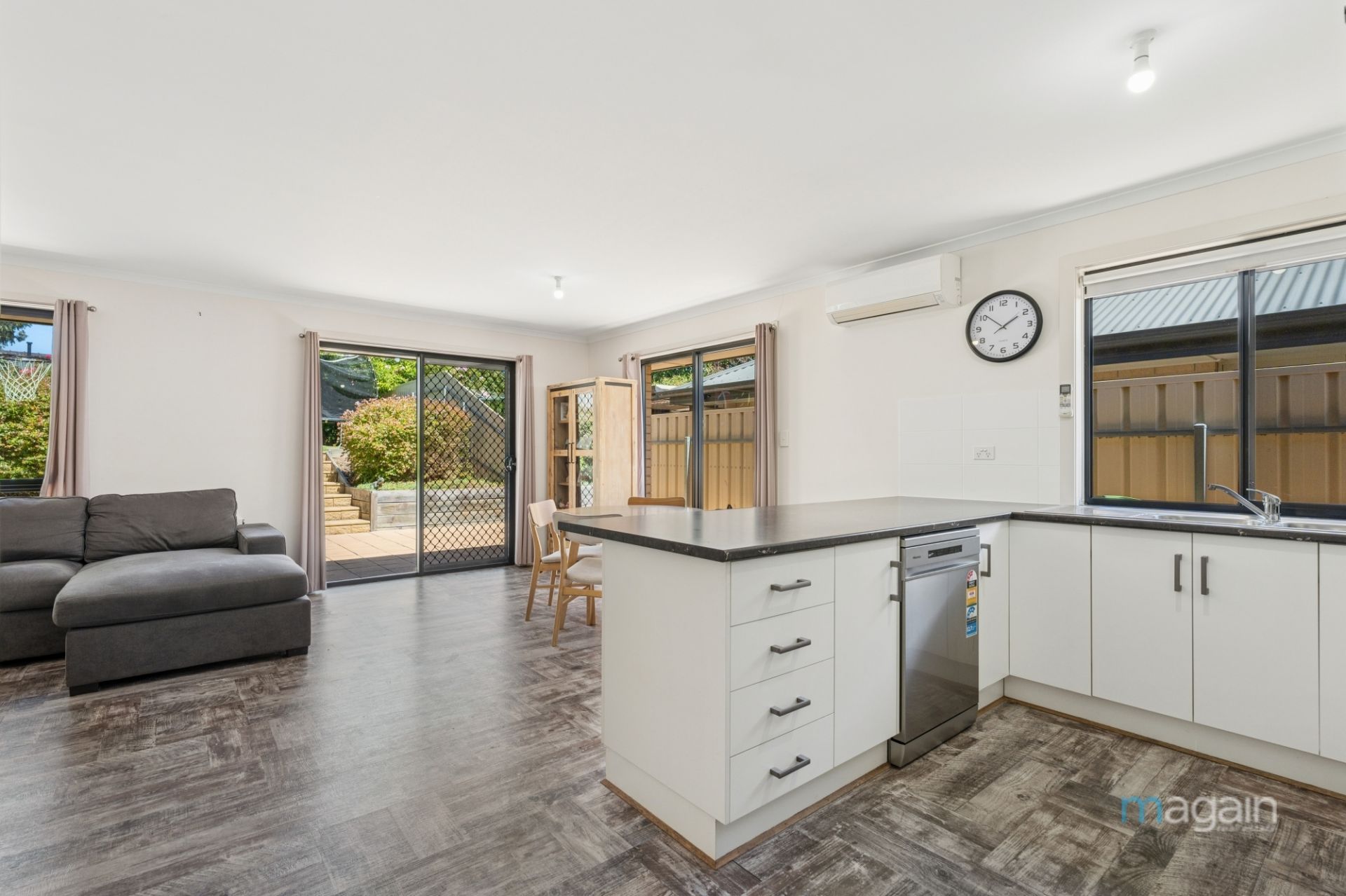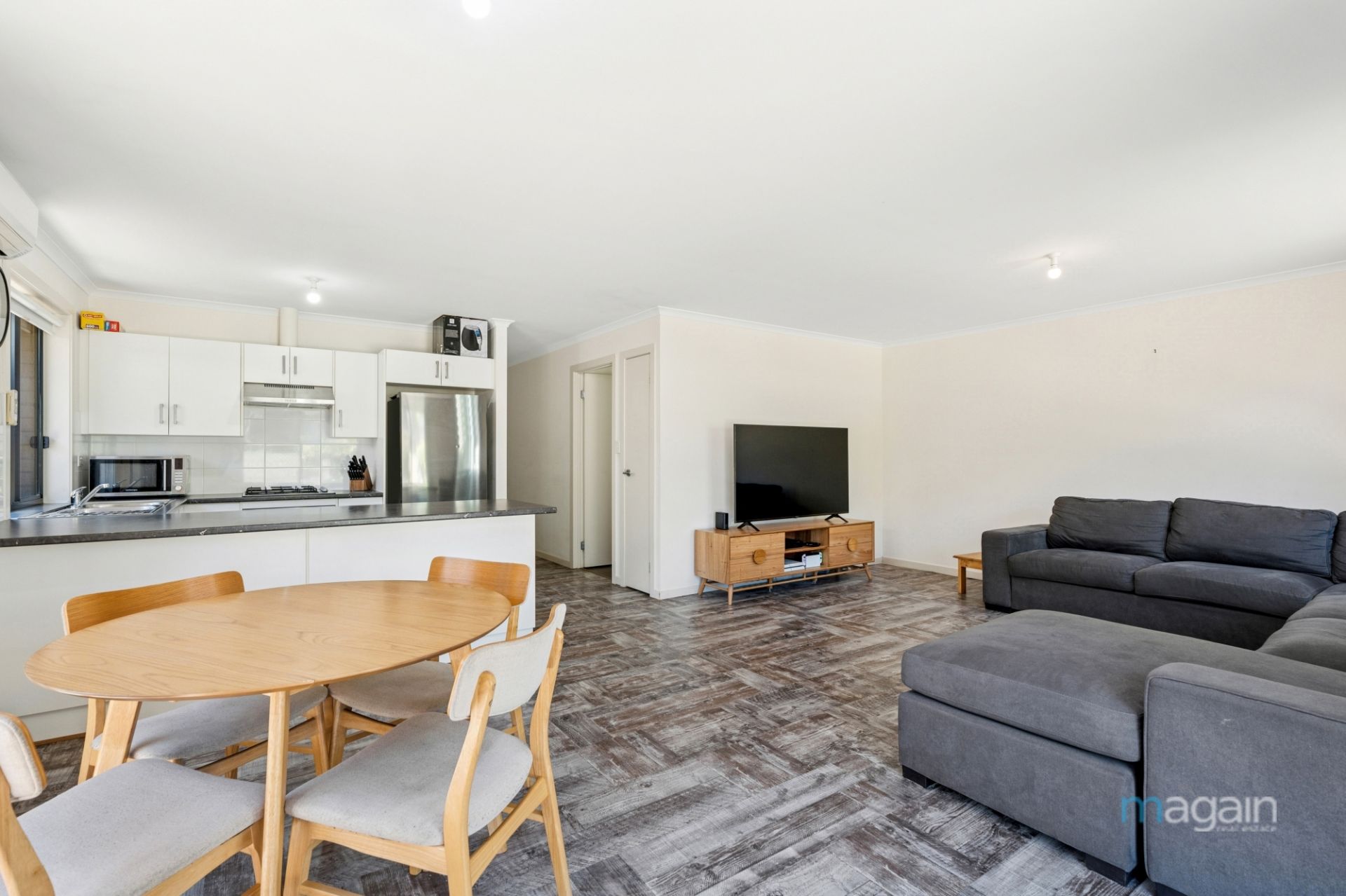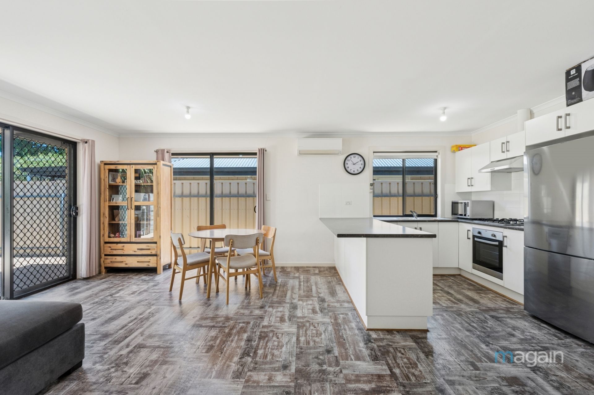 At the heart of the home is the sleek, modern kitchen, featuring stainless steel appliances, a dishwasher, and ample storage. Overlooking the open-plan meals and living area, this space is perfect for both relaxed family time and entertaining guests. This space comes equipped with a split system to ensure year-round comfort for all.