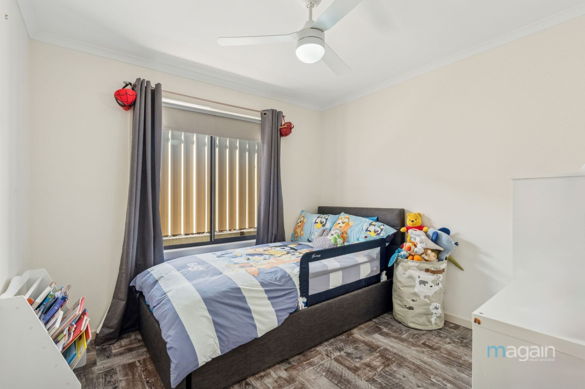 From the moment you step inside, you'll be greeted by a contemporary interior with a seamless flow throughout. The master suite, positioned at the front of the home, serves as a private retreat, complete with a walk-in robe and stylish ensuite. The additional three bedrooms, each with a ceiling fan and bedrooms two and three with built-in robes, are thoughtfully placed away from the master, ensuring privacy and practicality for the whole family.