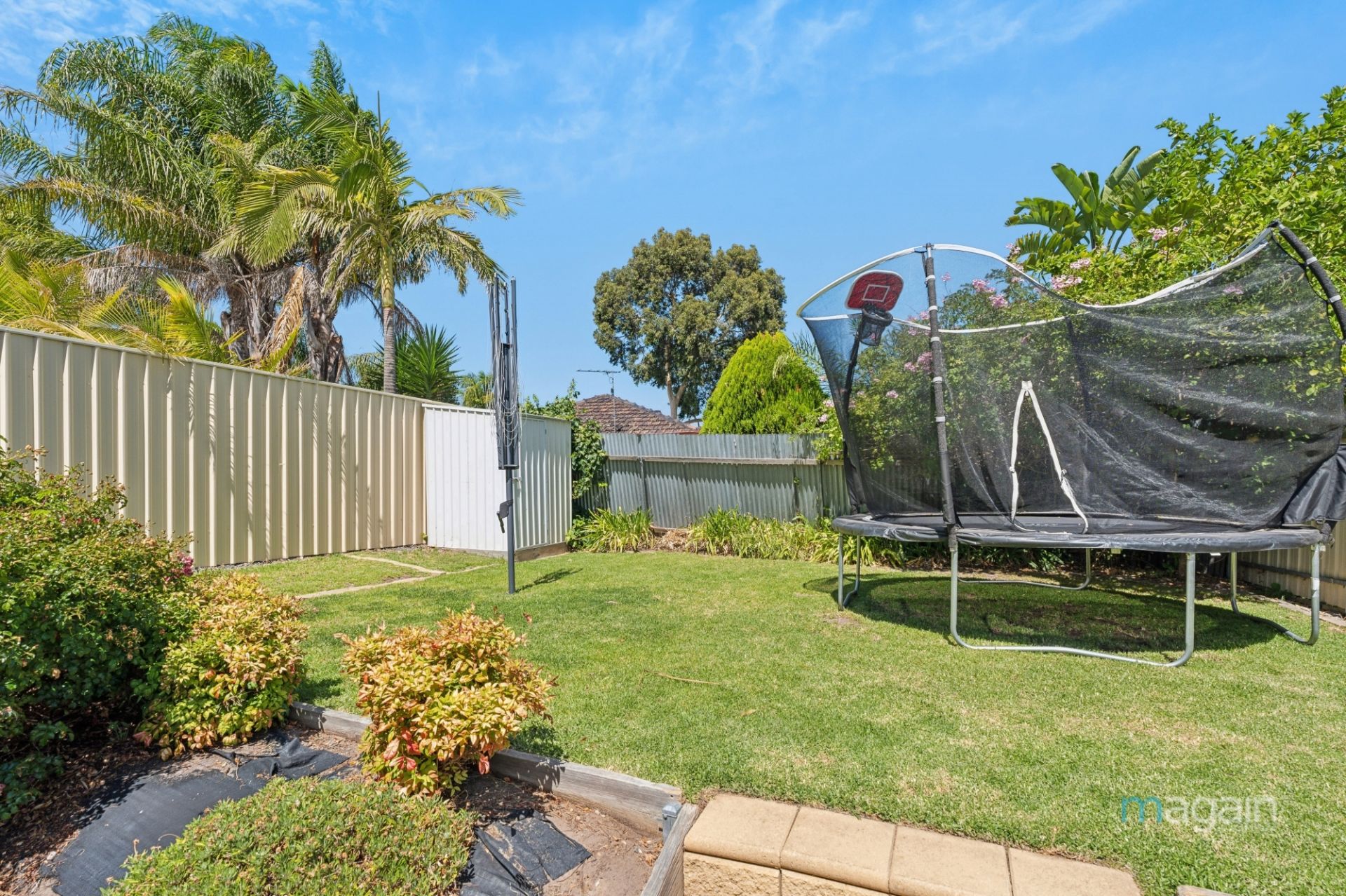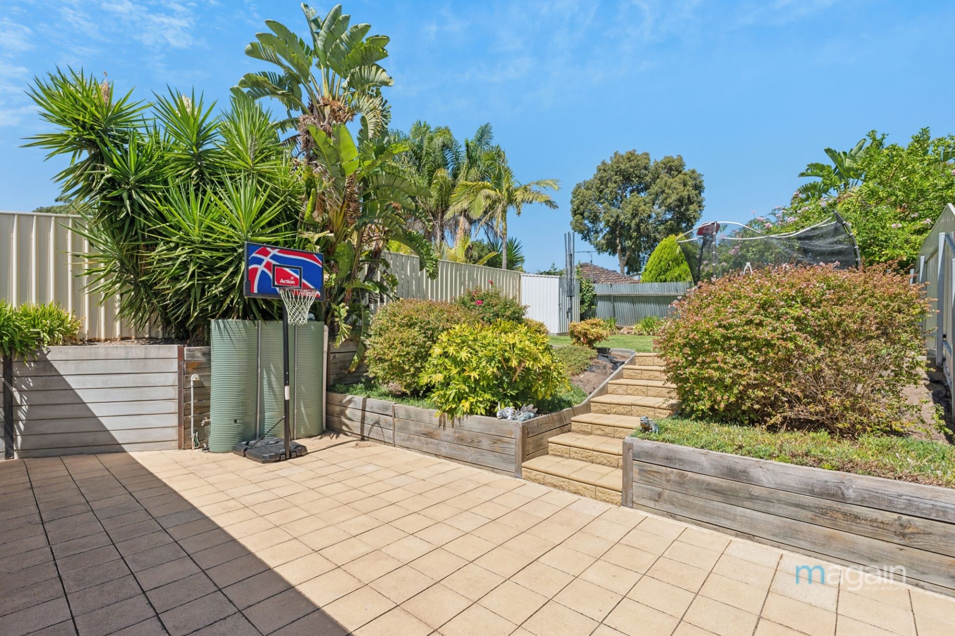 Outside, a paved entertaining area extends the living space, overlooking a split-level backyard with a garden shed for extra storage. A single garage with internal access enhances convenience.