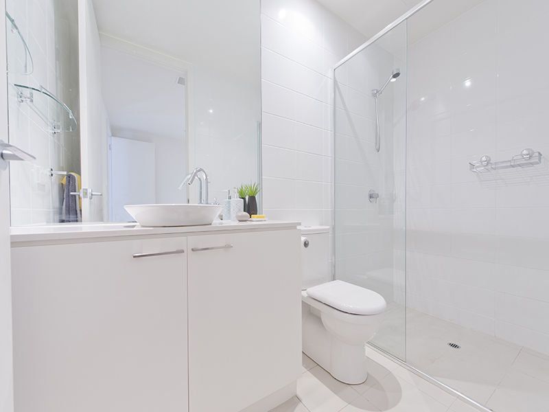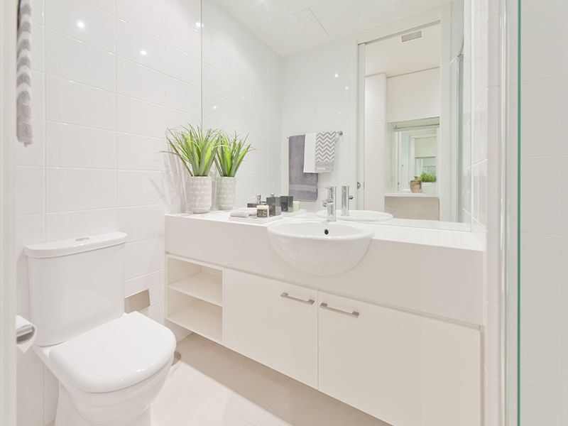 Sparkling main bathroom with ceiling to floor tiling & separate laundry area