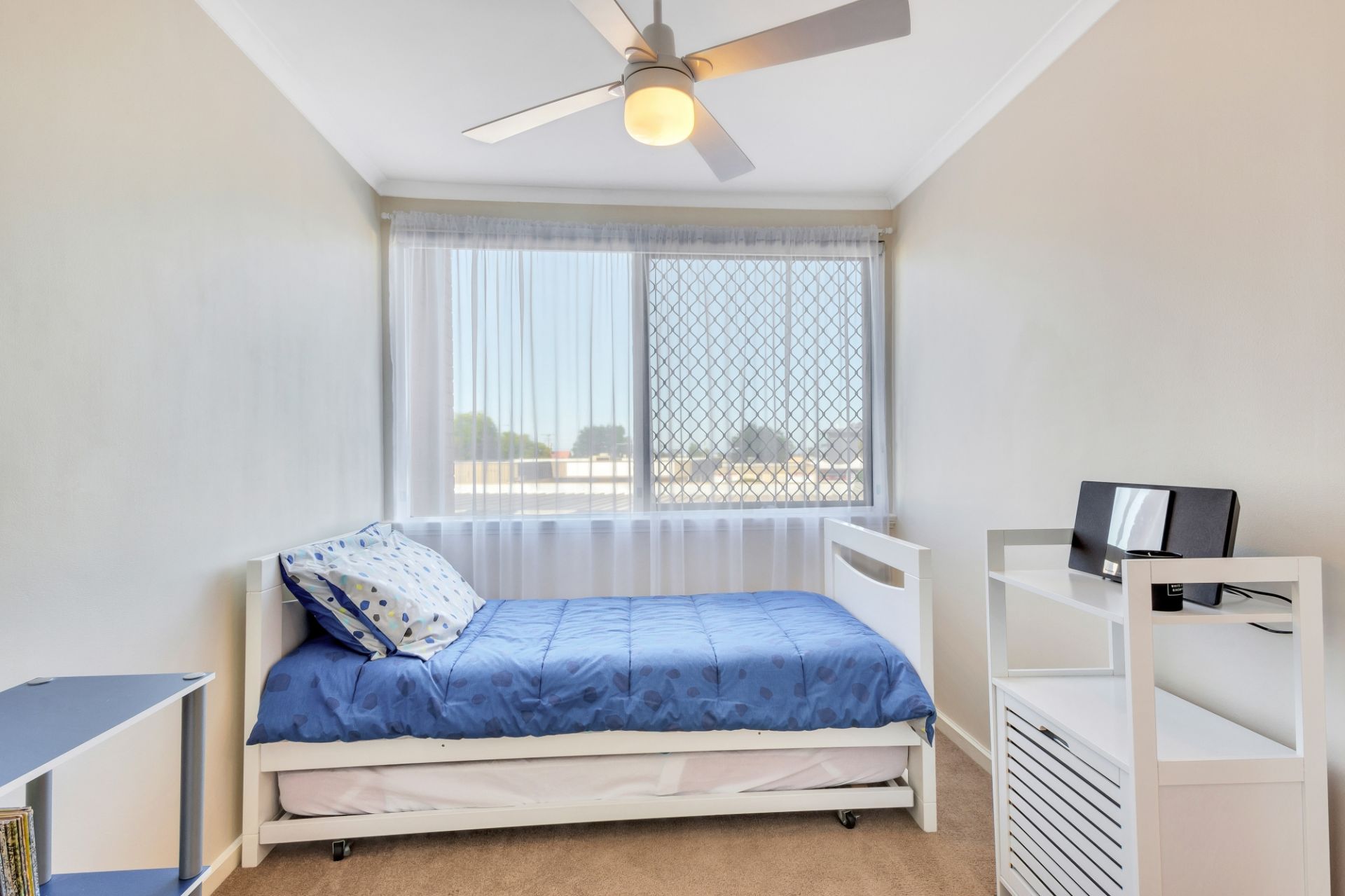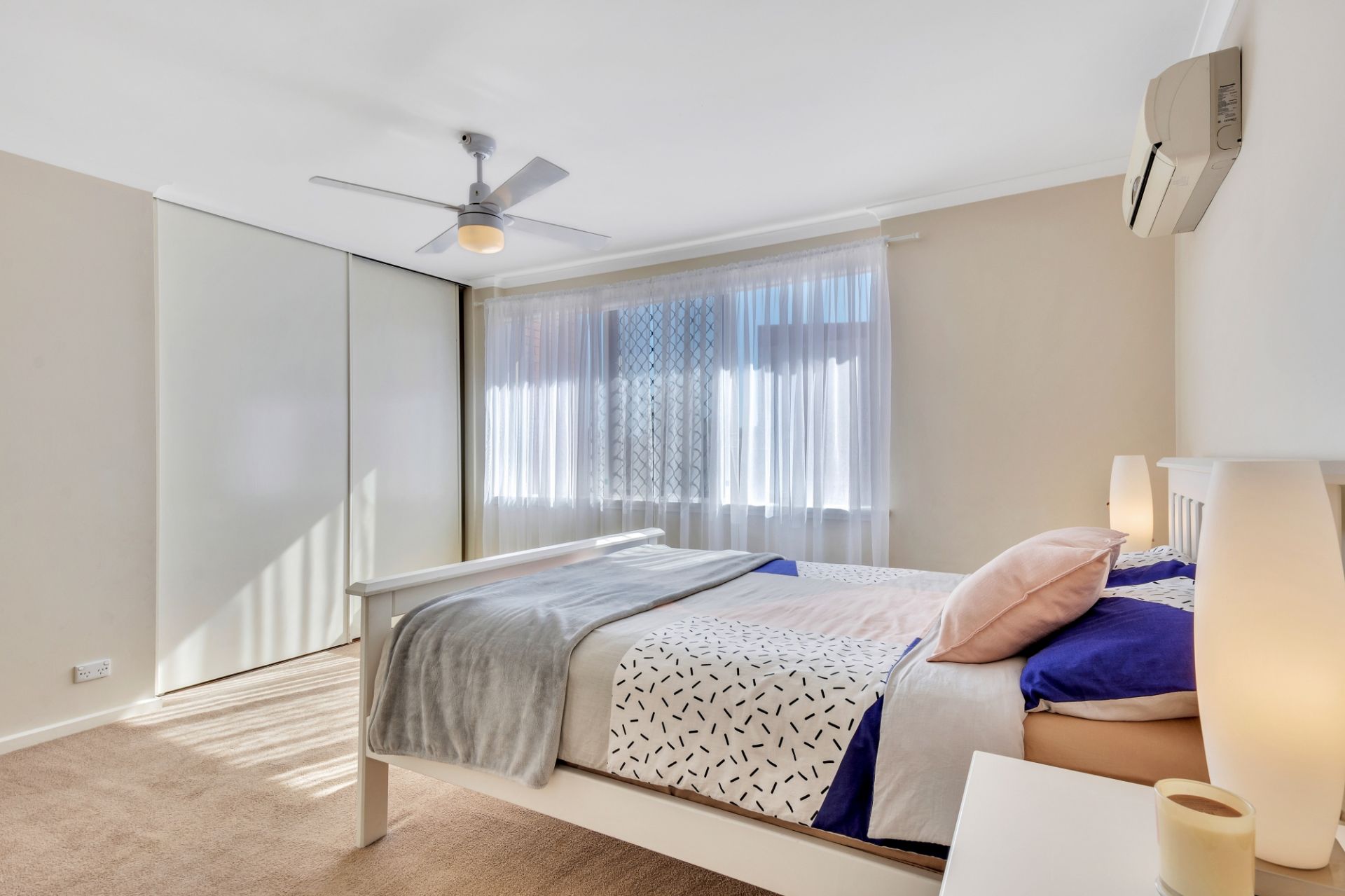 Upstairs you'll find a large master bedroom with an (almost walk in) built in wardrobe, so you won't be short of storage. The open landing will make the perfect office or play space for a young family and the second bedroom is a generous size with spectacular sunset views. Ceiling fans in both rooms are a necessity for year-round comfort and a split system in the main bedroom will take care of the whole upstairs area. The luxurious main bathroom upstairs has all the fixtures to suit the whole family while still being low maintenance.