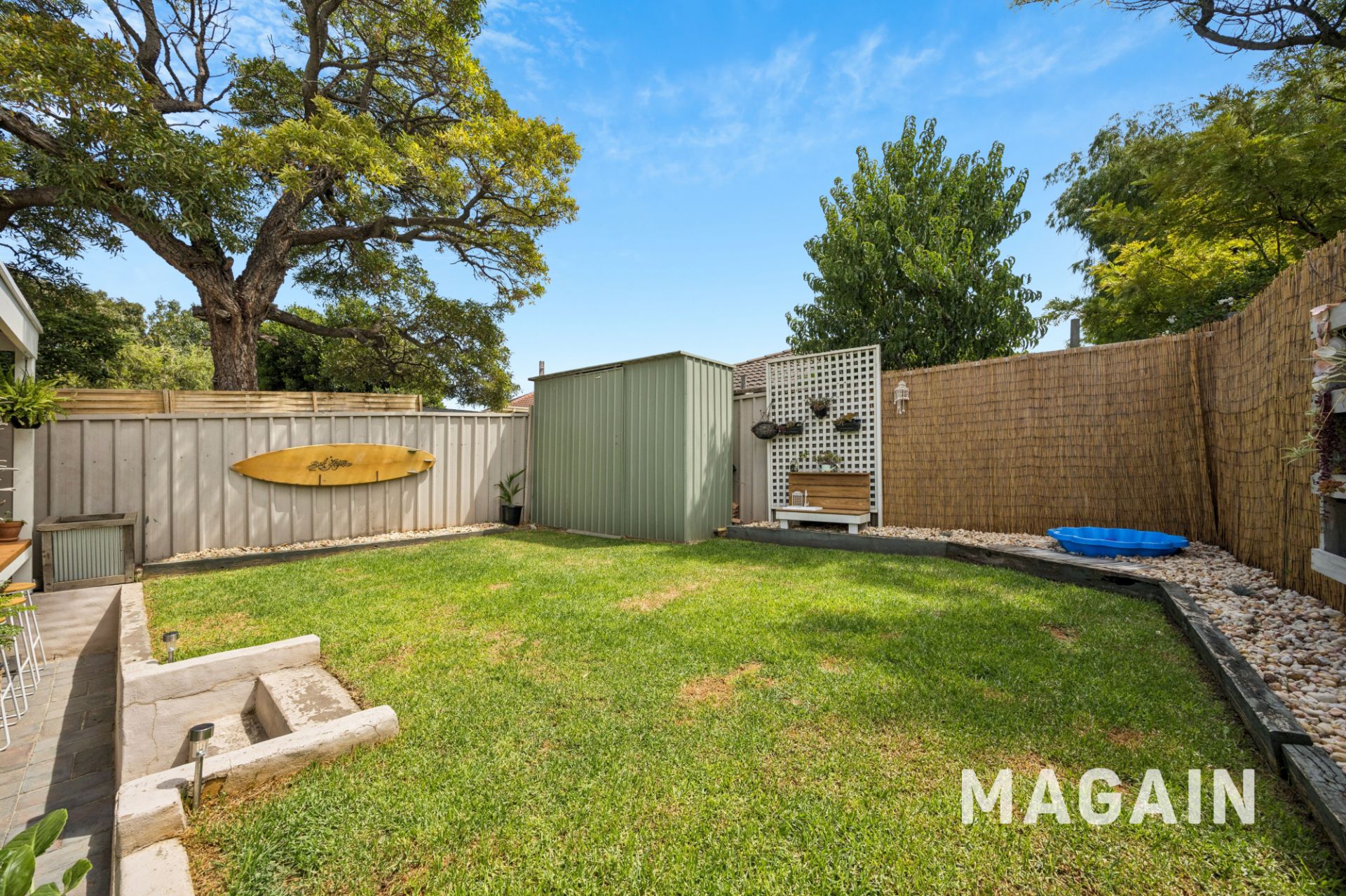 • Secure backyard with lawn and shed