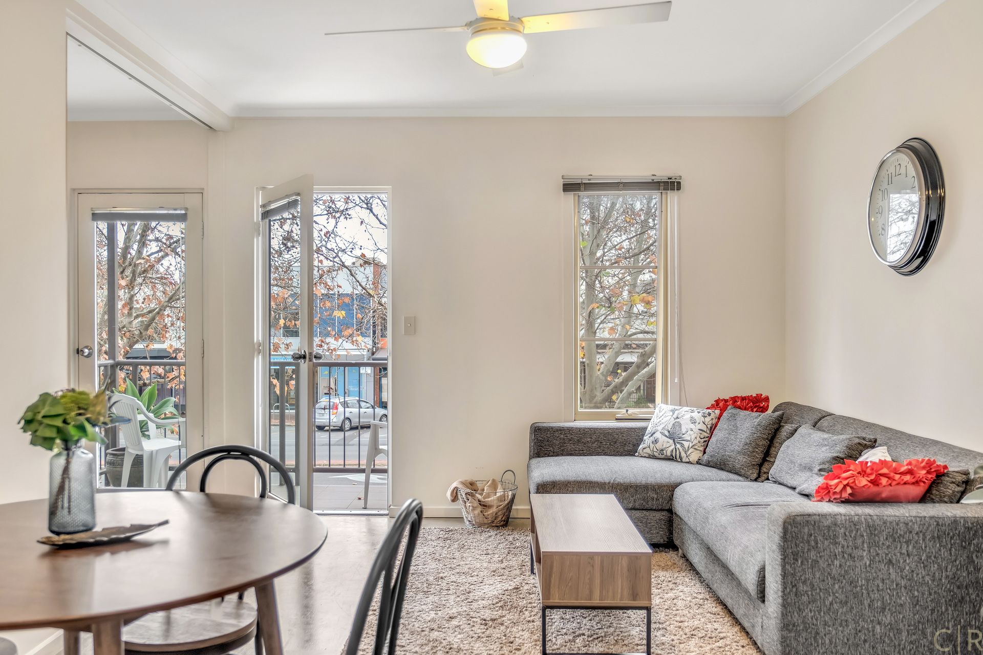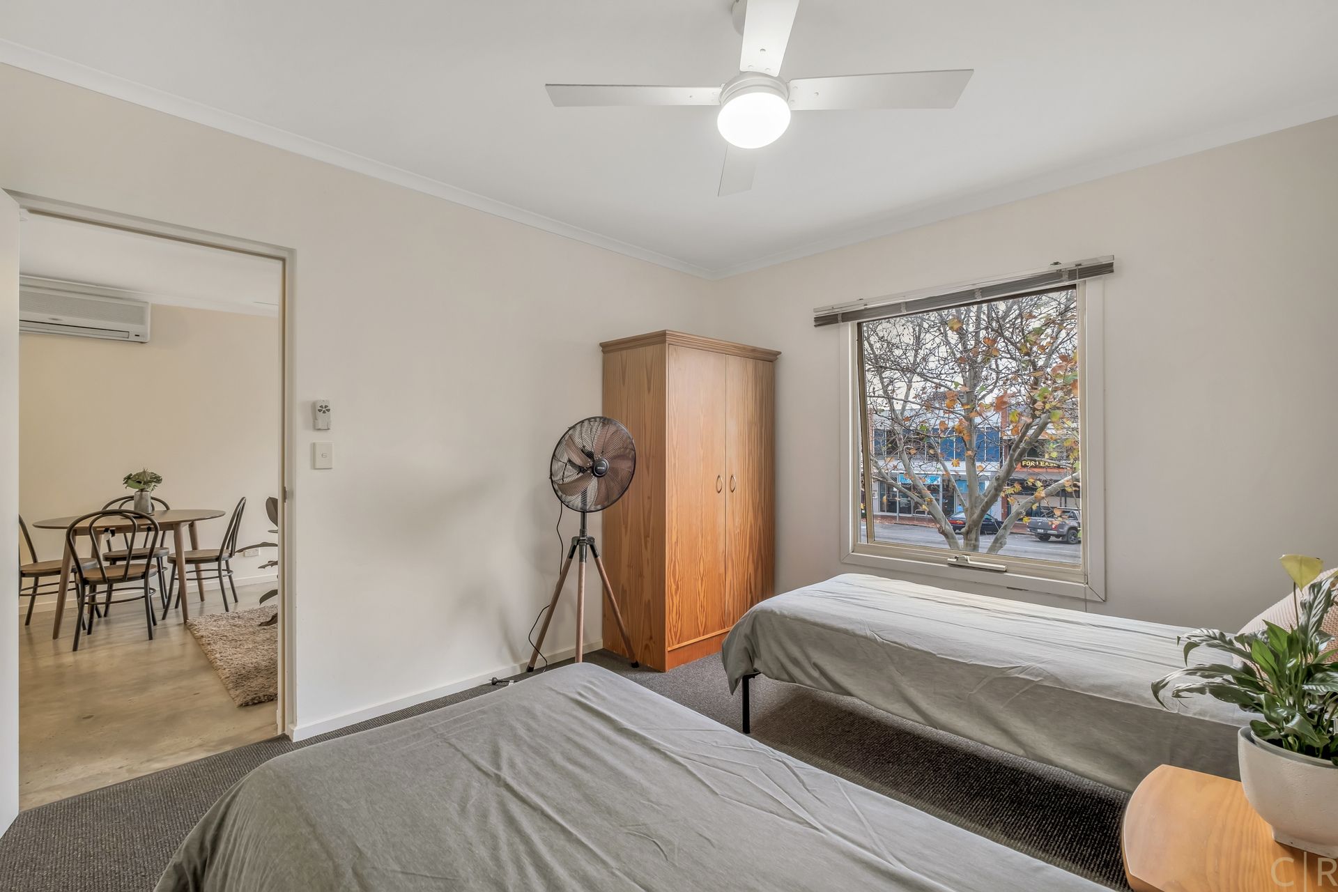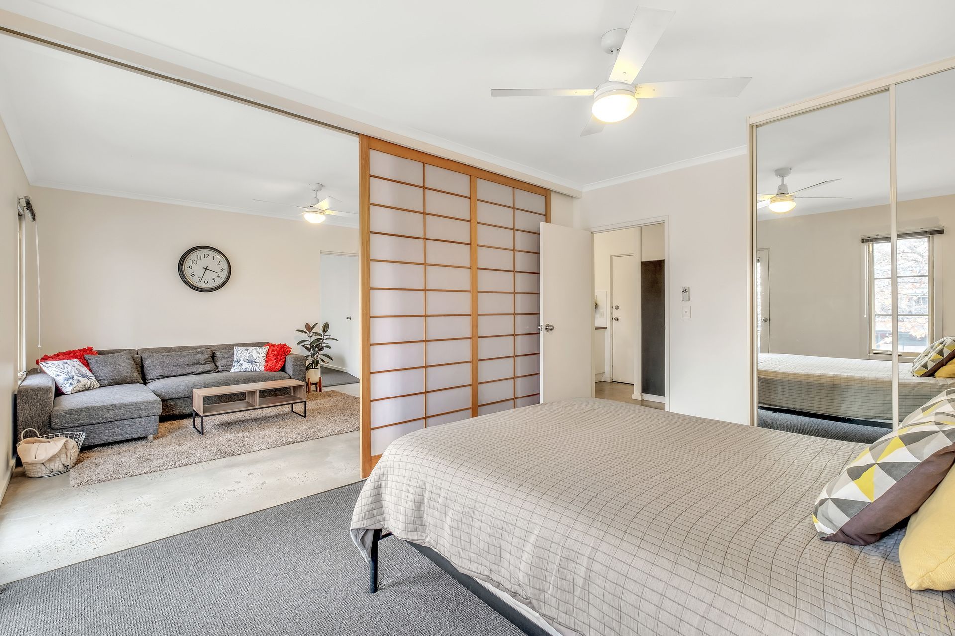 * Spacious open plan living with polished concrete flooring & ceiling fan