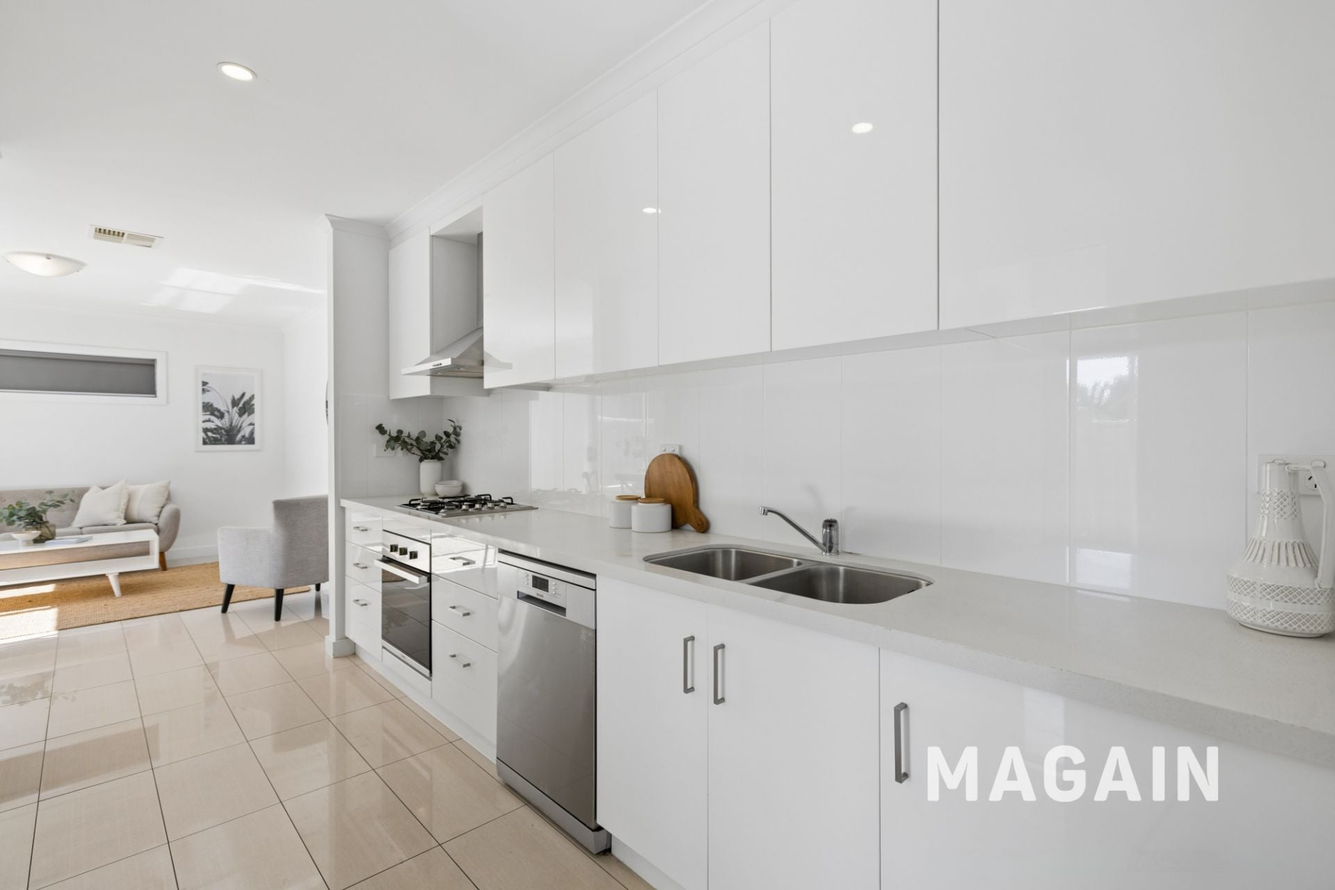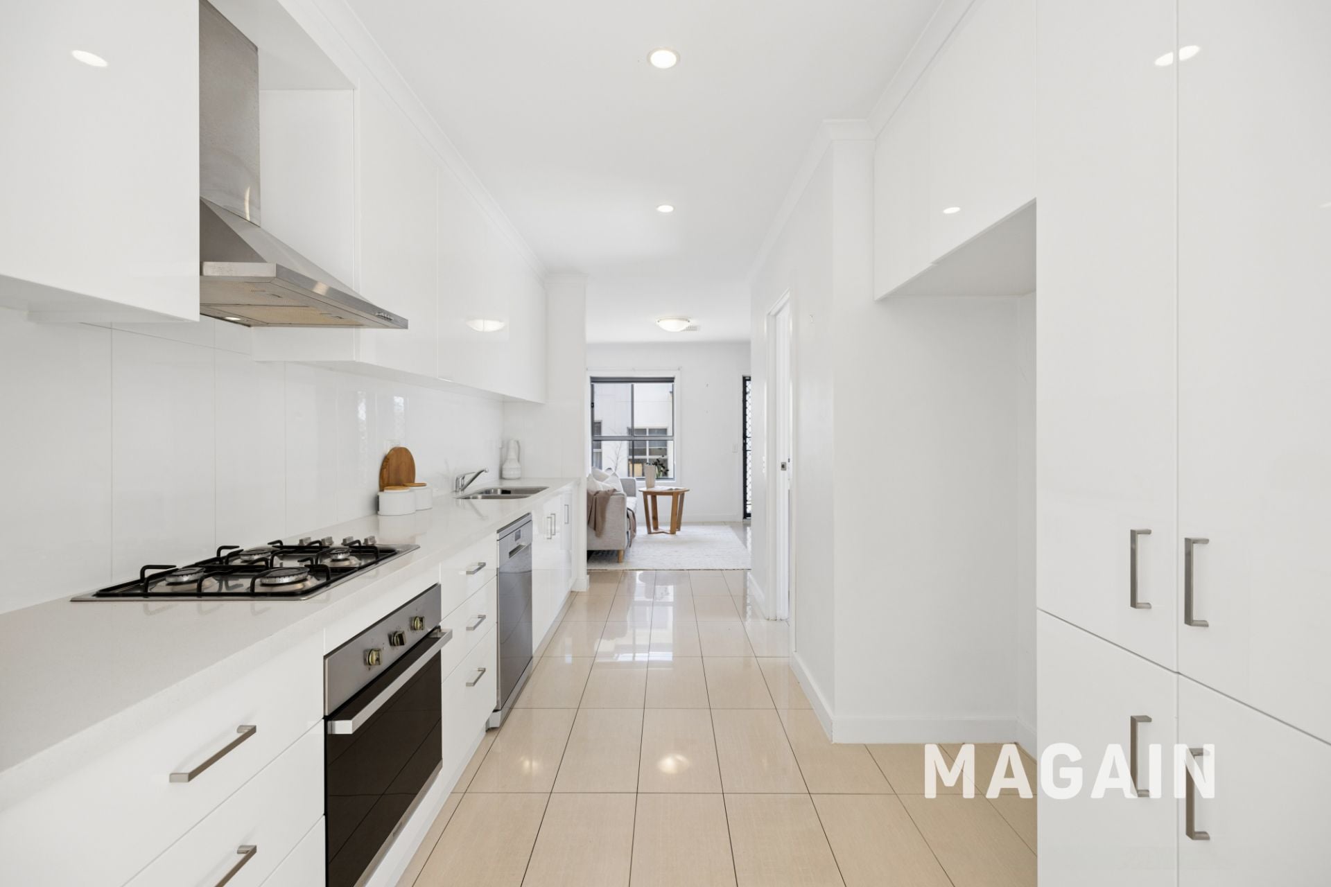 All three bedrooms are located together upstairs, serviced by a well-appointed family bathroom. Downstairs, hard floors flow through the living and dining spaces, leading to a modern galley-style kitchen complete with dishwasher and excellent storage. A second toilet adds everyday convenience.