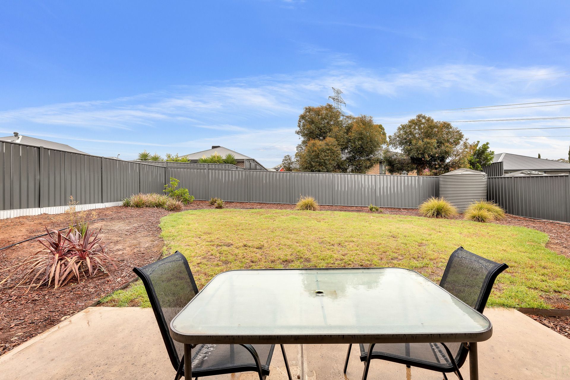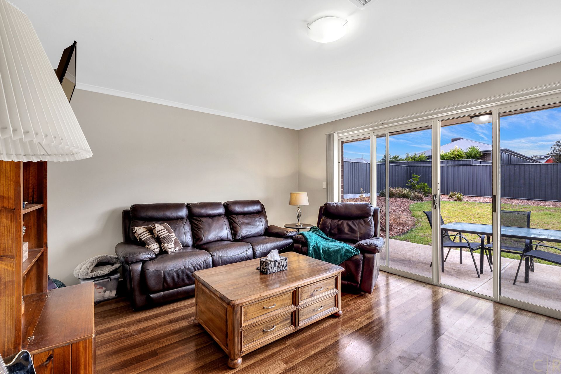 * Out through the glass sliding door you find an easy care back garden.