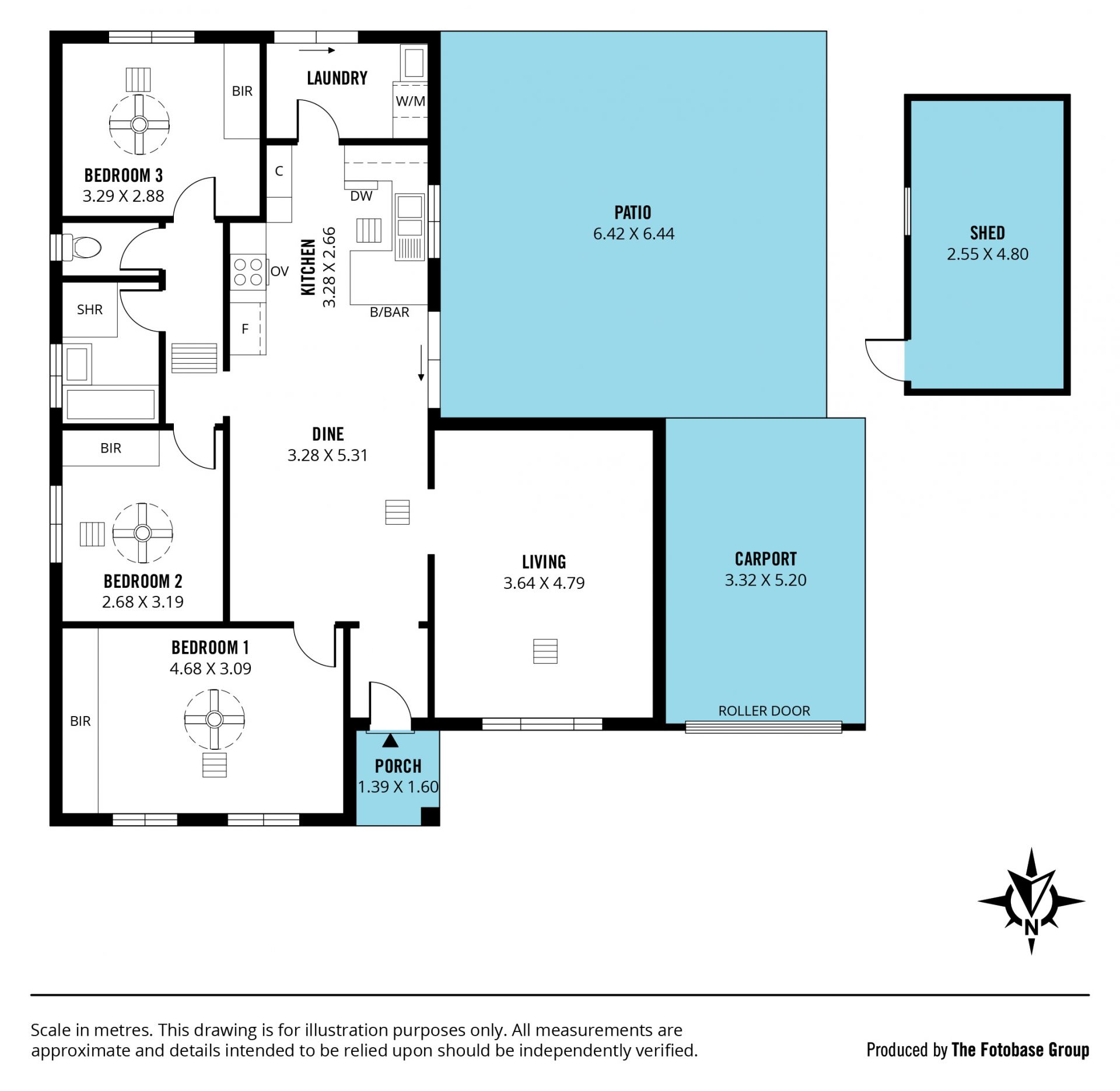 The master bedroom, positioned at the front of the home, is beautifully presented, while bedrooms two and three are tucked away off the main living area for added privacy. Each bedroom features built-in robes and ceiling fans, with easy access to the sophisticated main bathroom, where crisp white tiling, a spacious layout, and separate bath, shower, vanity, and toilet create a stylish and functional retreat.