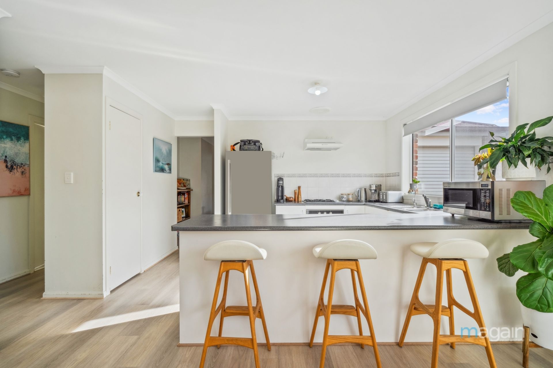 The beautifully presented kitchen features timeless-toned cabinetry and modern appliances, including a gas cooktop. A well-placed breakfast bar creates the perfect gathering space for entertaining family and friends, while also providing ample storage and preparation space.