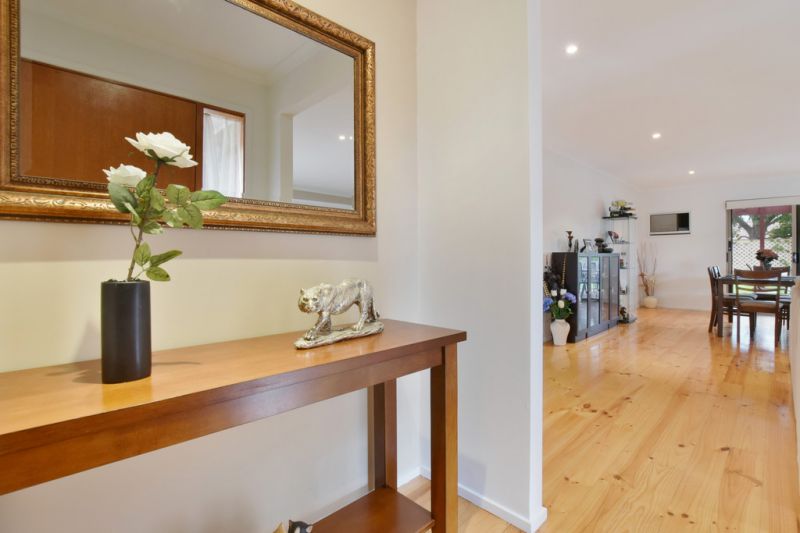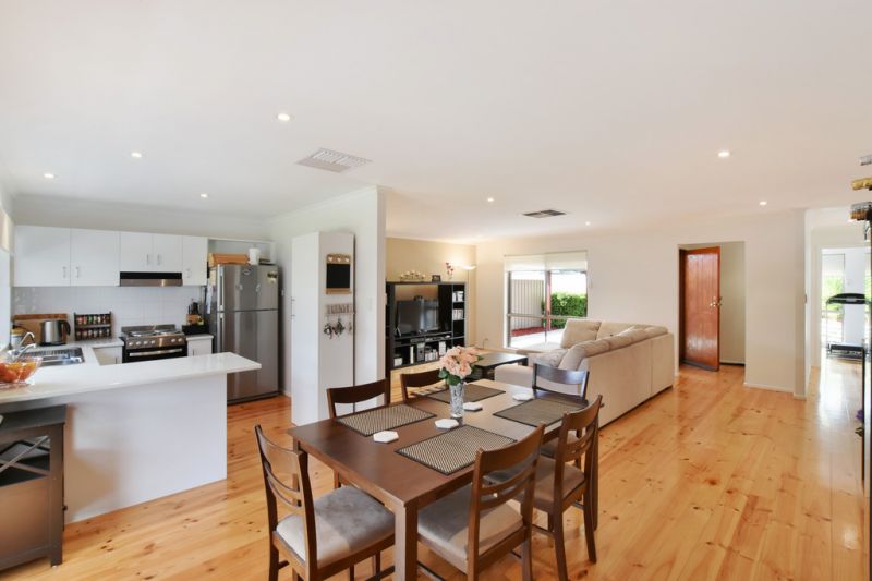Built in 1995, this home boasts 3 great sized bedrooms, the master with a walk in wardrobe and ensuite access to the bathroom. The bathroom has been updated with a new vanity and frameless shower. The huge living area flows seamlessly through to the dining and updated kitchen, with new benchtops and appliances. The beautifully polished timber floors have been well looked after, and the house has received a fresh coat of paint. For year round comfort, ducted evaporative air conditioning has been added for your convenience. Roller shutters on the front of the home have also been added for extra privacy and economy.