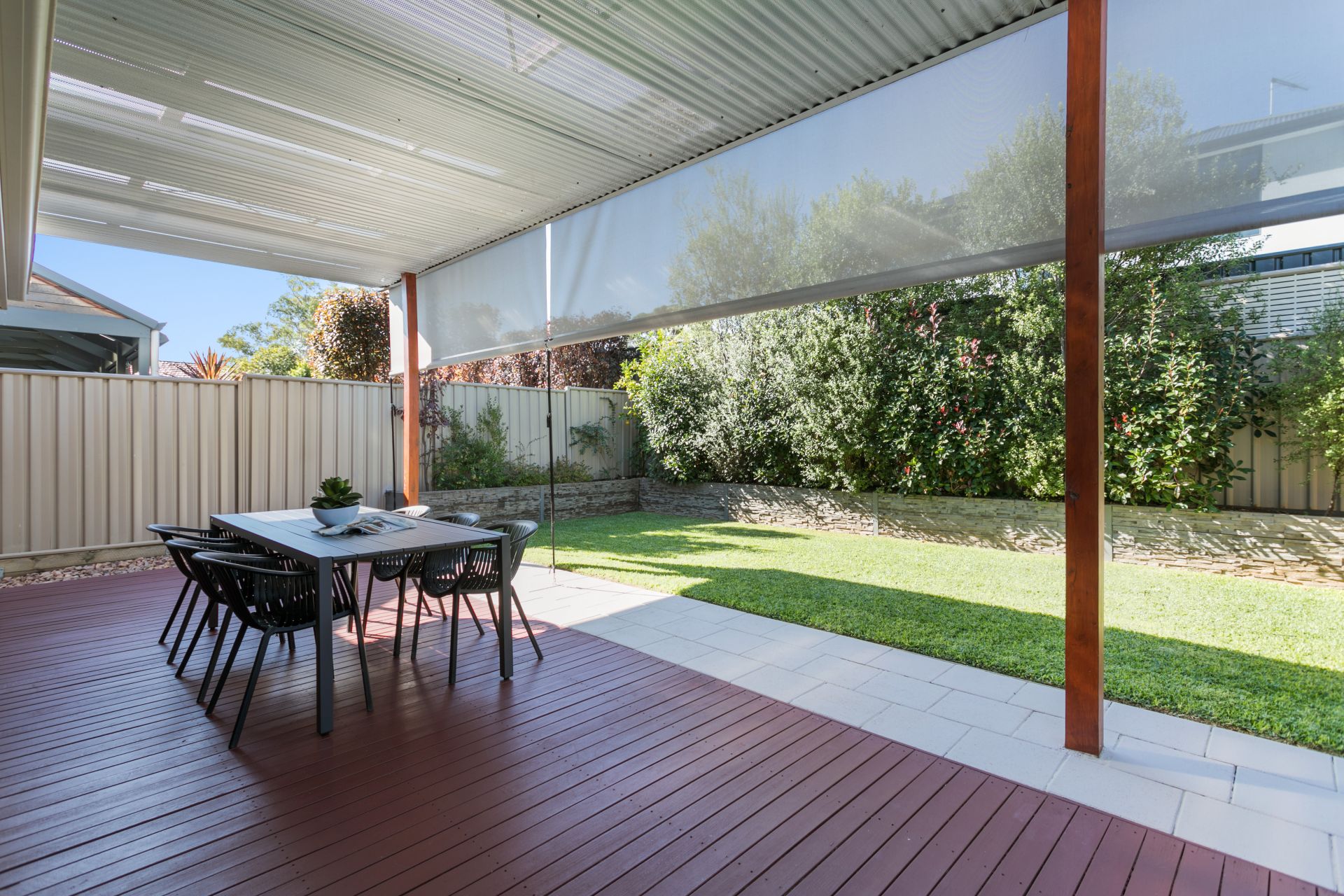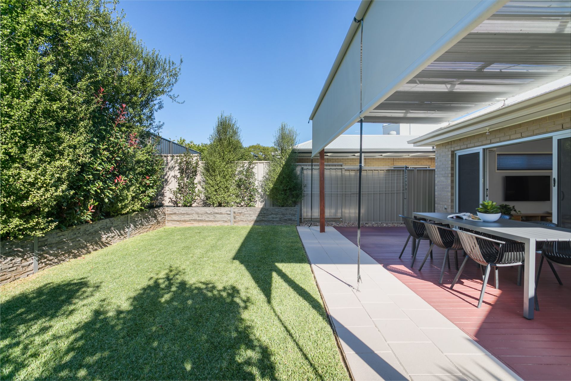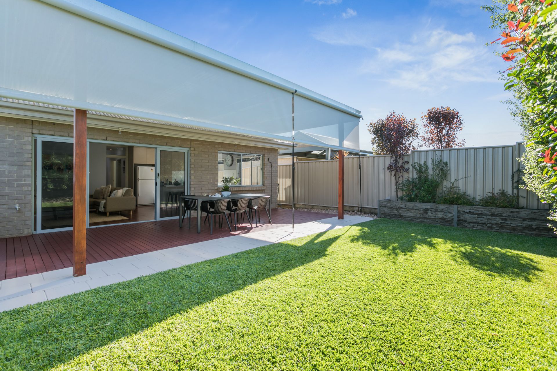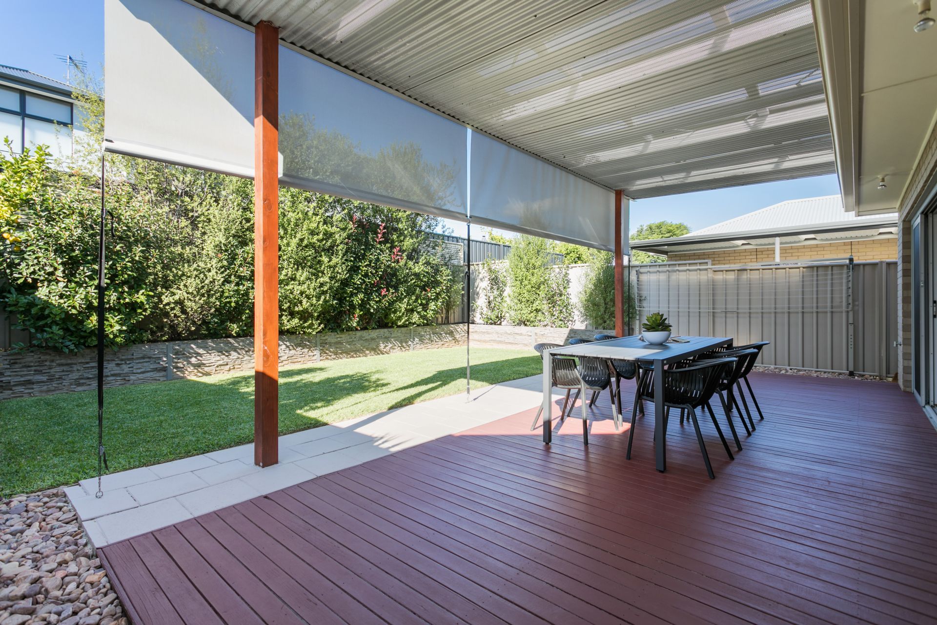 Entertain your family and friends year round in this perfect outdoor setting. Flowing seamlessly from the living space, through the double sliding door, a large entertaining area is the perfect place to host dinner parties for everyone. The pergola has draw down blinds to make entertaining year round a breeze. Coming off the pergola is a perfectly manicured lawn, plenty big enough for the kids to run around and play. A well landscaped garden surrounds the lawn, easy to maintain yet beautifully presented.