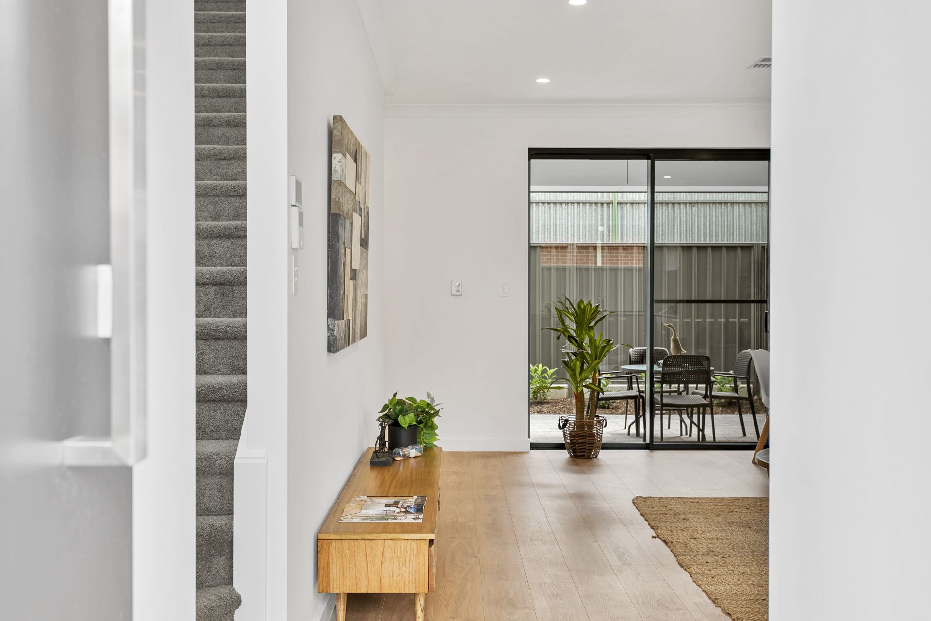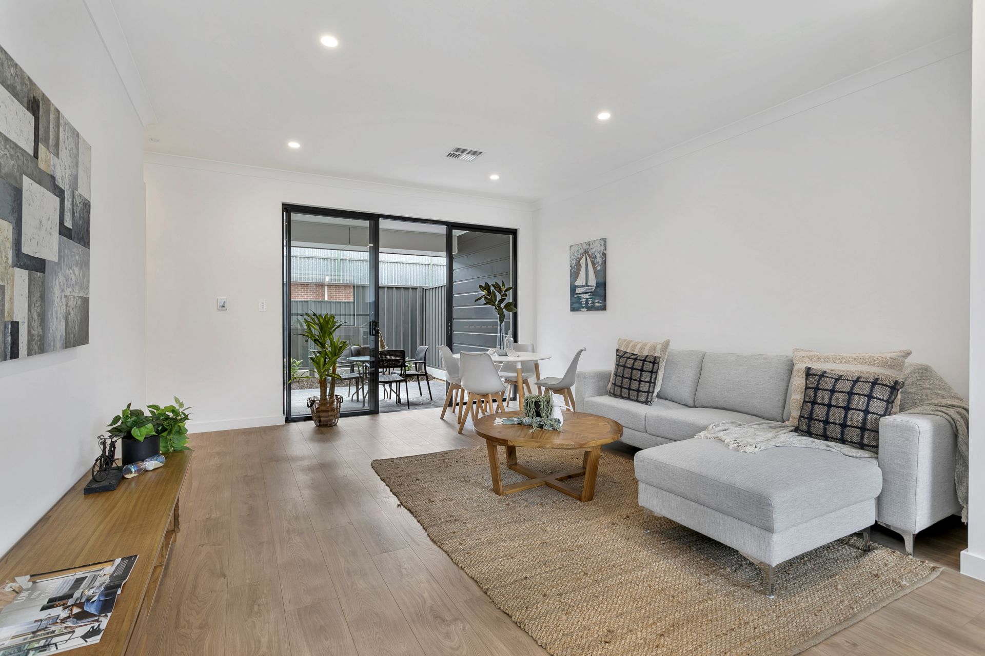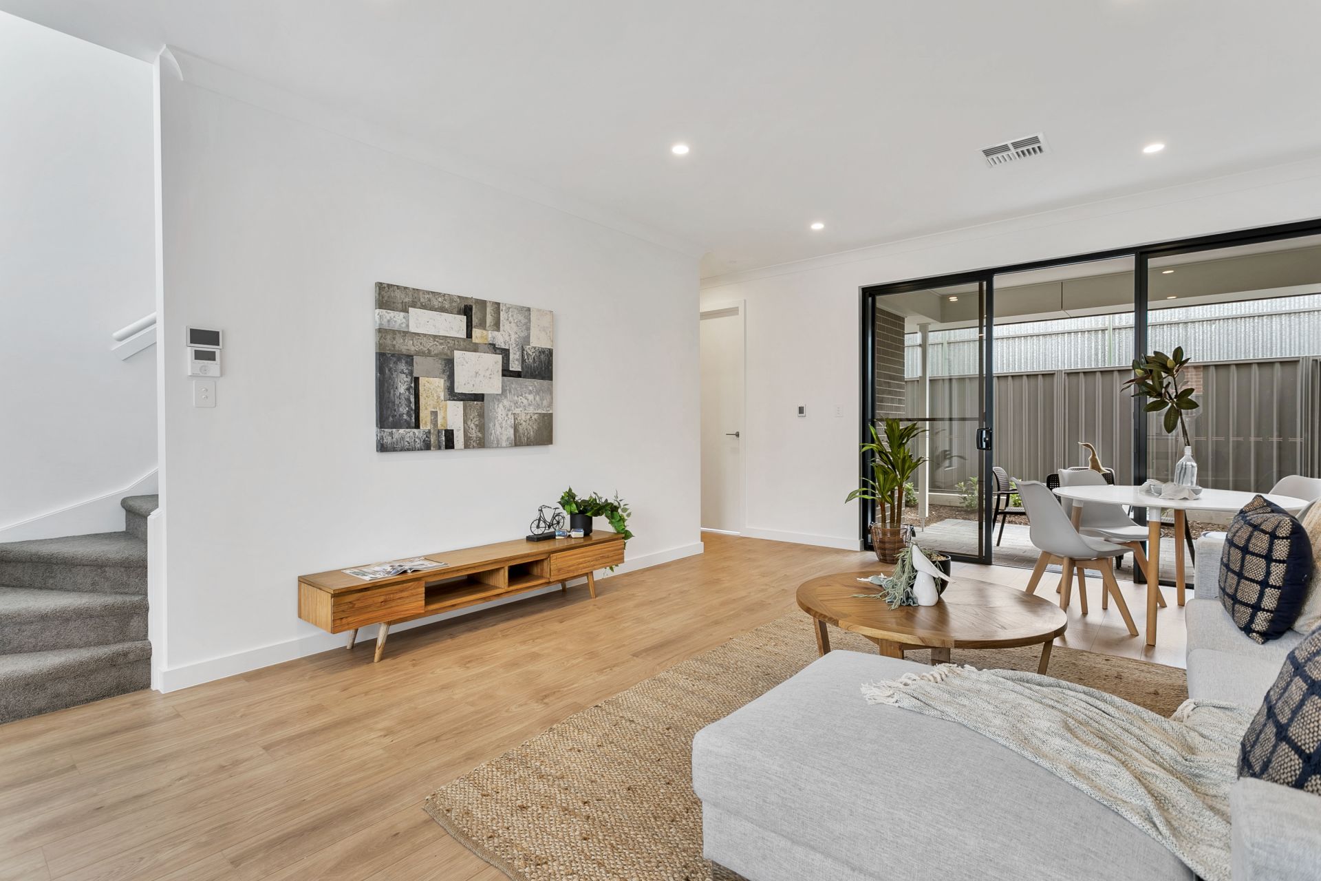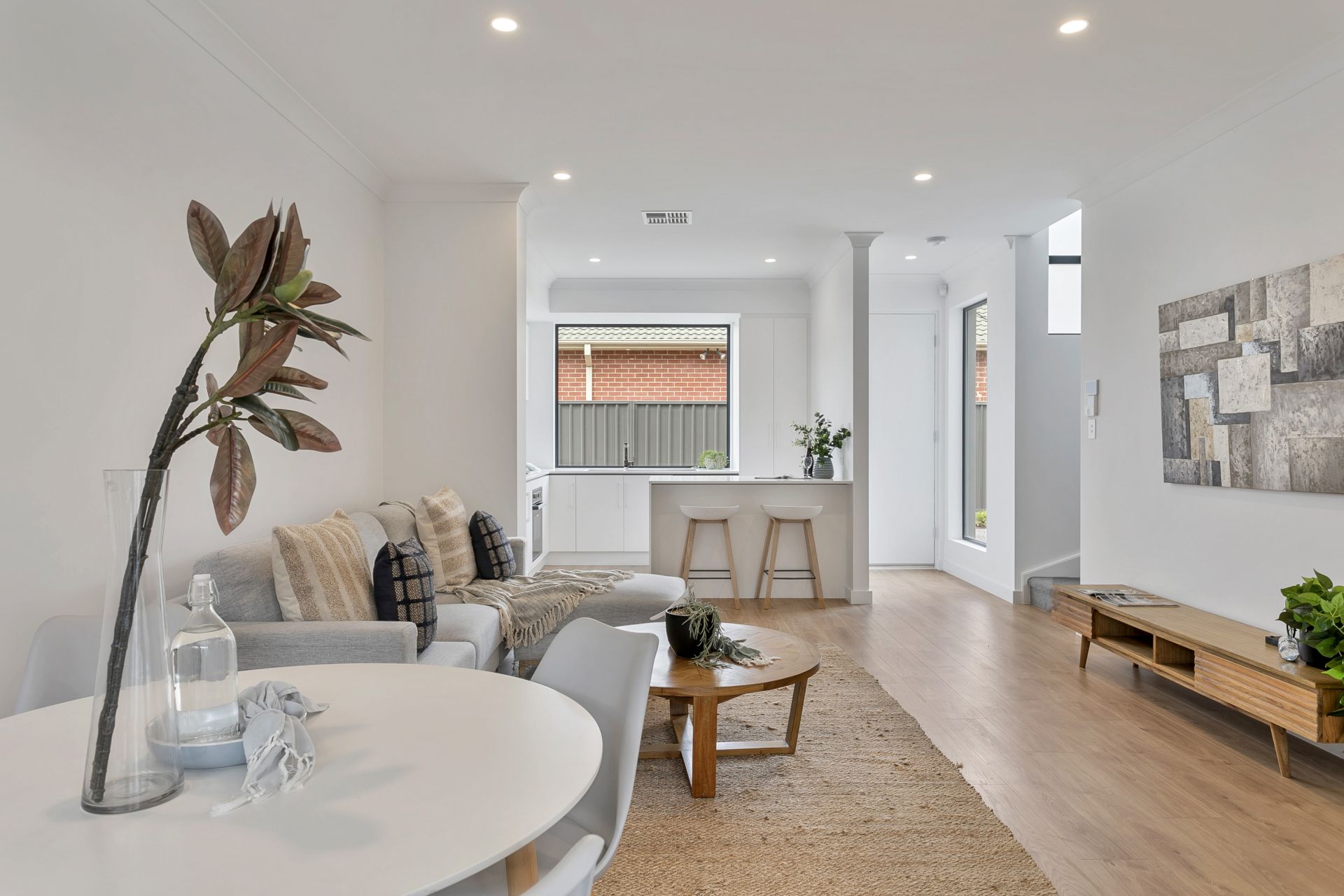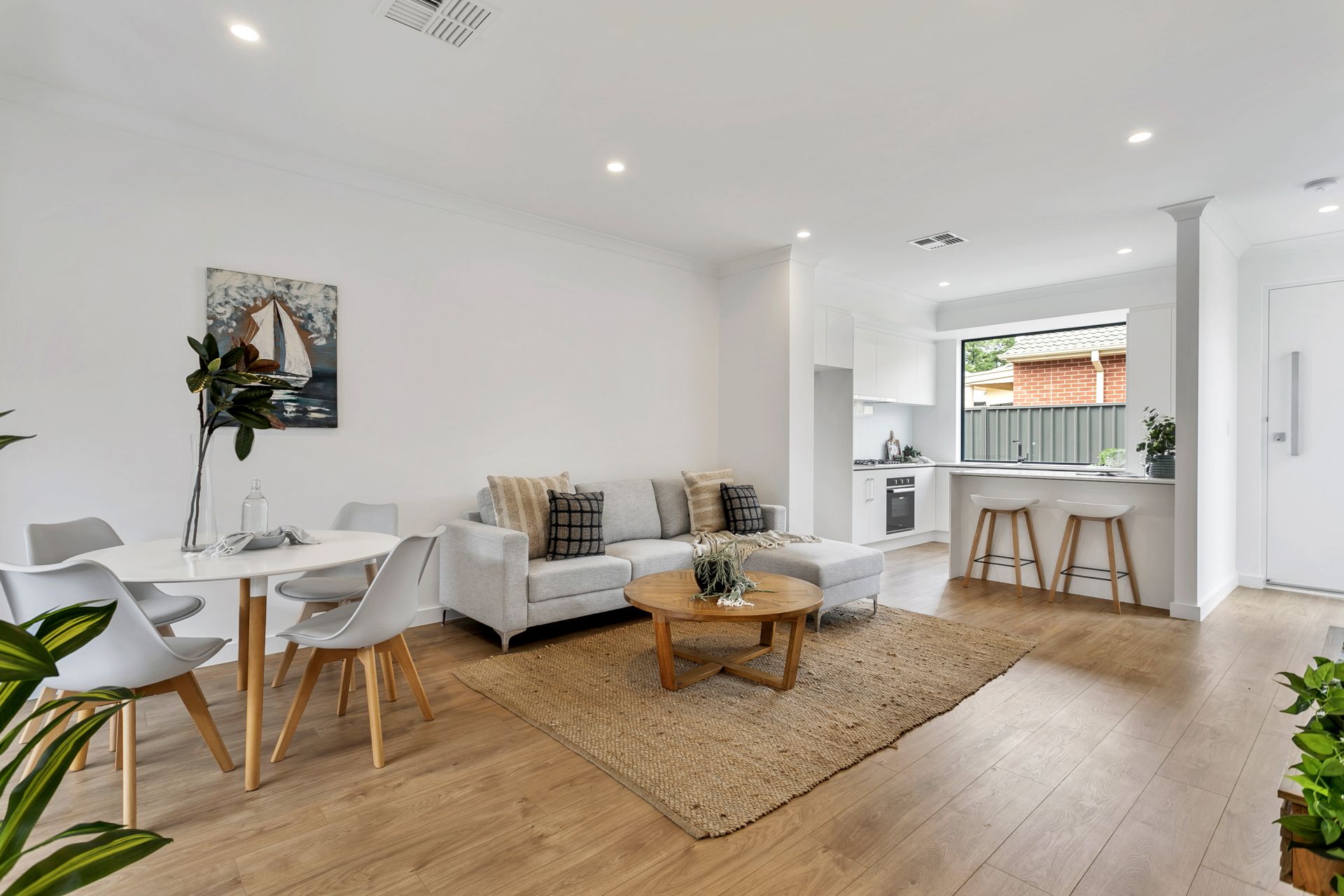 As you approach the property you will notice the quality of the build, from the aggregated concrete driveway to the security system and panel lift door to the double garage. Entering the home you are greeted with a beautiful timber flooring that leads to the living and dining area. The kitchen flows seamlessly off the living area and is well equipped with a great amount of natural light, stone benchtops, stainless steel appliances including gas cooktop and dishwasher and plenty of cupboard space.