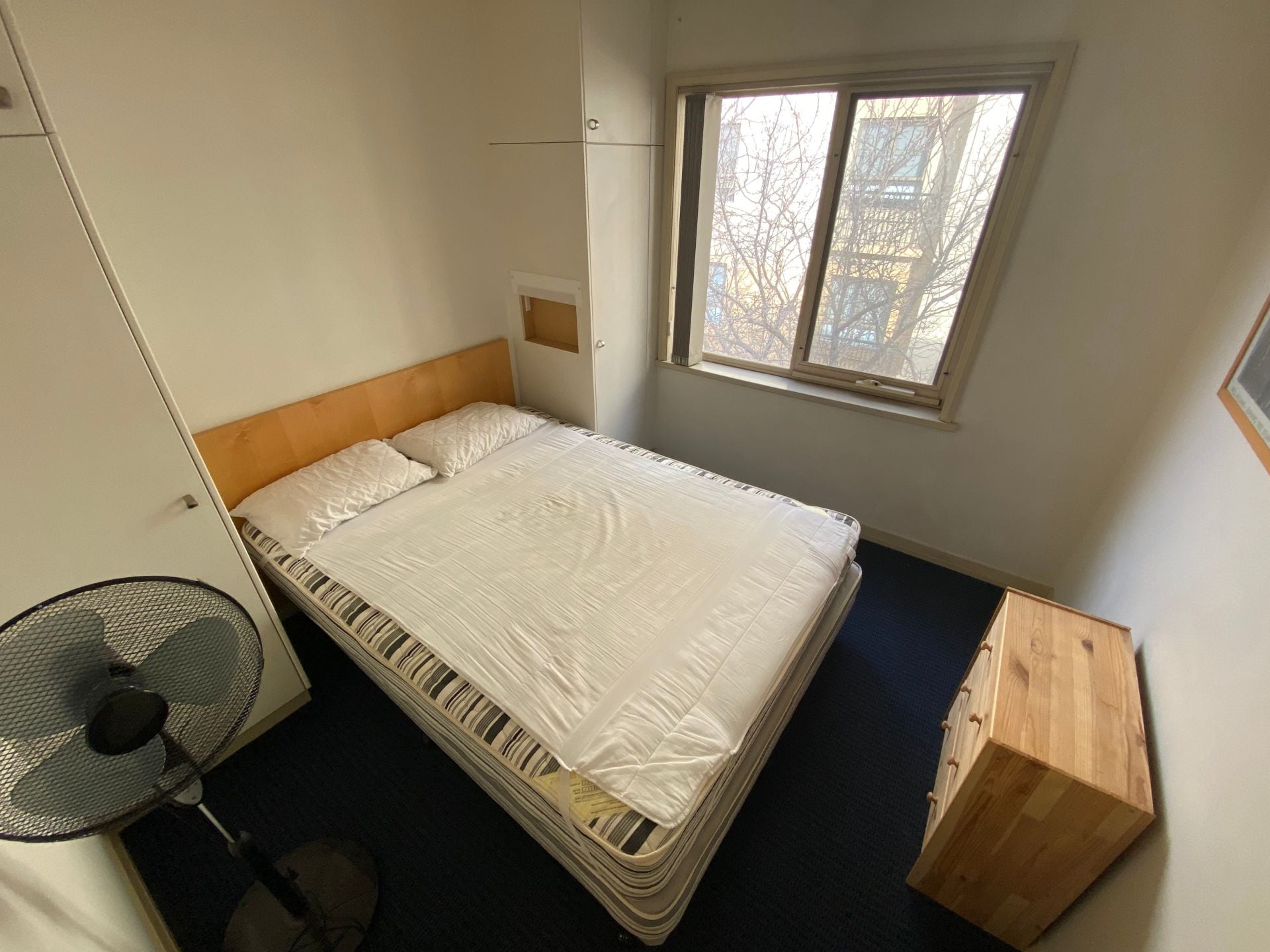 > Second bedroom with double bed and built in cupboards