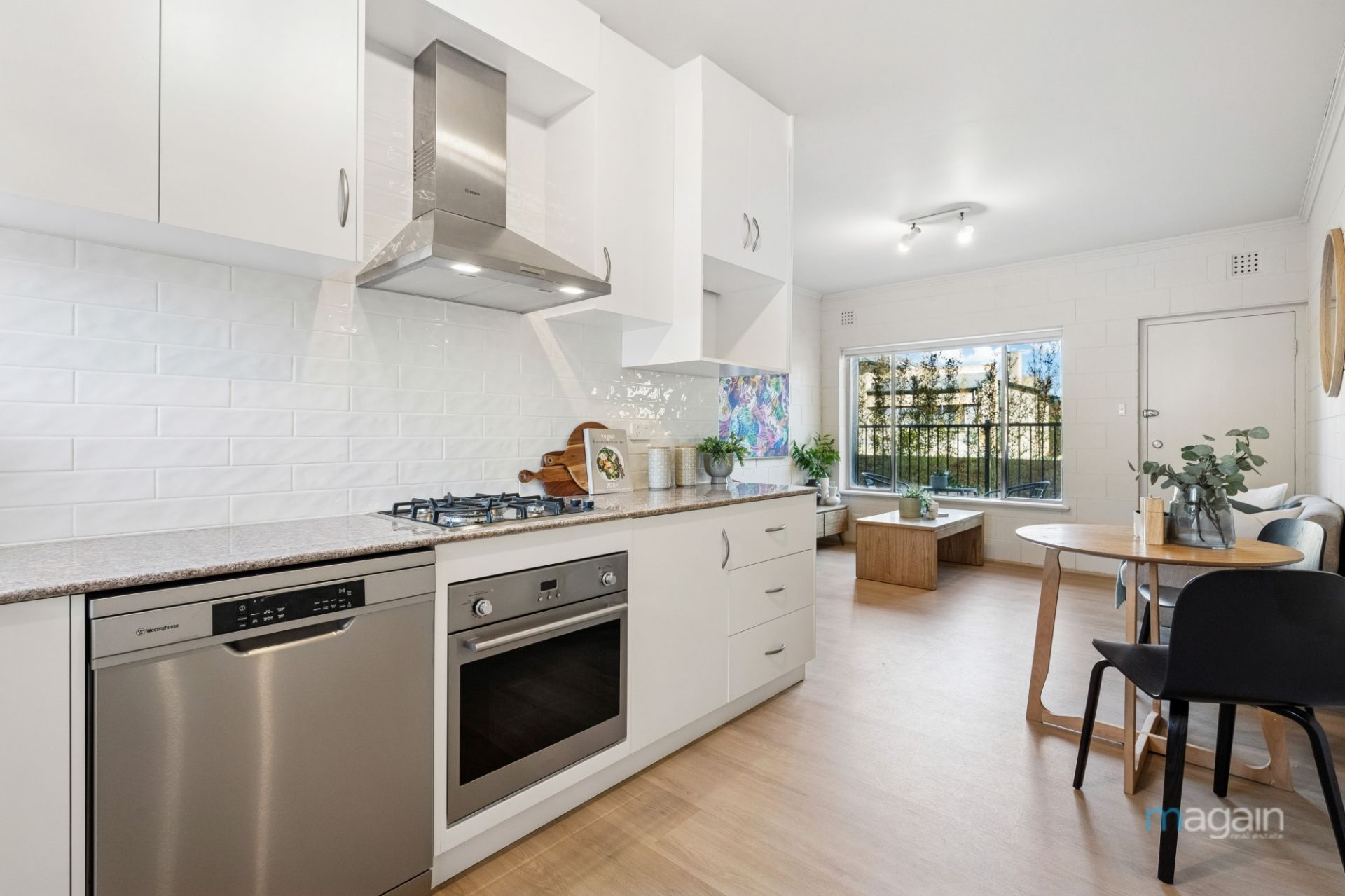 Freshly updated with a brand-new premium European kitchen, new flooring throughout, and a full repaint, the home is ready to move straight into or lease out. The spacious living and dining area is filled with natural light, while the two generous bedrooms offer flexibility for a guest room or home office. The bathroom, while original, is neat and functional and includes integrated laundry facilities.