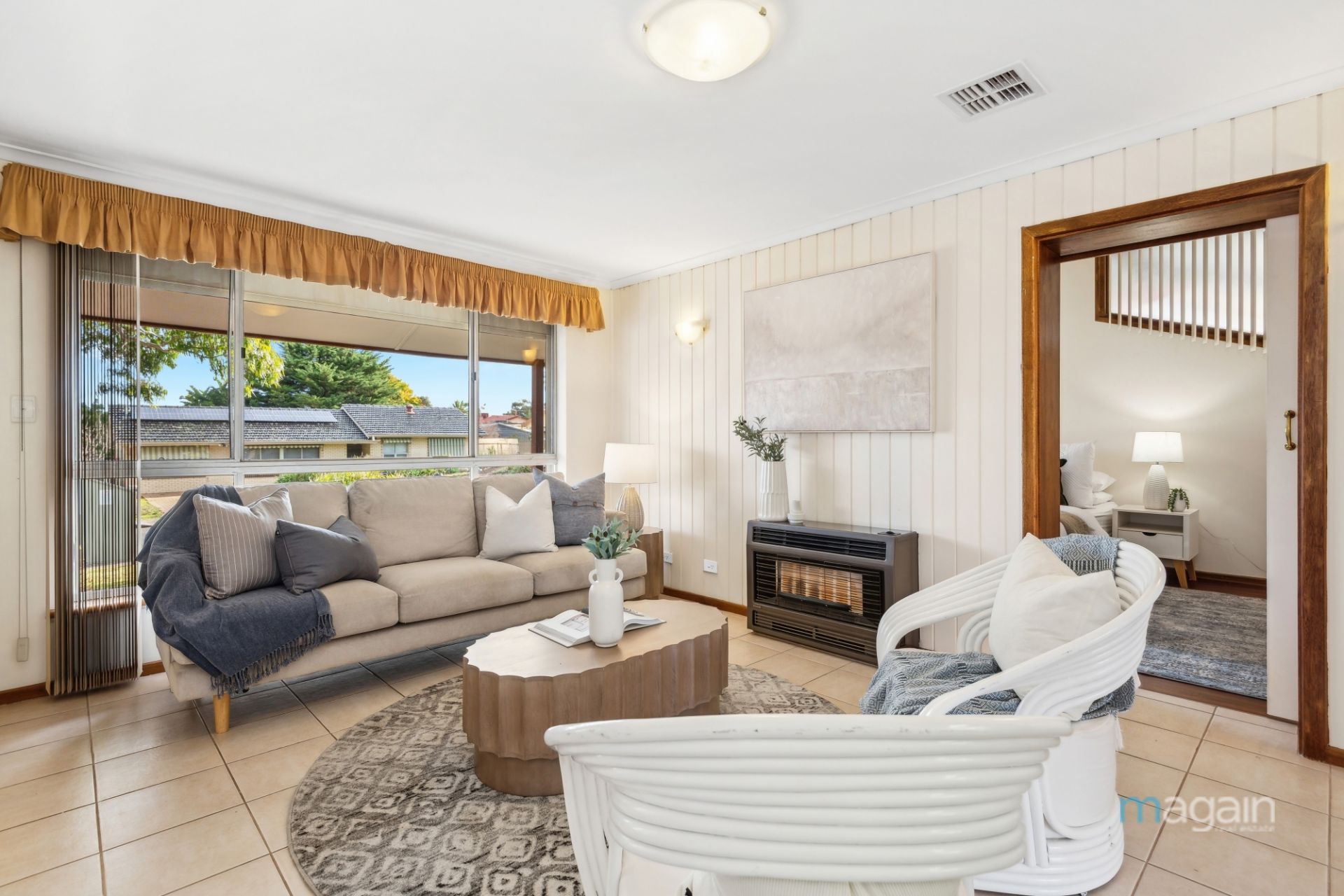 Storage solutions are plentiful throughout the home, with built-in robes, and a linen cupboard, ensuring everything has its place.