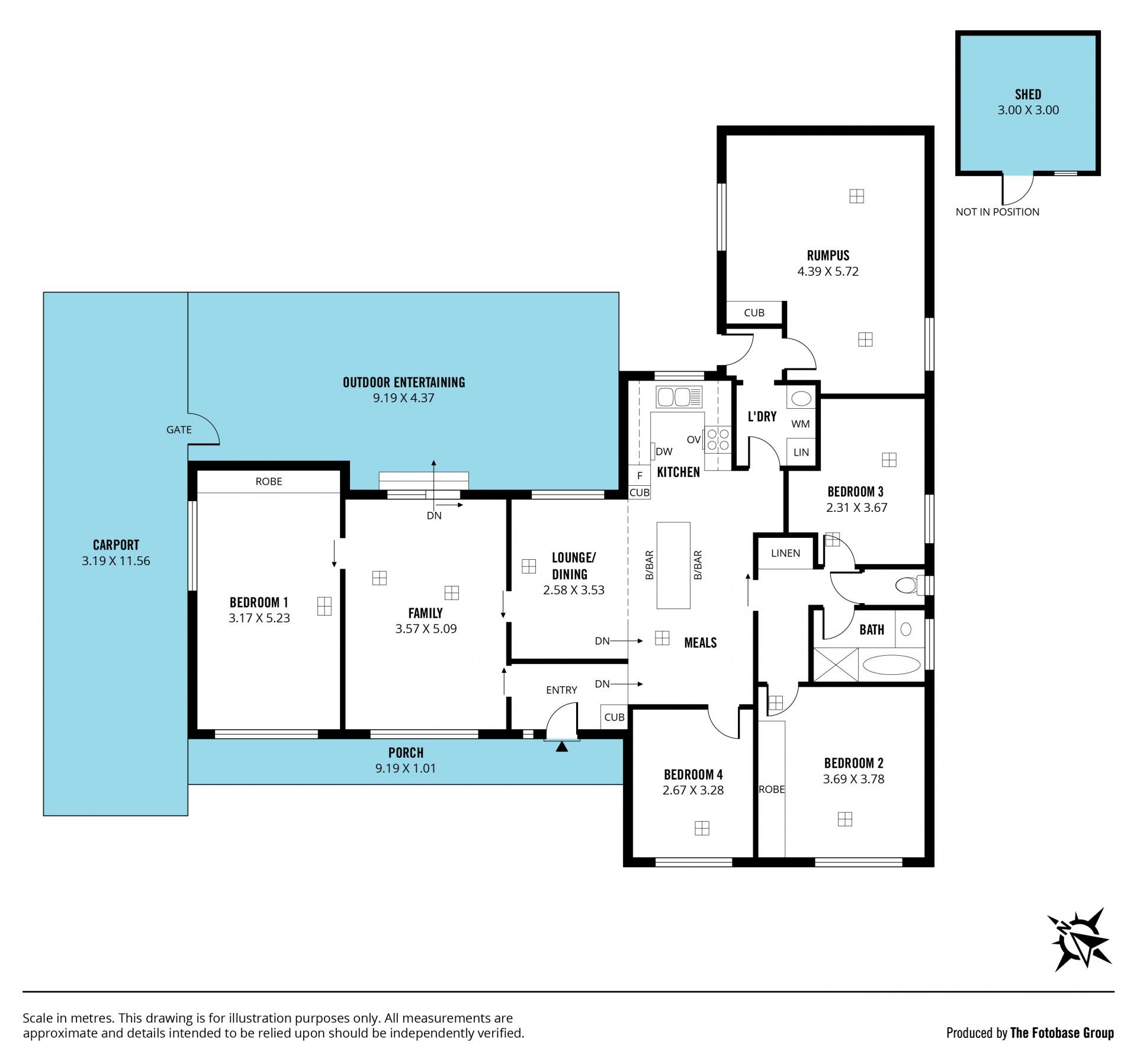 Bedrooms two, three, and four are thoughtfully positioned to the right of the entrance, offering easy access to the main bathroom complete with a separate toilet. An added bonus is the spacious rear rumpus room, which could also serve as an extra bedroom, providing flexible living options.