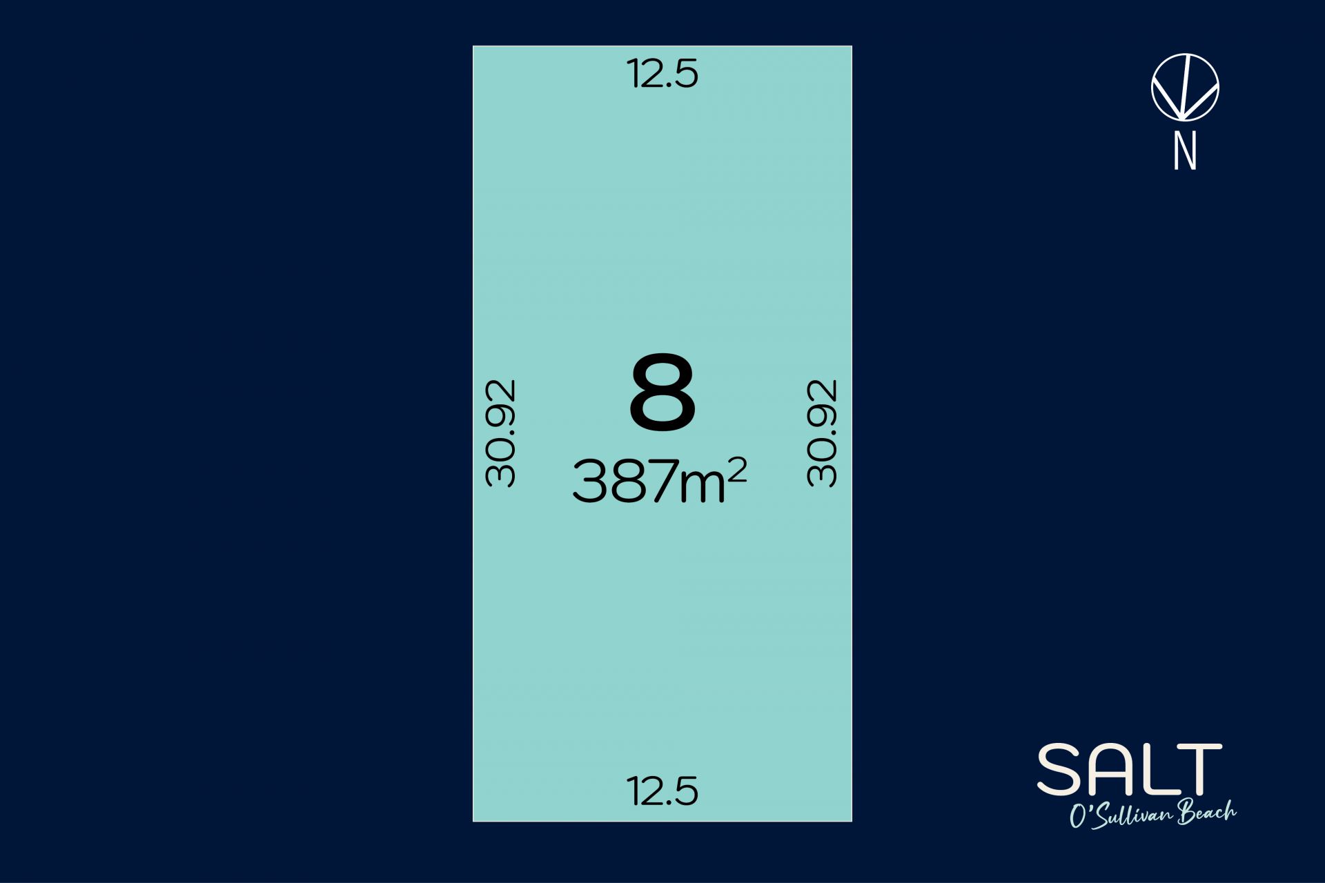 Don't miss this exclusive opportunity to secure Lot 8, a 387sqm block in the highly sought-after Salt O'Sullivan Beach community. With a 12.5m frontage and 30.9m depth, this lot provides the perfect space to design a stunning coastal home with modern living in mind.