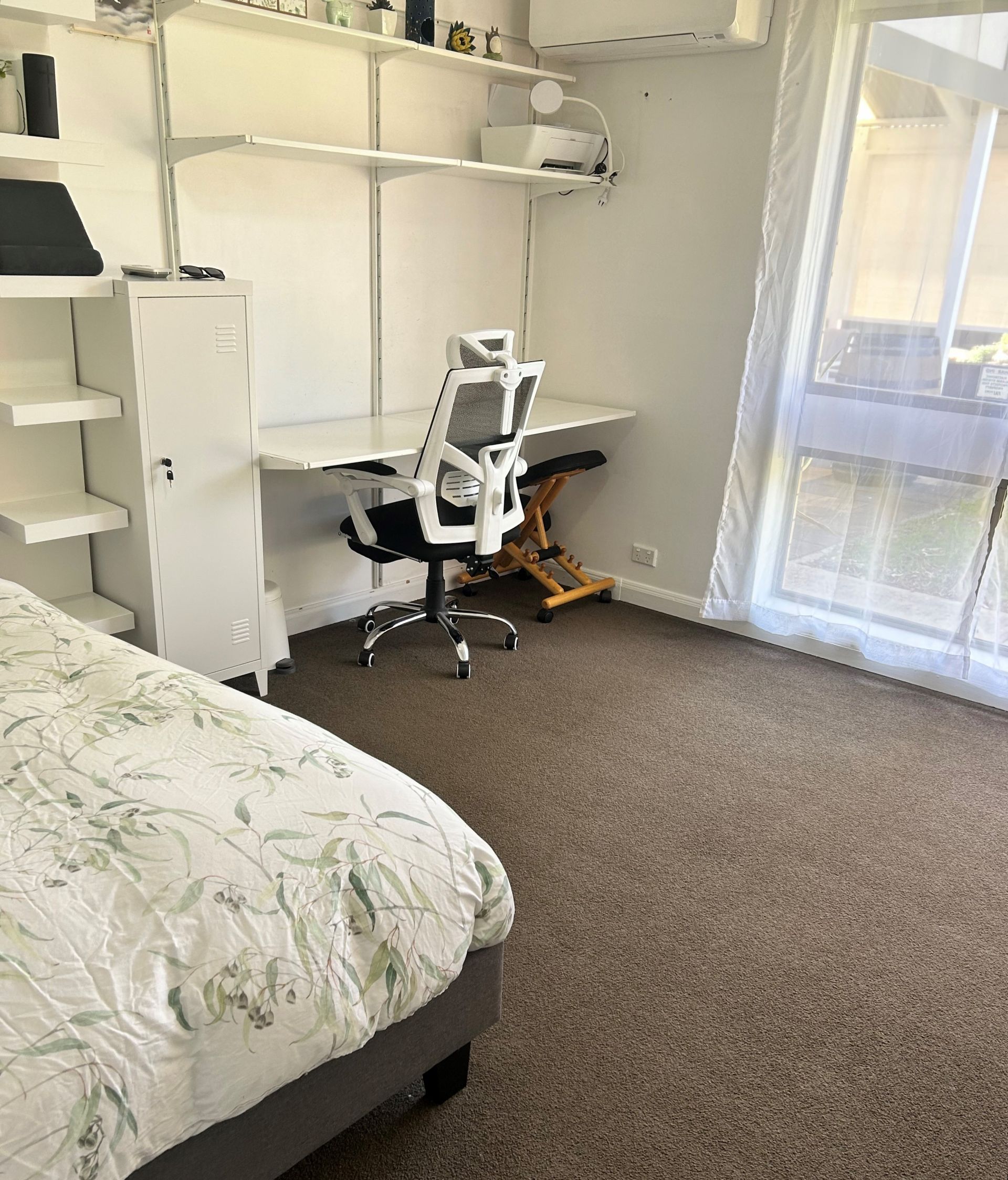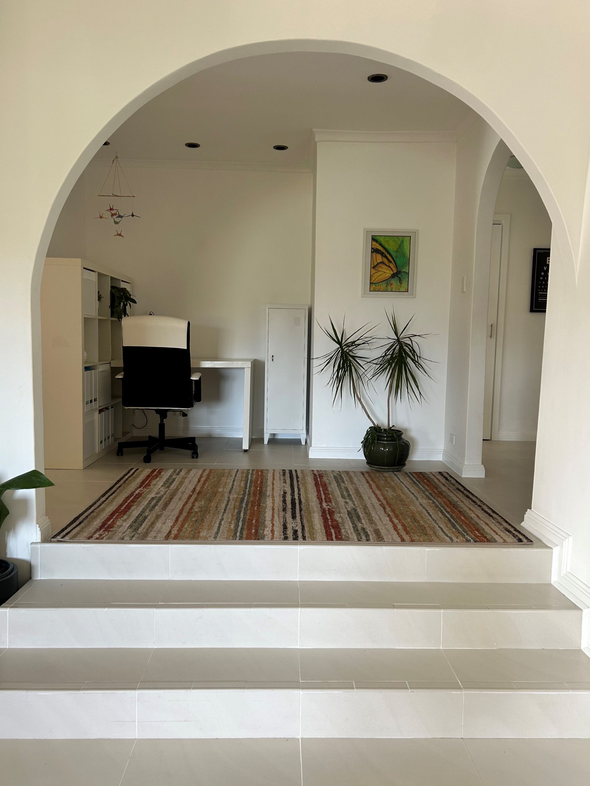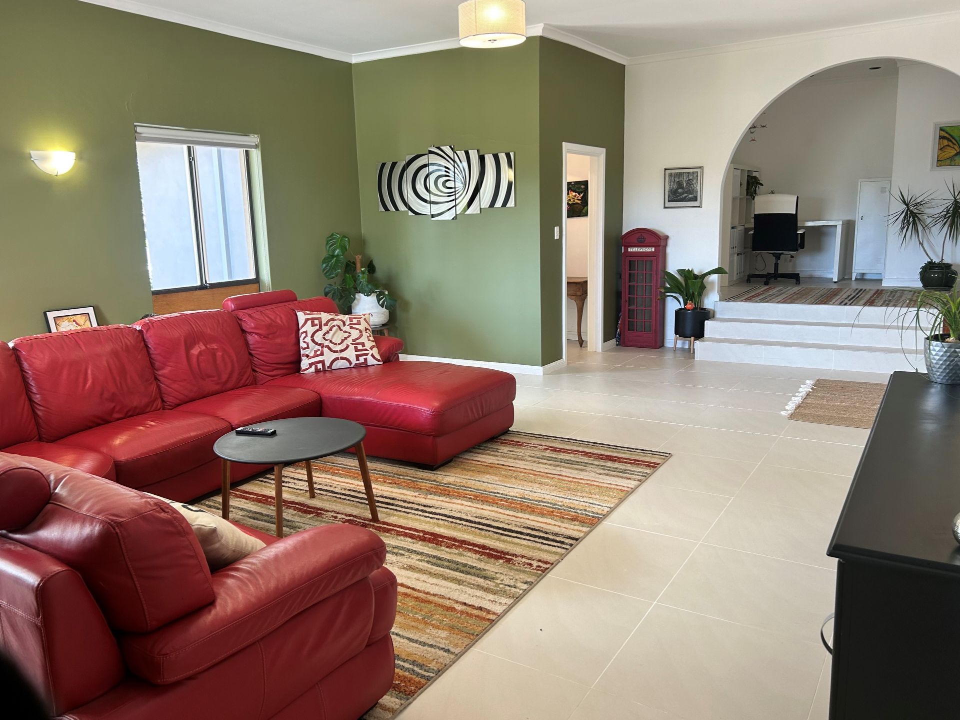 Upon entry, a neat foyer welcomes you, leading past the expansive formal lounge, which connects to a small study nook on a split level. This space features windows that frame views of the charming front garden.
