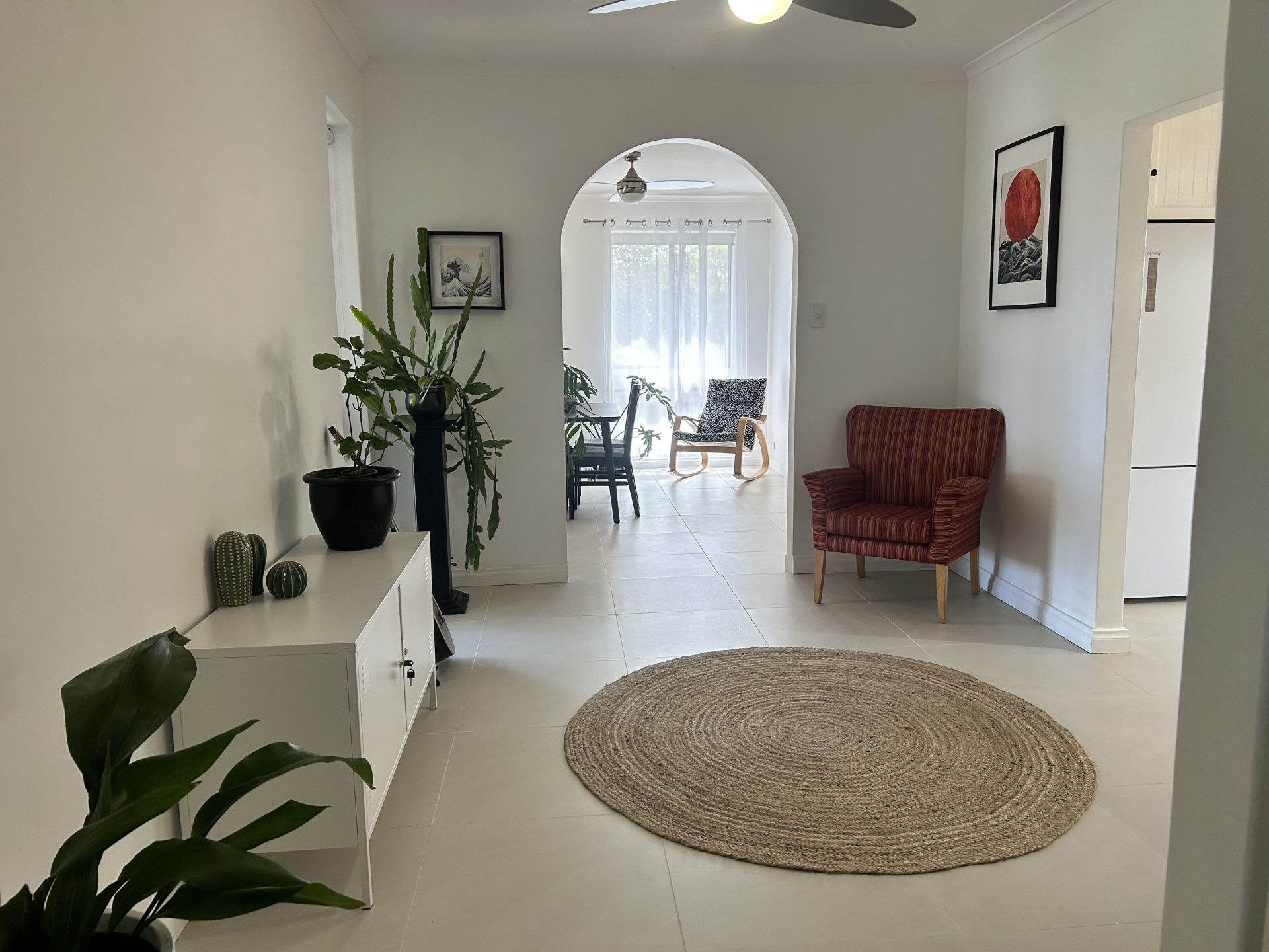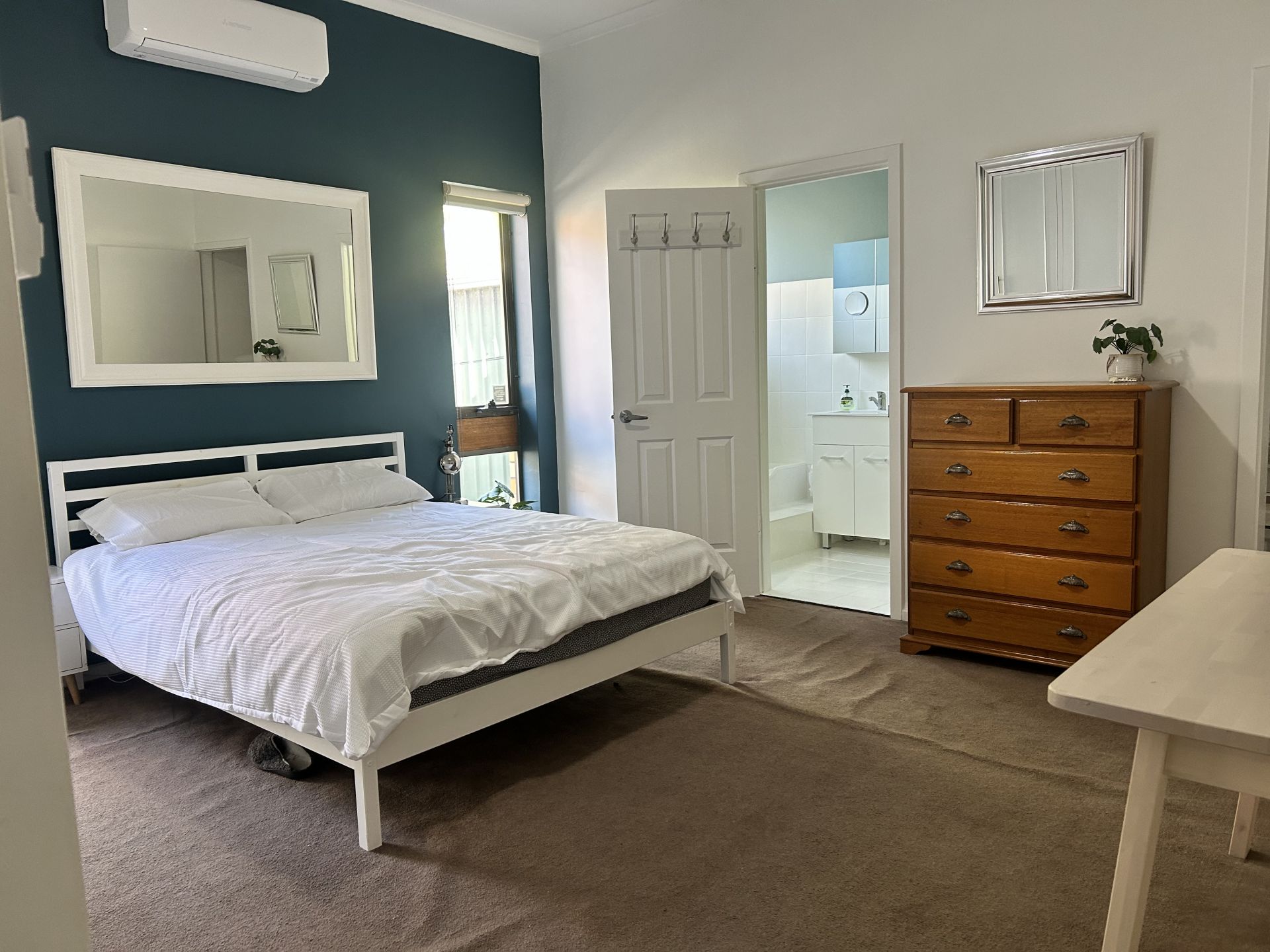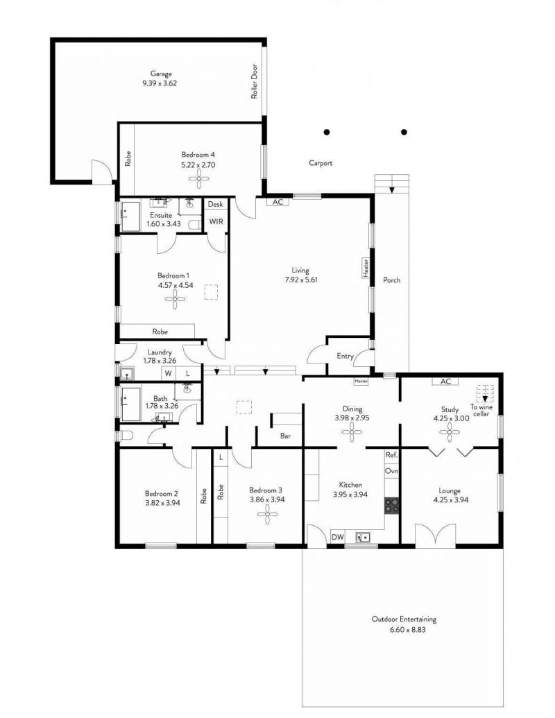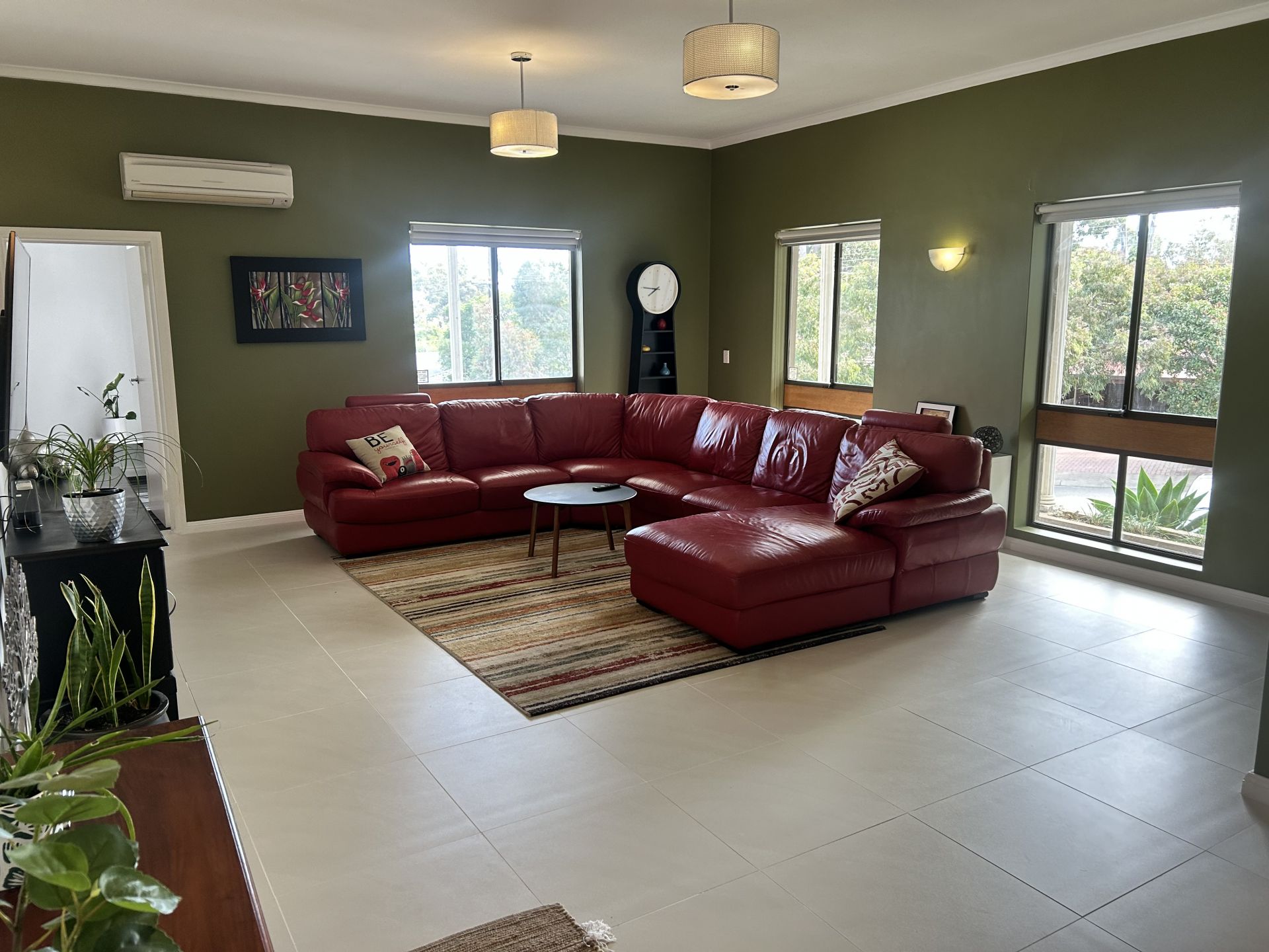 The master bedroom, located just off the formal lounge, includes both a walk-in robe and a built-in robe, as well as an ensuite. Bedrooms two, three, and four feature built-in robes and ceiling fans, with easy access to the neat three-way main bathroom. The renovated laundry, equipped with built-in cupboards, provides additional storage space.