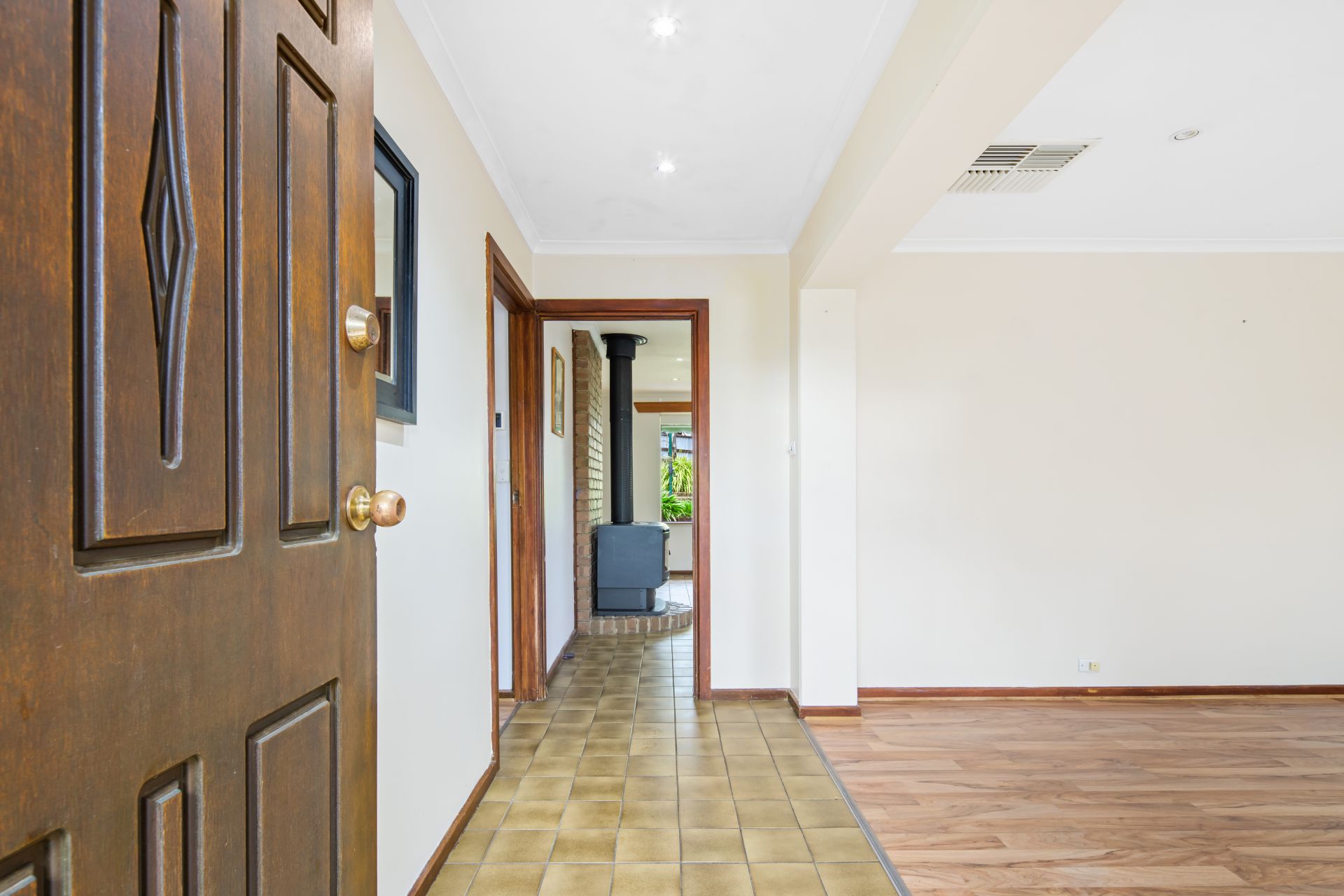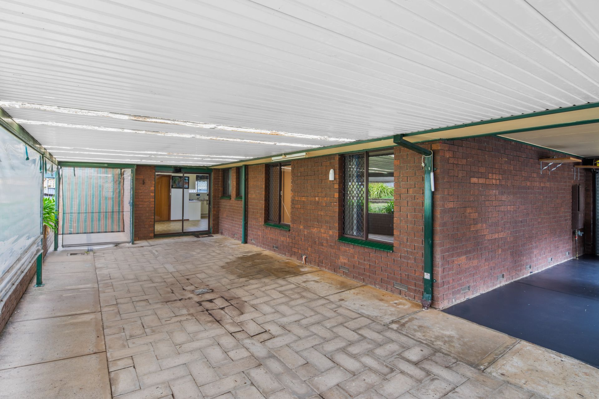 At the rear is a large undercover entertaining area with cafe blinds plus a lawned area with 2 garden sheds (one powered). Car parking is well catered for with a double carport plus a single carport with roll a door and room for two vehicles. Very handy location close to The Vines golf course and bus route.