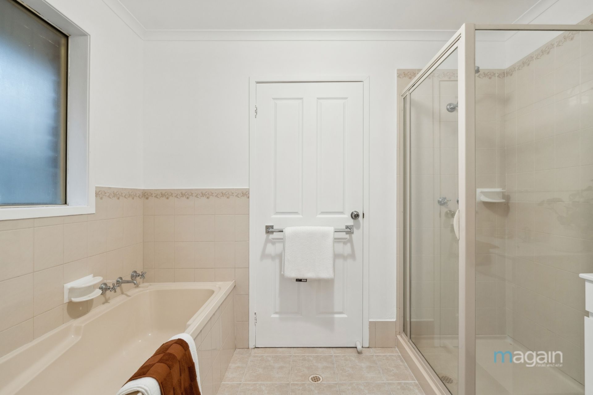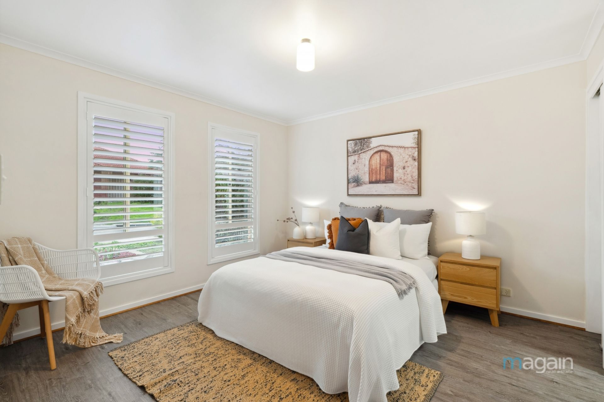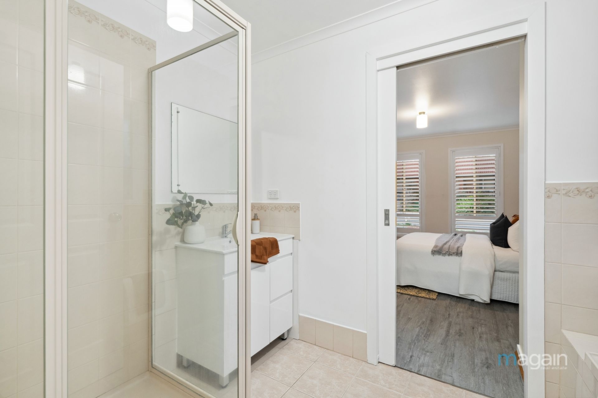Inside, the home features three well-appointed bedrooms, each equipped with built-in robes, providing ample storage space. The main bedroom stands out with its convenient access to the central bathroom, which includes a separate toilet for added privacy and ease.