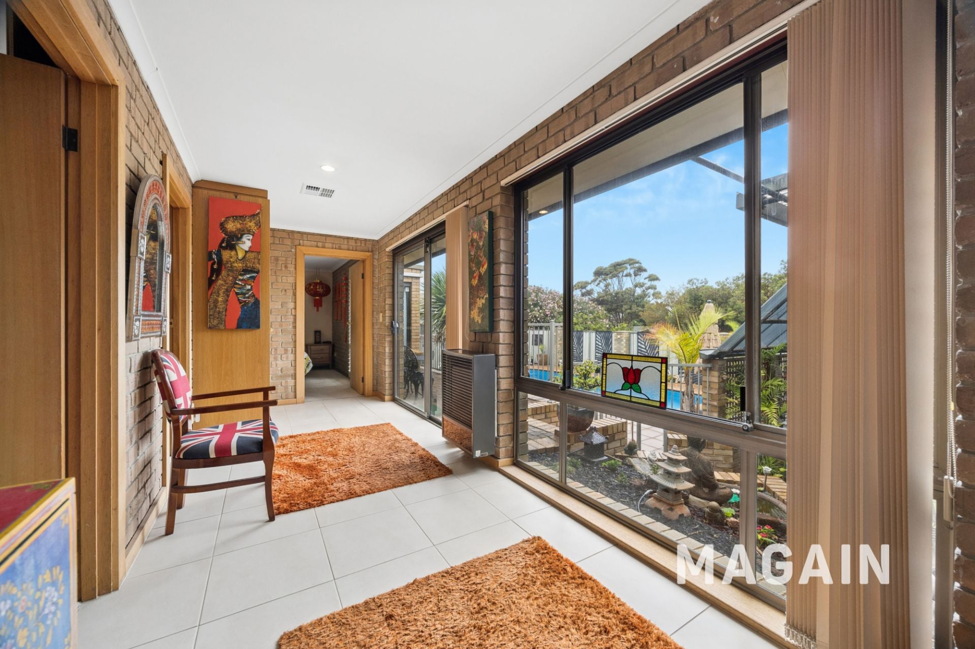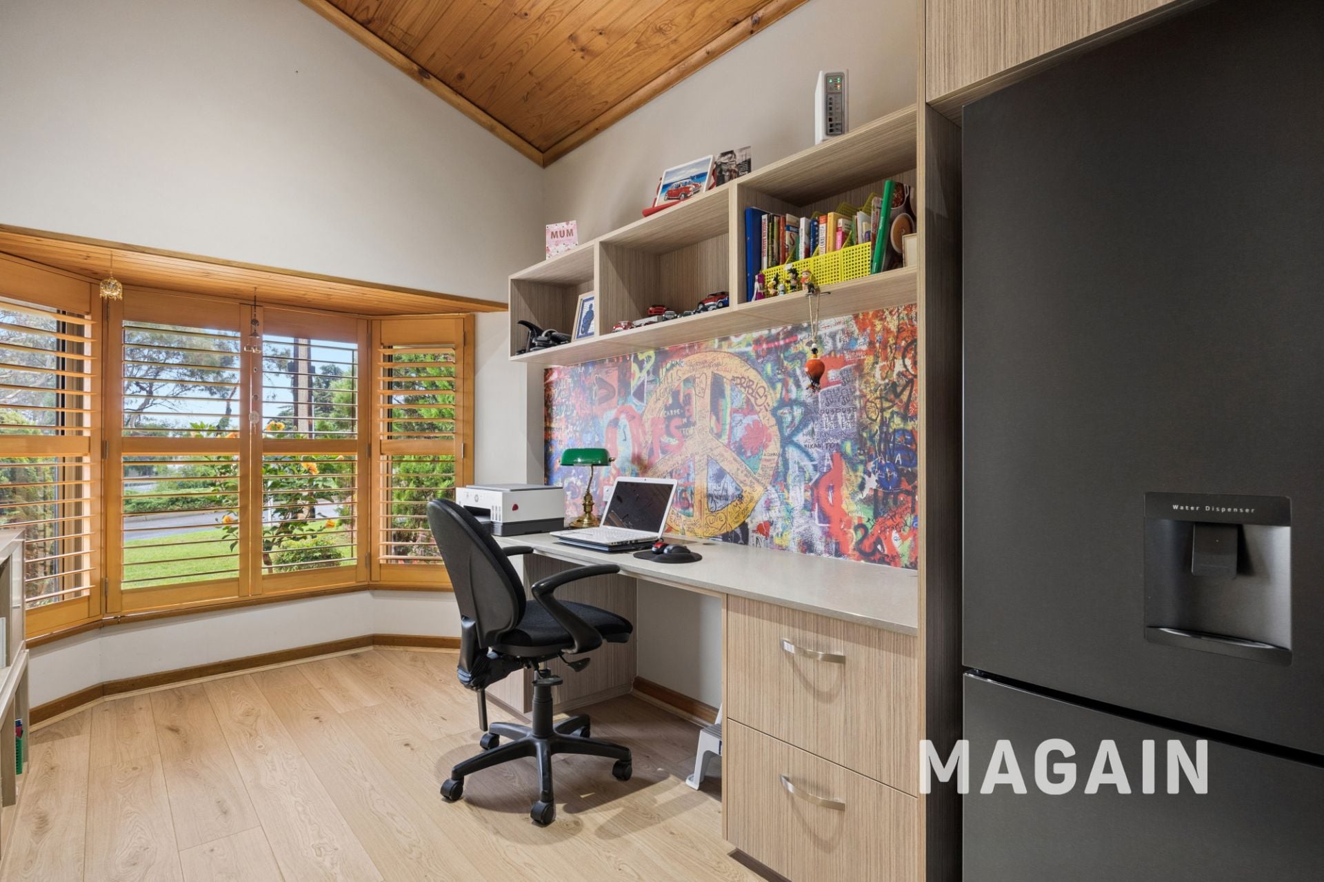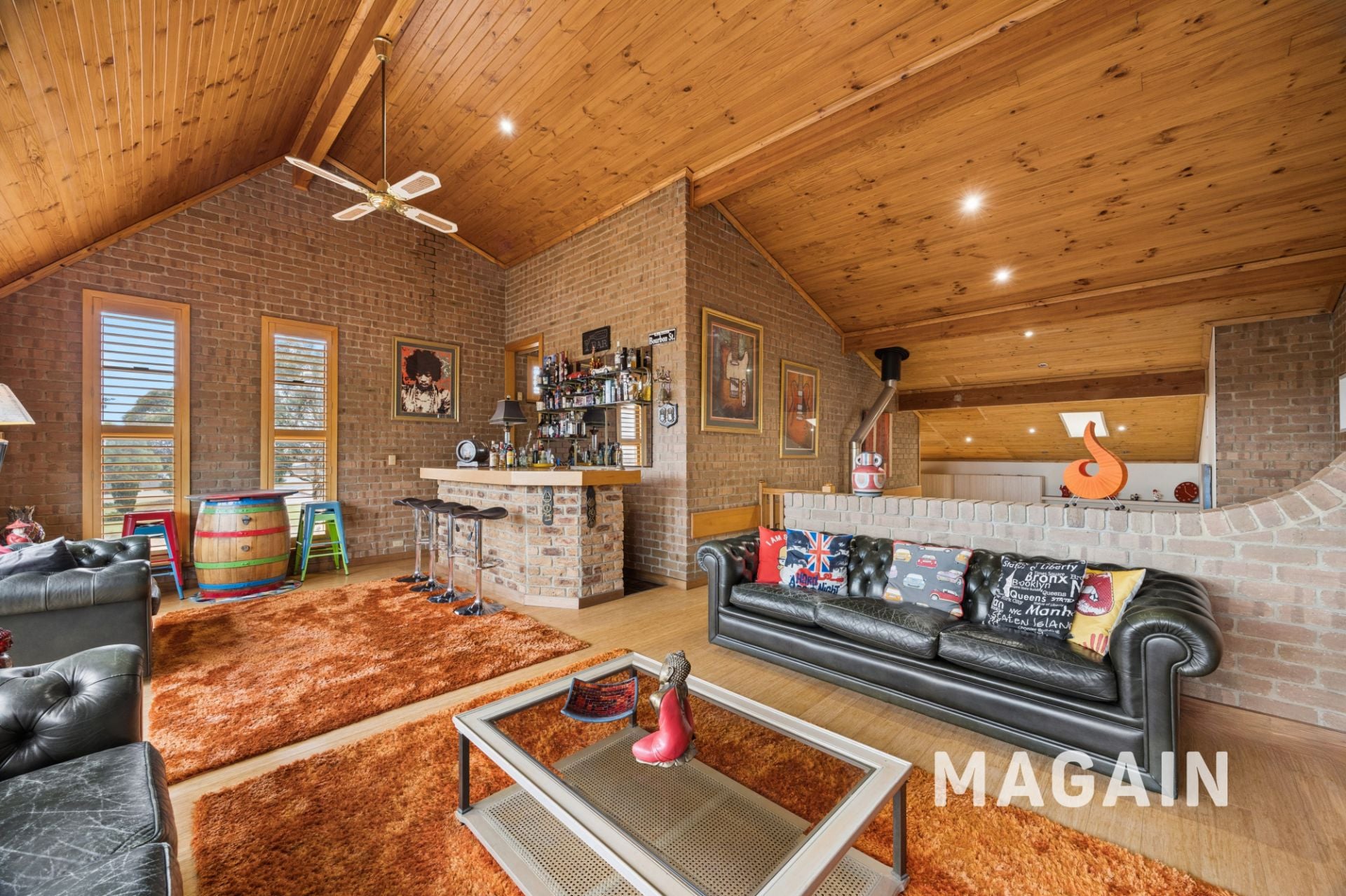 Adding to the versatility of the home there is wet bar in the upper living, dedicated office or hobby room, and an additional study nook-ideal for those working or studying from home. Comfort is assured year-round with reverse cycle heating and cooling, an additional gas heater in the main lofted lounge, double-glazed windows, and a solar electricity system.