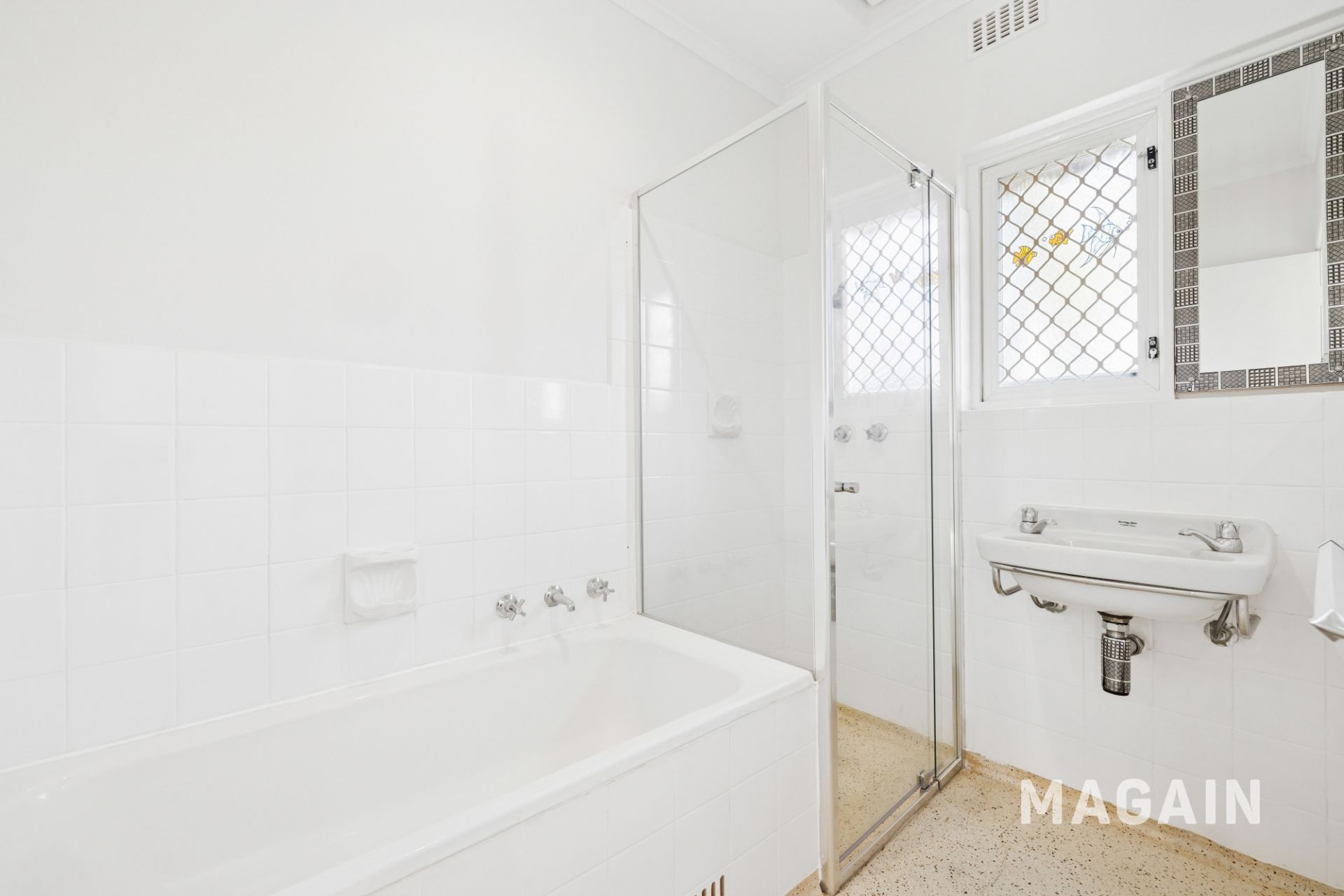 > neat and airy bathroom with separate toilet