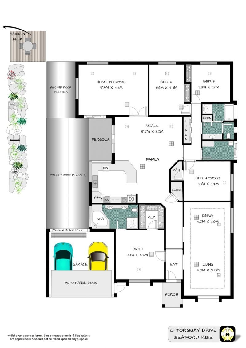 Beautiful large gabled pergola to enjoy those outdoor times plus an elevated decking area to enjoy sea views.