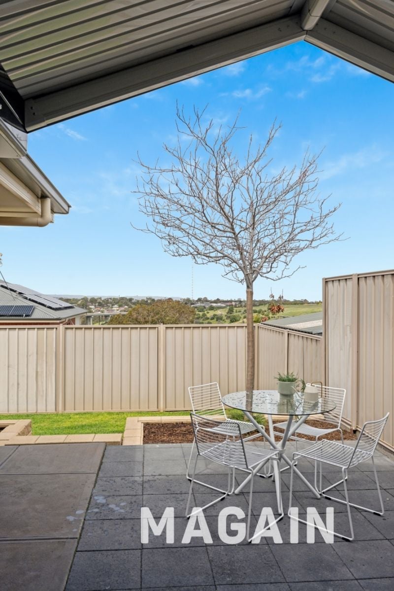 Step inside to find a light and airy interior enhanced by floating timber floors, fresh paint, and brand-new carpets. At the heart of the home, an open-plan kitchen, dining, and family living area creates the perfect hub for daily life. The modern kitchen boasts a walk-in pantry, dishwasher, and breakfast bar, while glass sliding doors connect seamlessly to a large pitched-roof entertaining area and the split-level rear lawn with views across Sheidow Park's rolling hills and valleys.