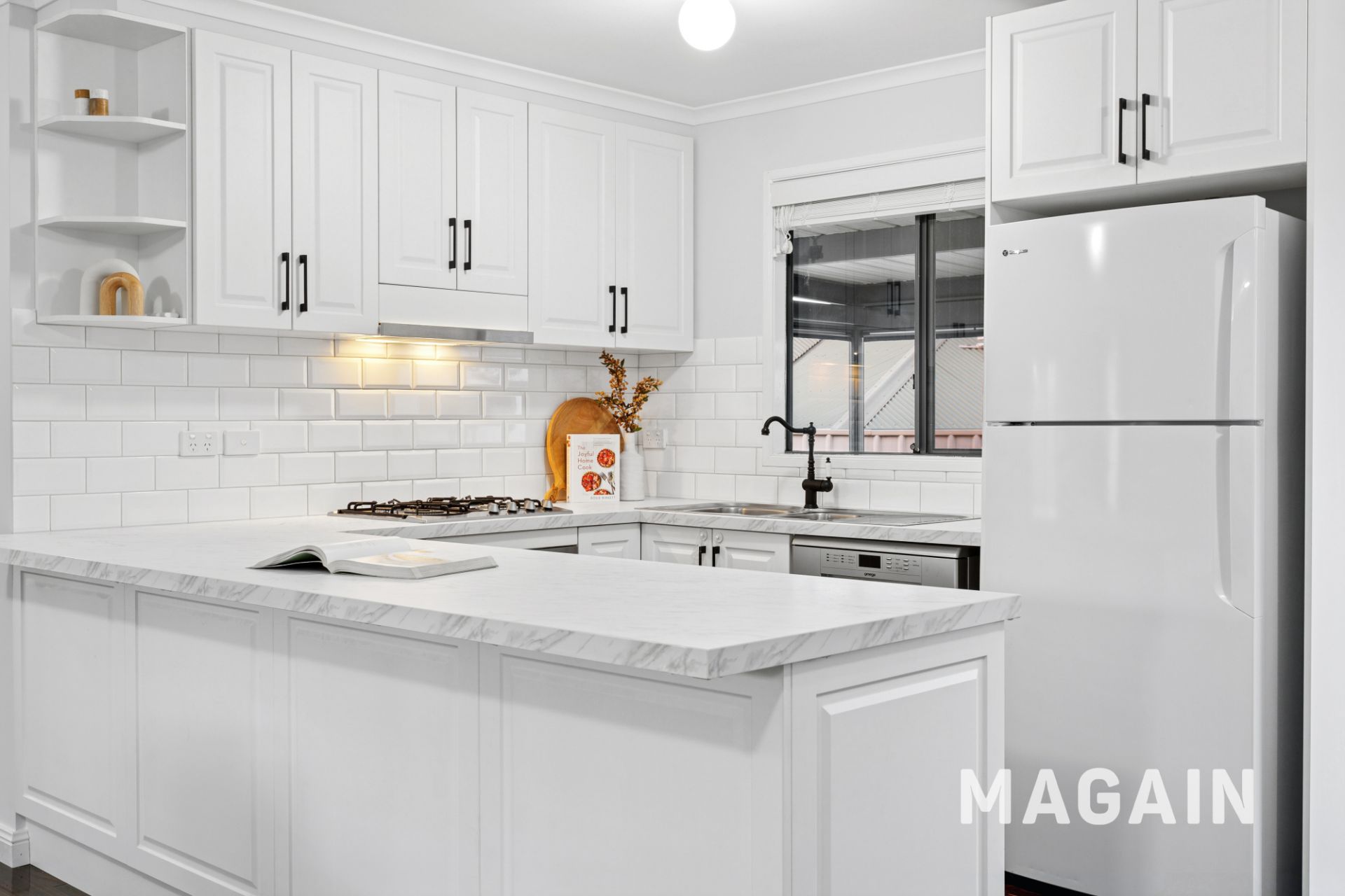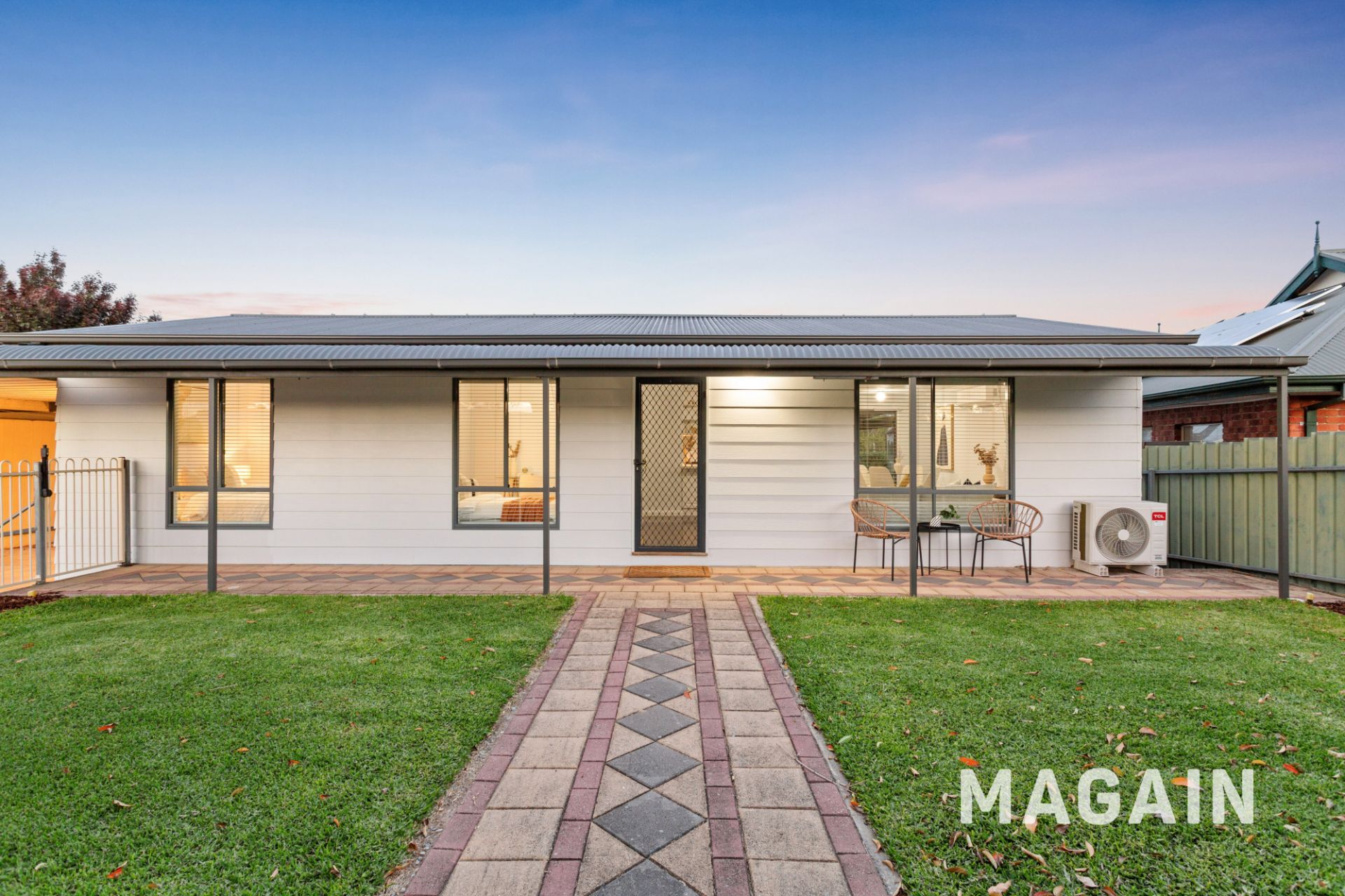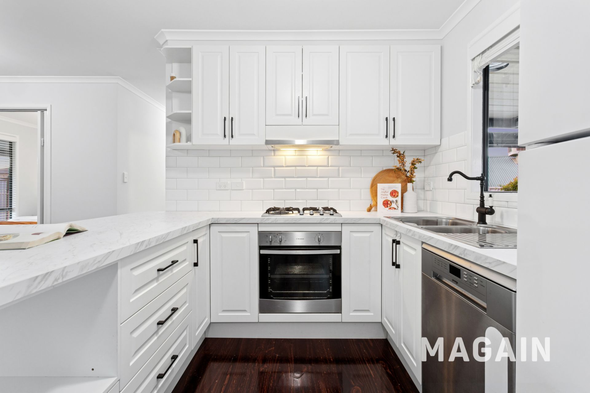 A charming bull-nose verandah and attractive clad exterior set the tone with a courtyard front with near lawn area. Inside you'll find a light-filled open-plan kitchen, dining and living area with warm timber flooring and split-system heating/cooling for year-round comfort. The well-appointed U-shaped kitchen features a gas cooktop, dishwasher, stainless steel double sink, and excellent bench and cupboard space.