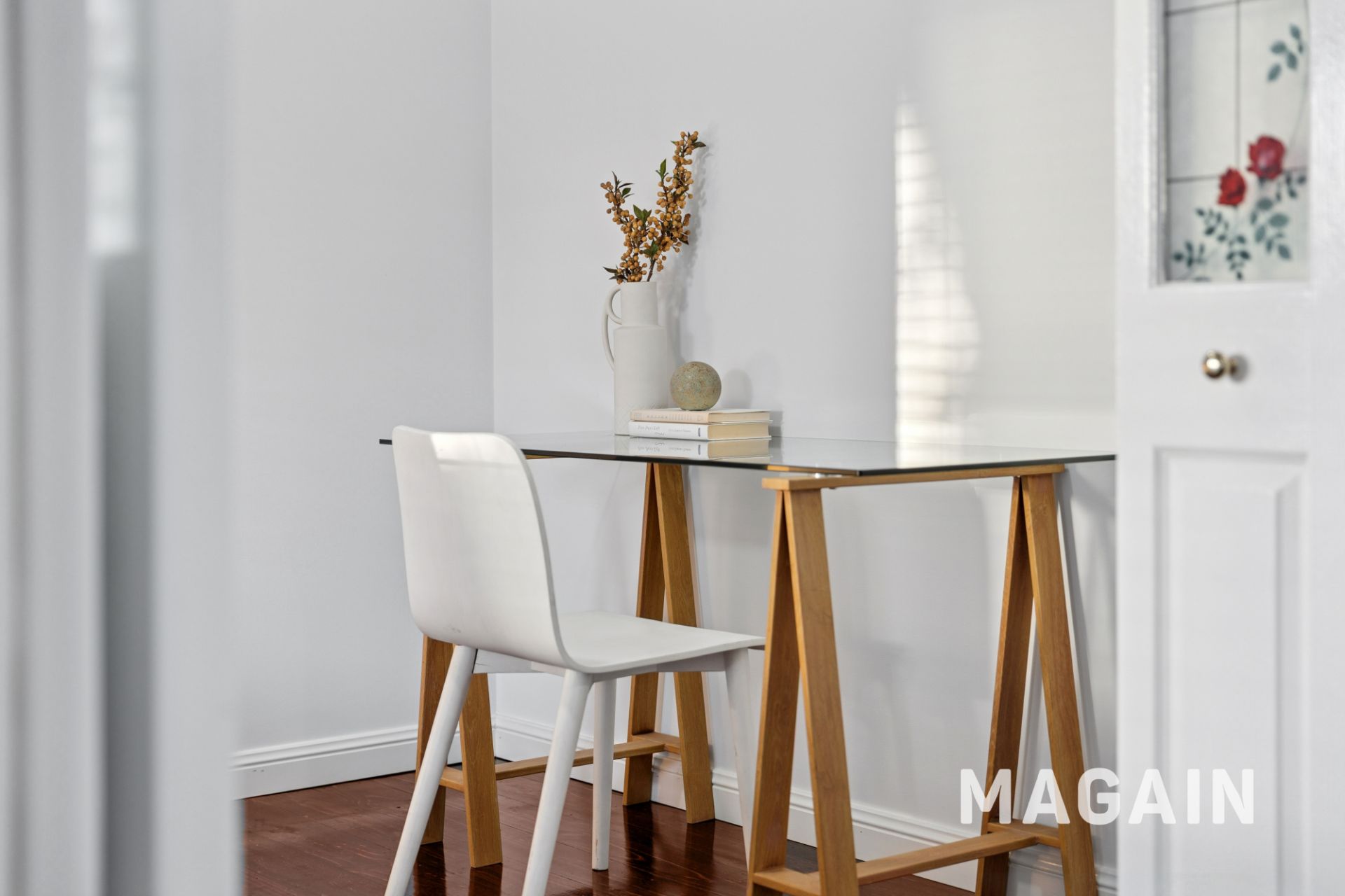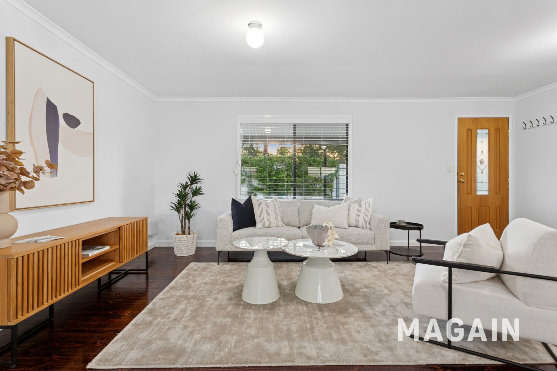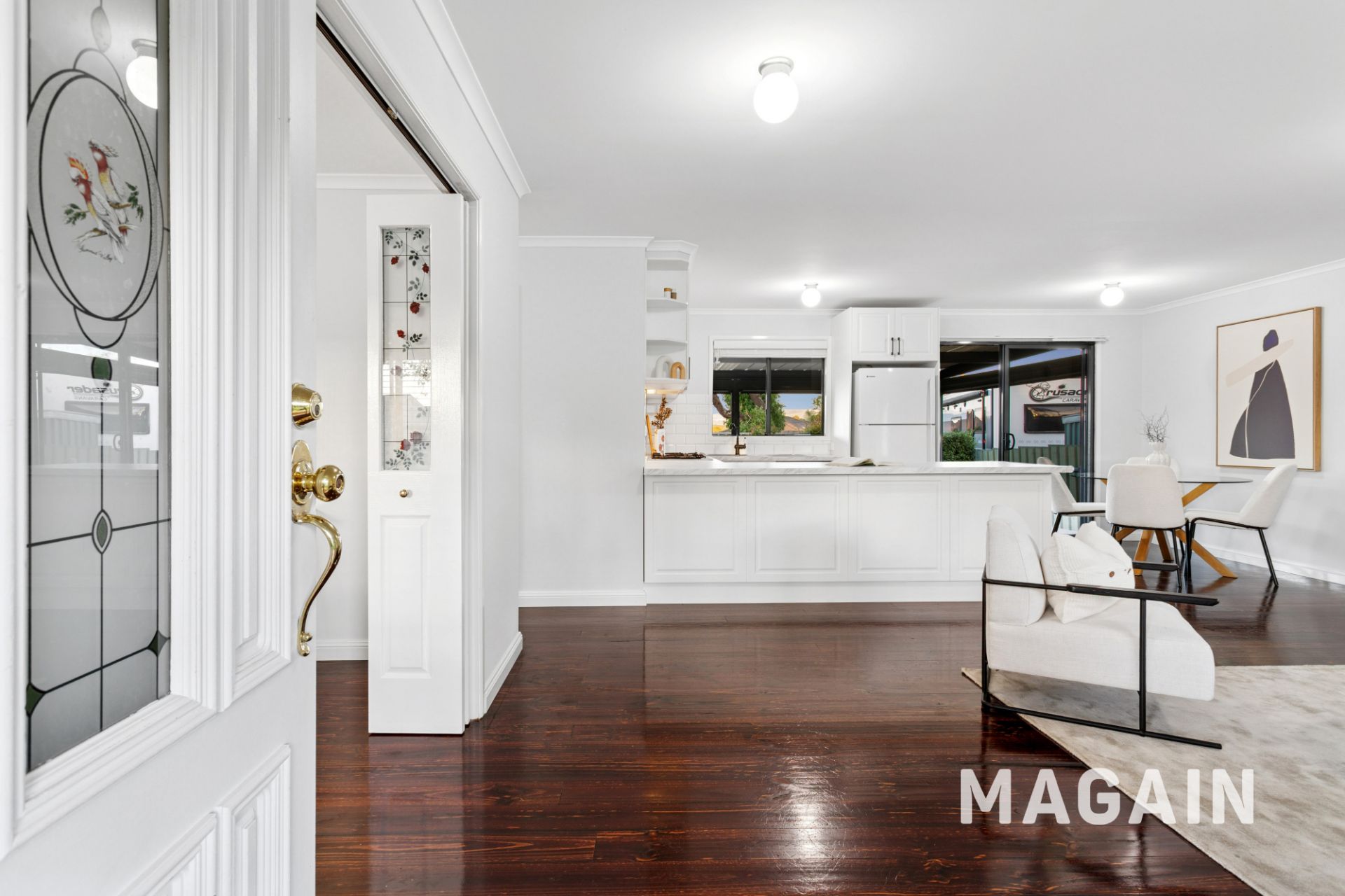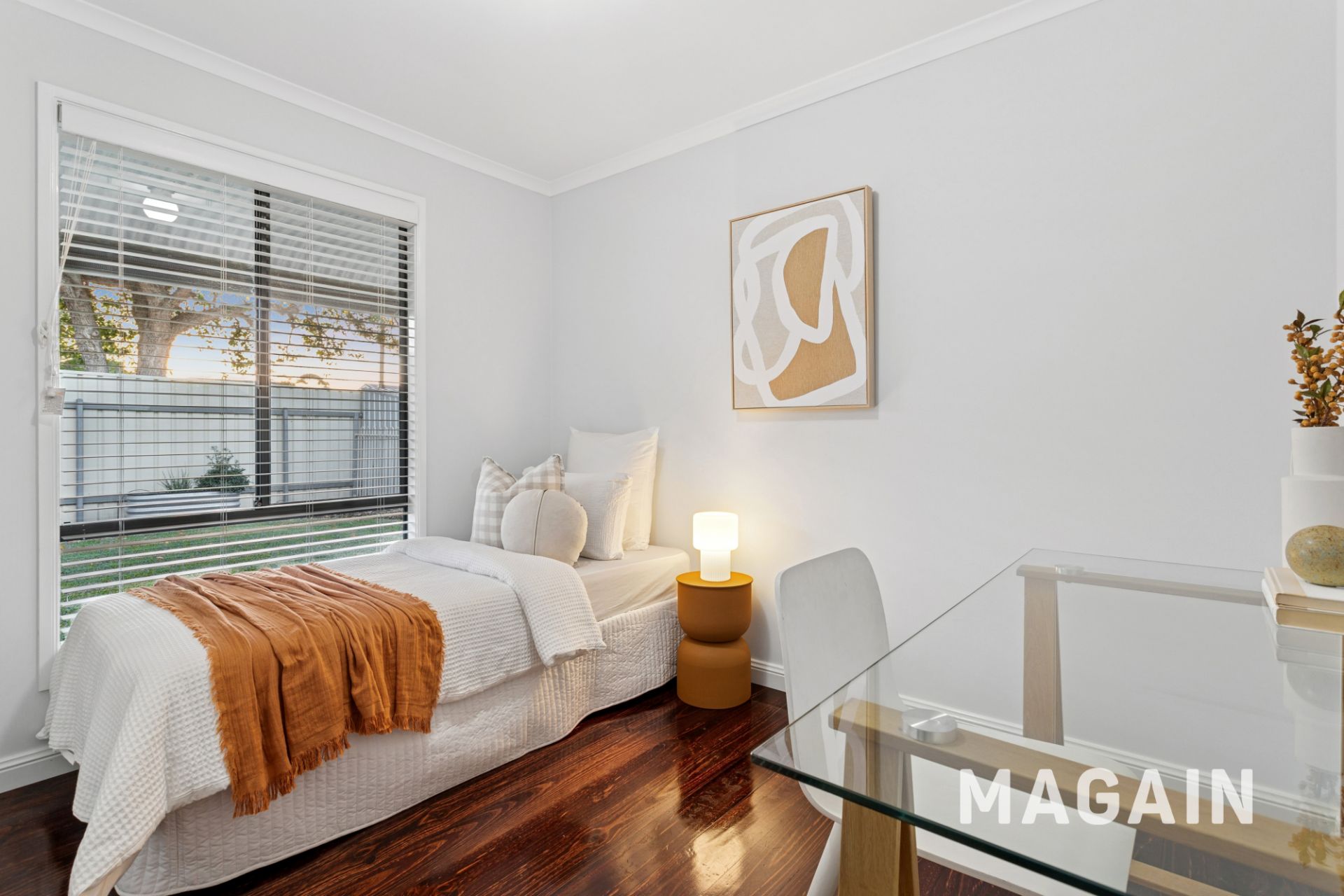 Double doors open to a versatile third bedroom or home office off the main living zone, while the hallway leads to two generous carpeted bedrooms-main with built-in robe. The central bathroom is a great size, offering a shower/bath, toilet and vanity, and the laundry provides additional storage plus rear access.